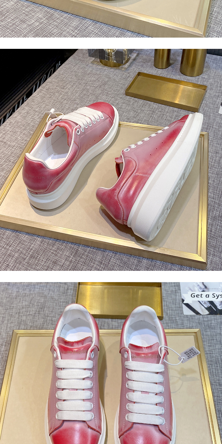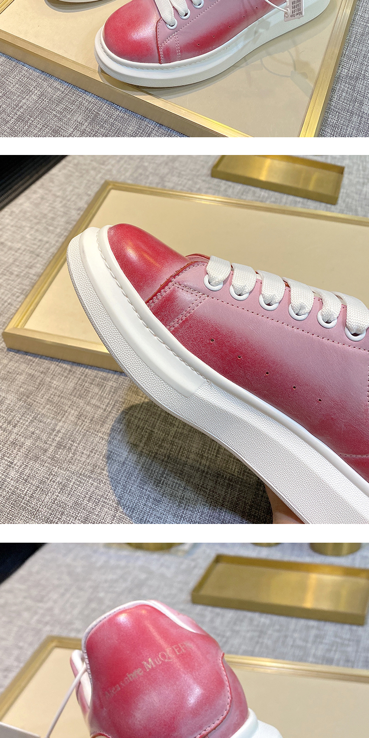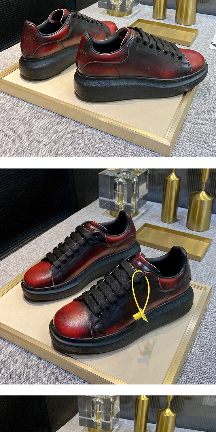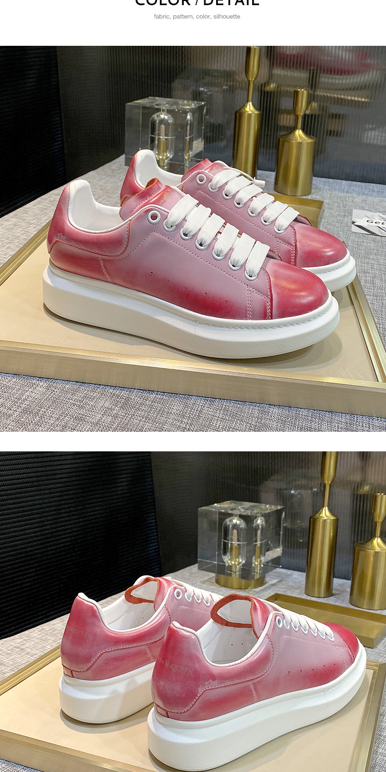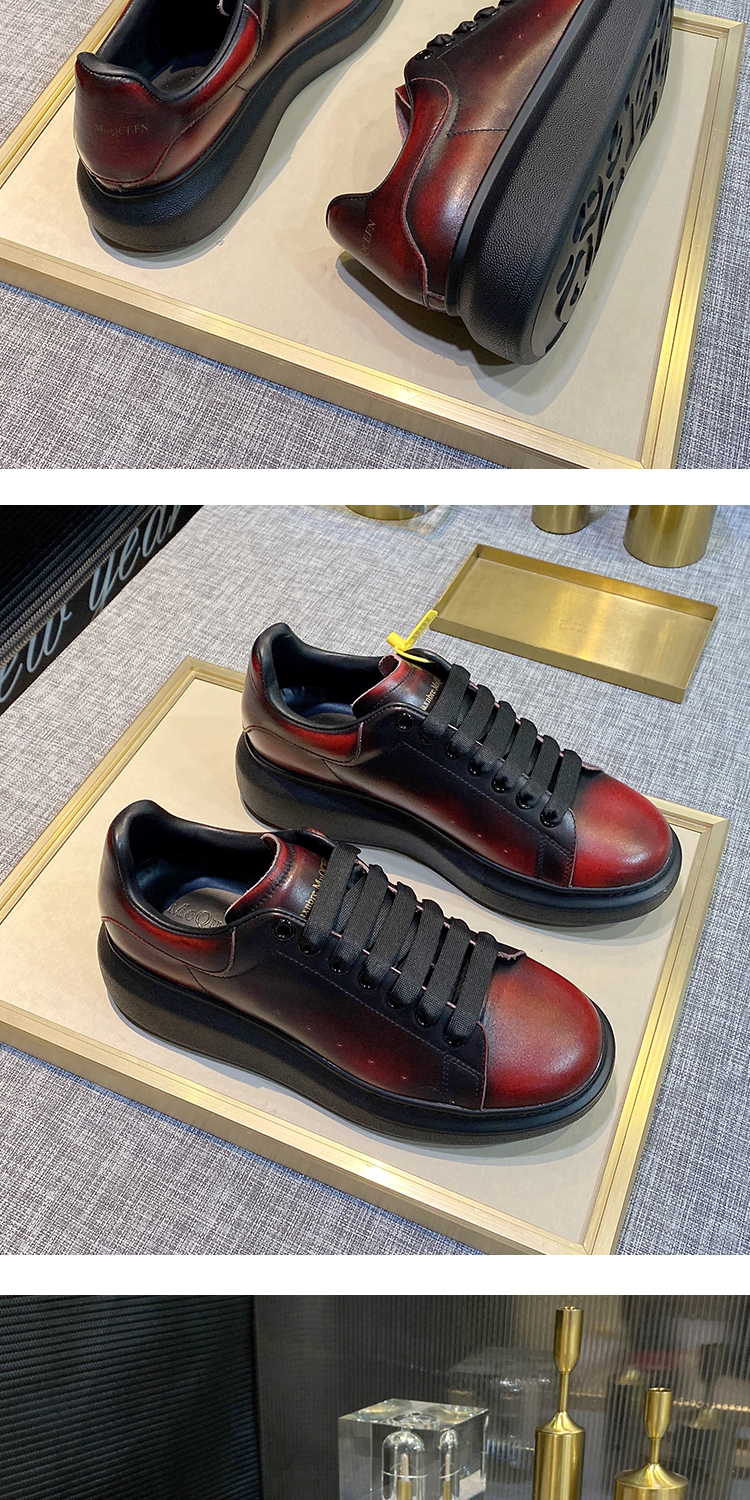 2022秋冬新款復古寶藍色厚底板鞋男沃克麥昆真皮運動休閒鞋皮鞋潮