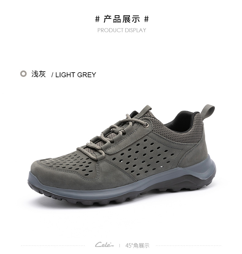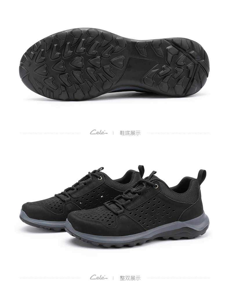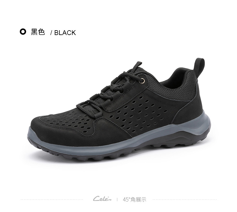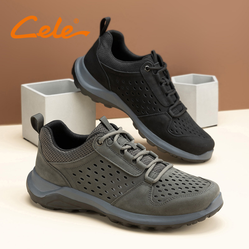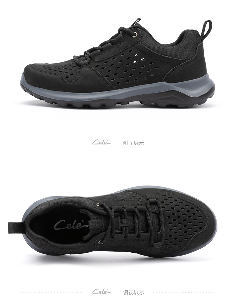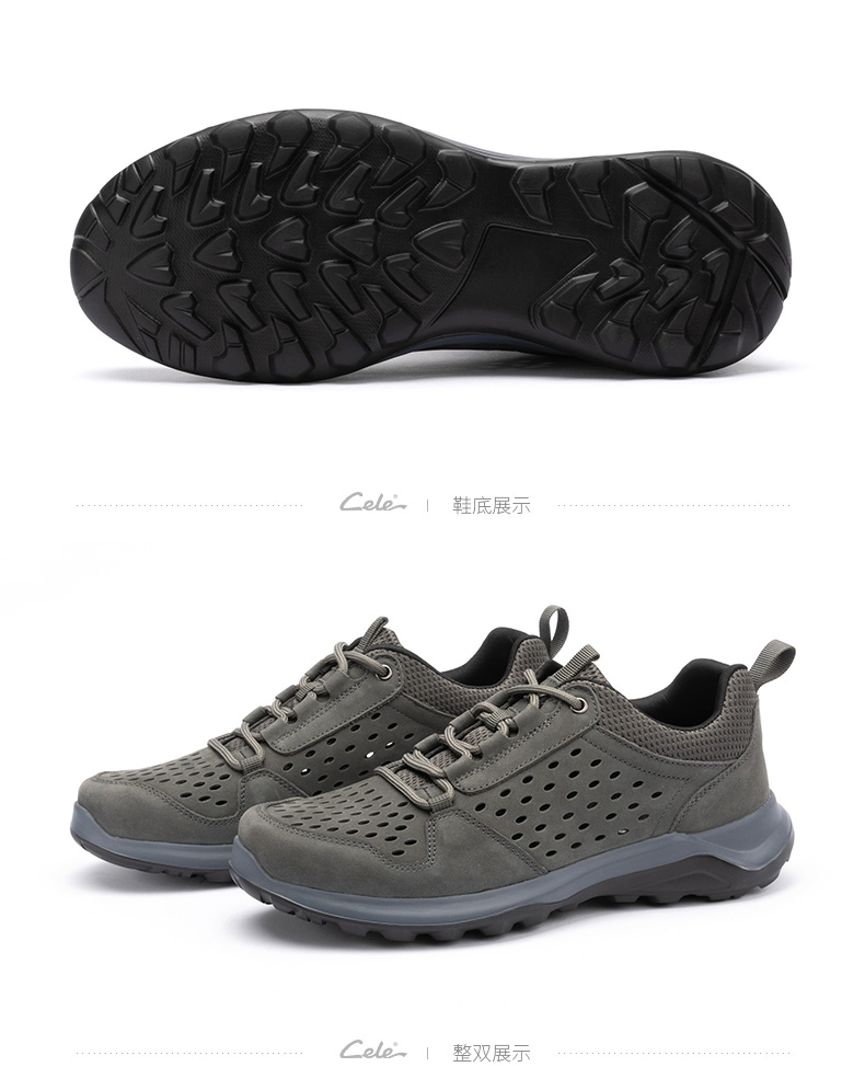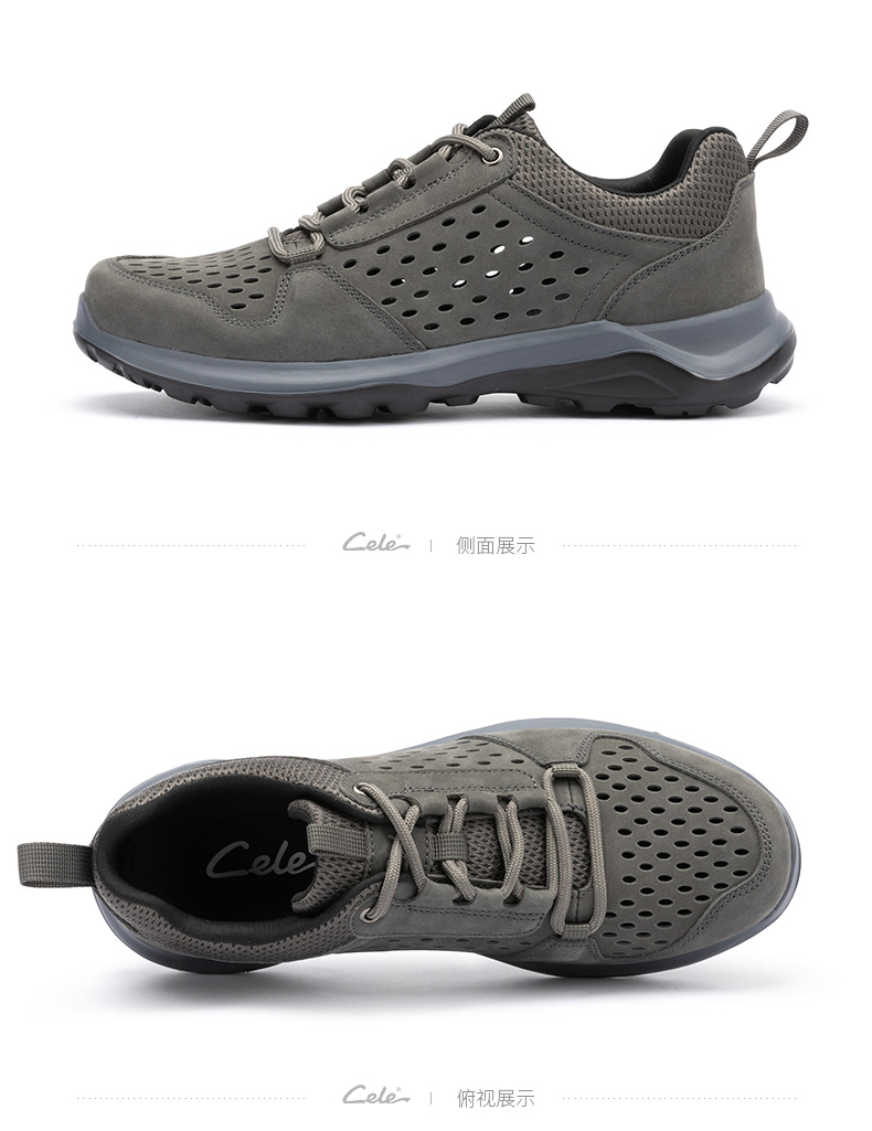 Cele策樂男鞋夏季戶外徒步旅遊休閒鞋男真皮百搭打孔透氣運動板鞋