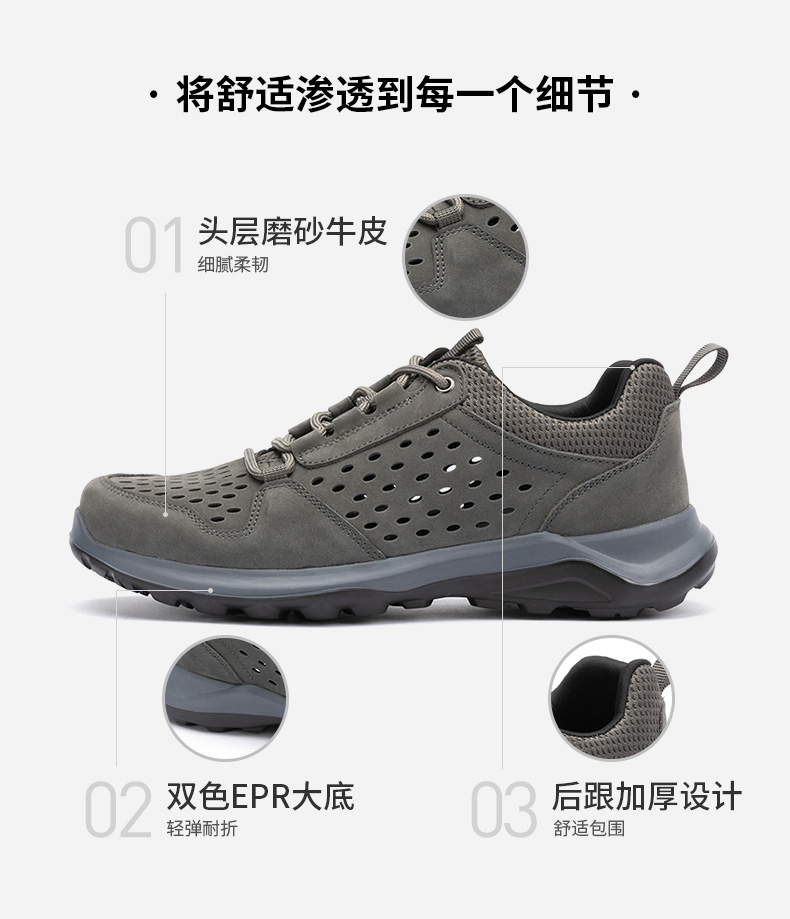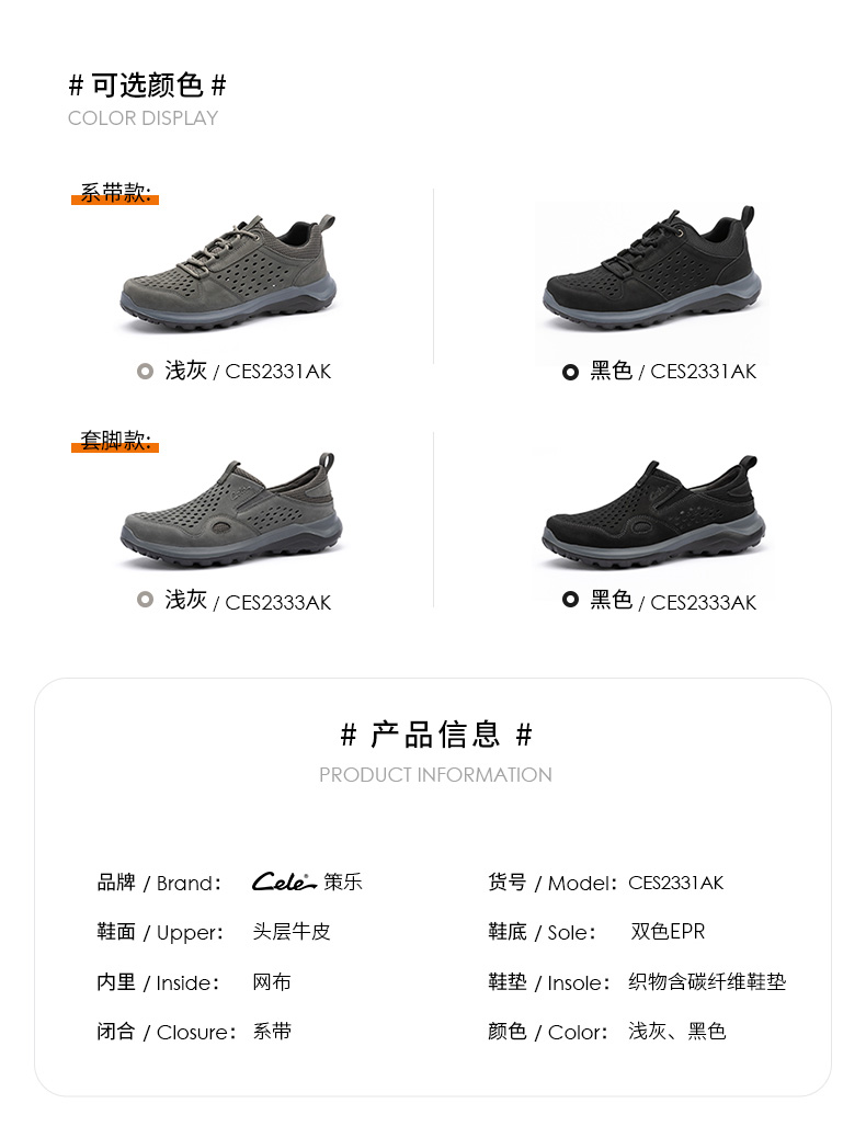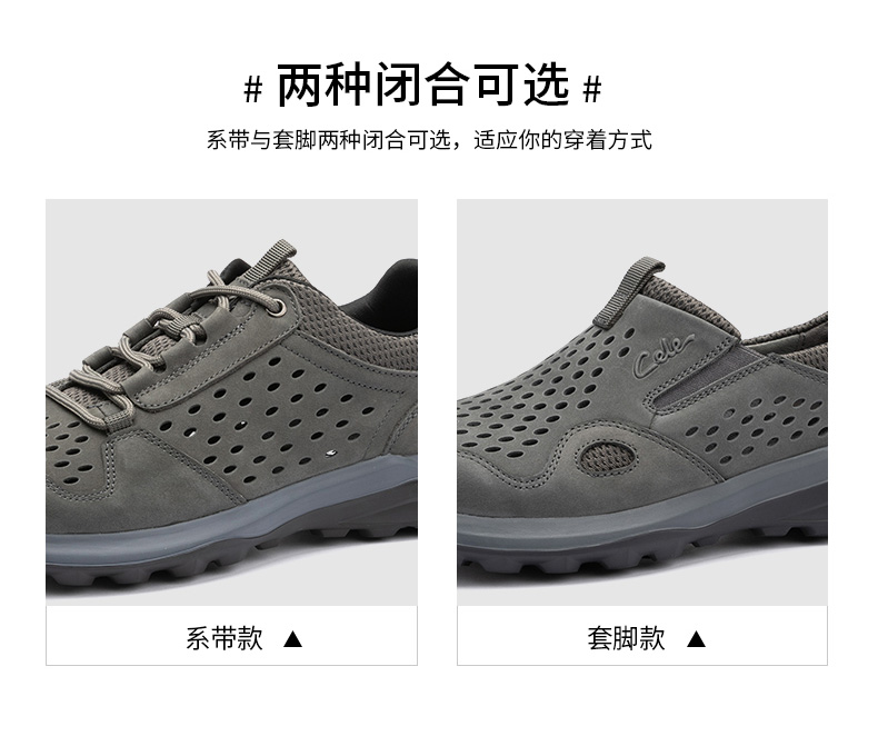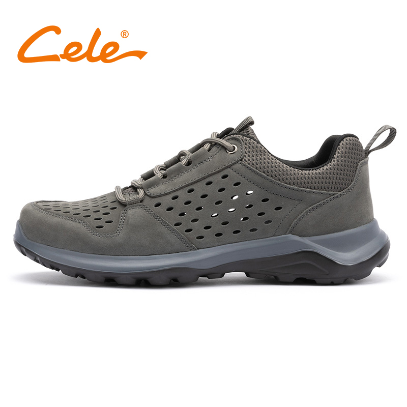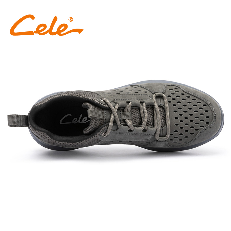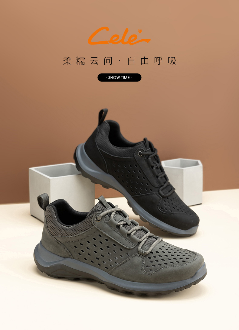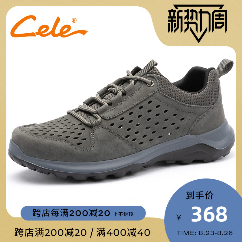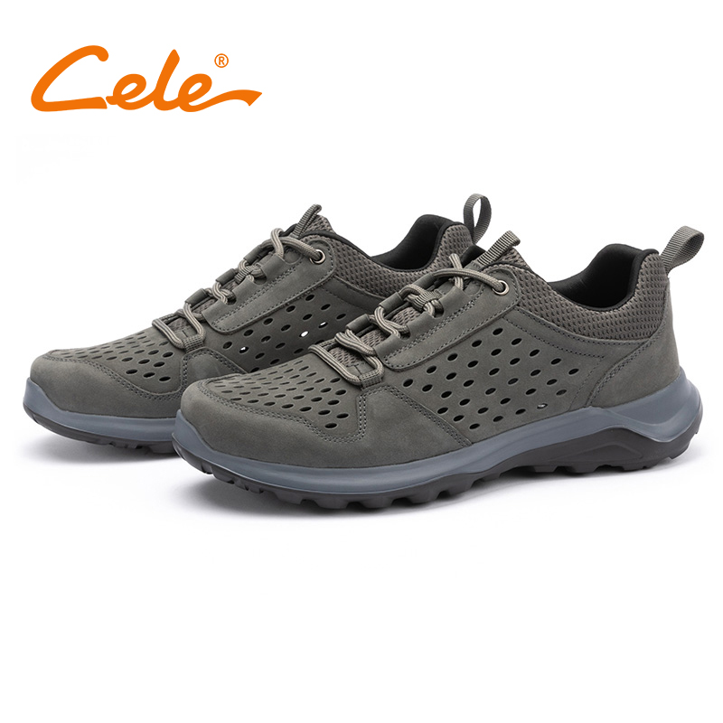Cele策樂男鞋夏季戶外徒步旅遊休閒鞋男真皮百搭打孔透氣運動板鞋