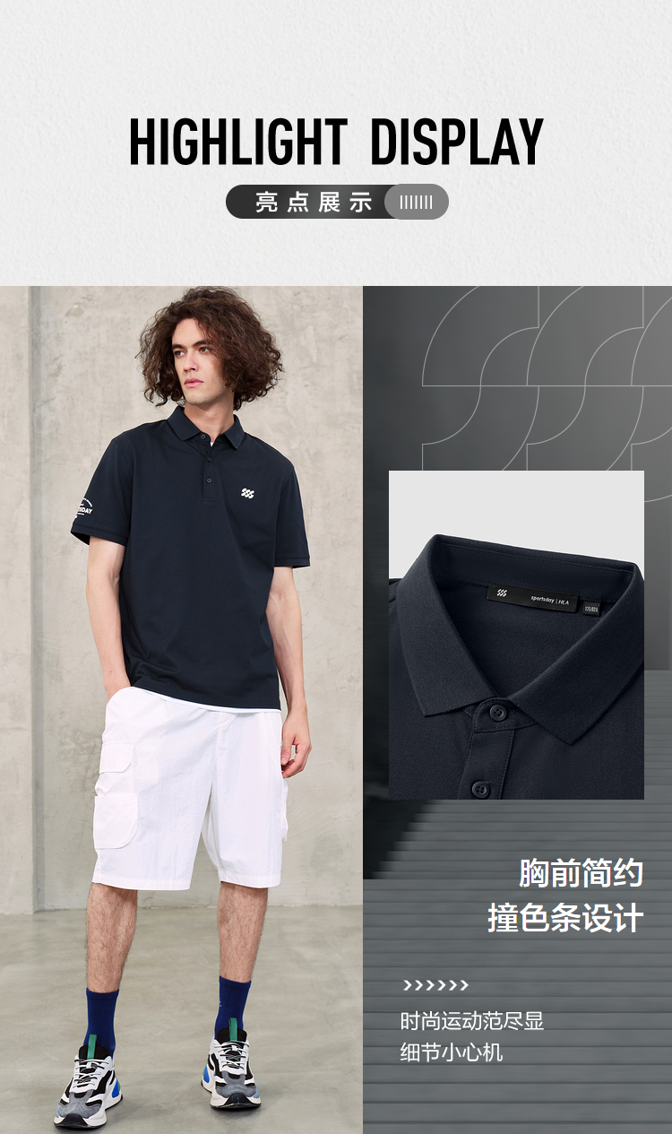 HLA/海瀾之家sportsday潮流運動短袖Polo23春夏新款透氣翻領上衣