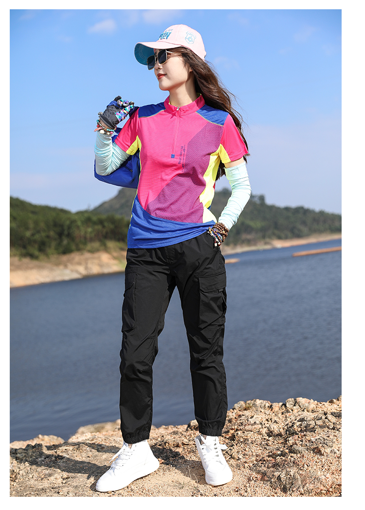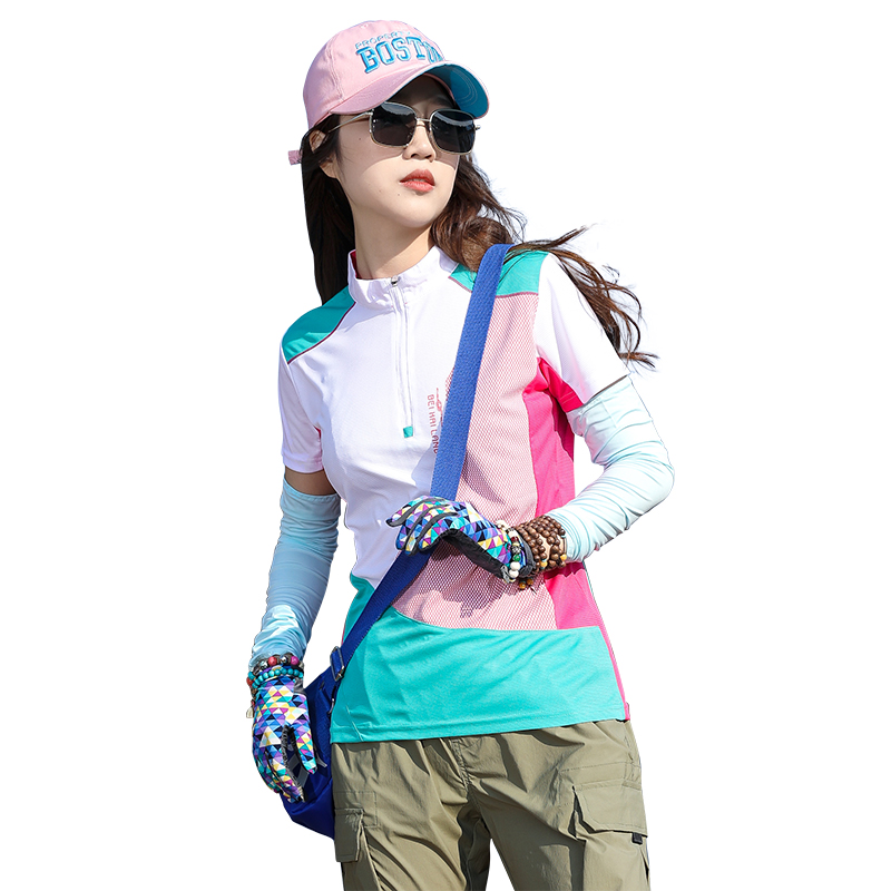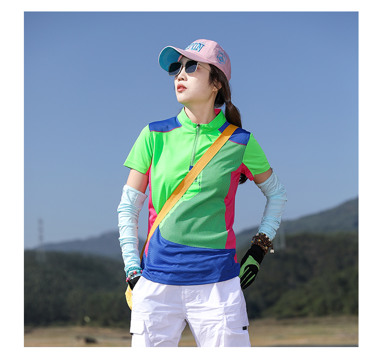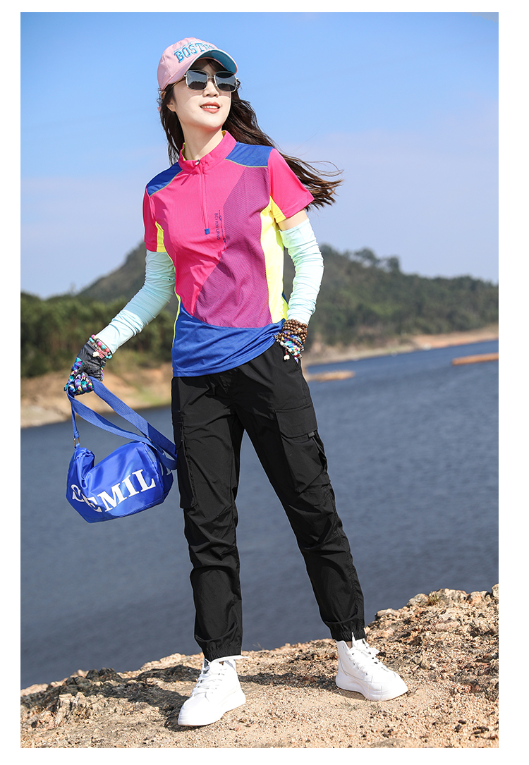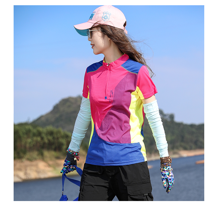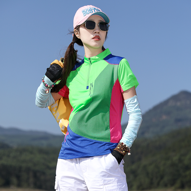 戶外拼色速乾衣女短袖T恤快乾衣彈力修身顯瘦運動吸汗透氣登山夏