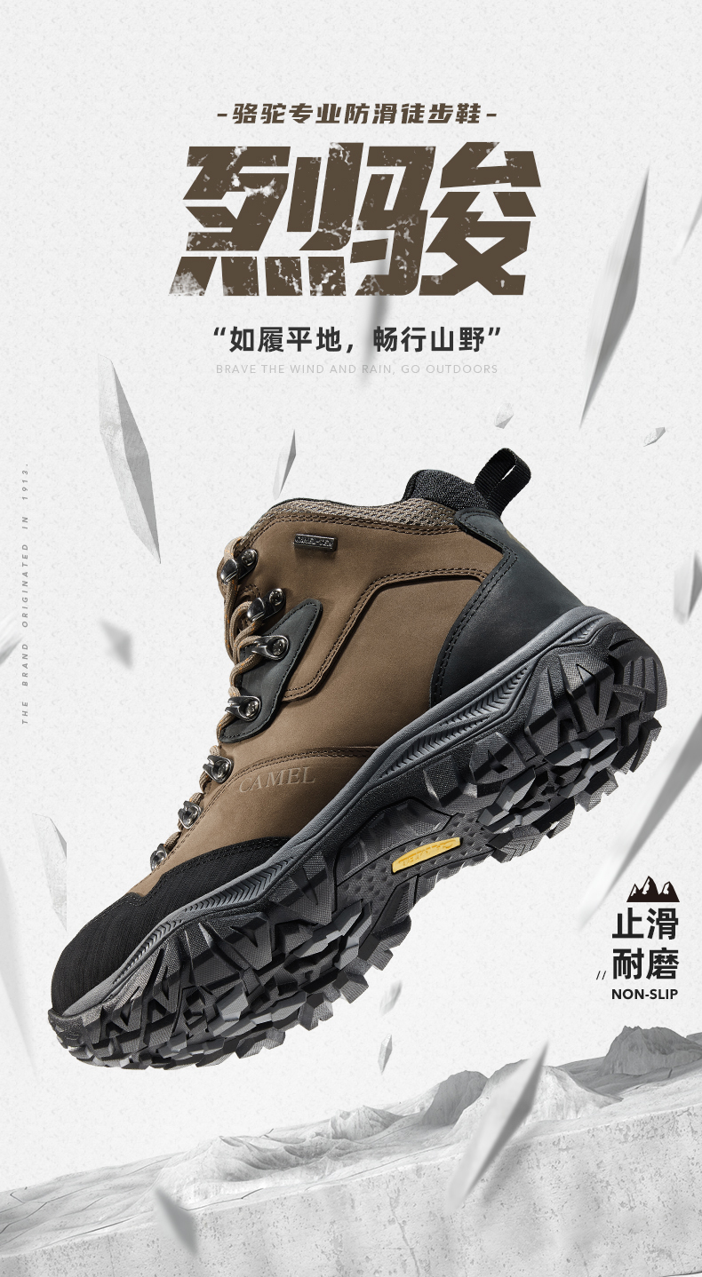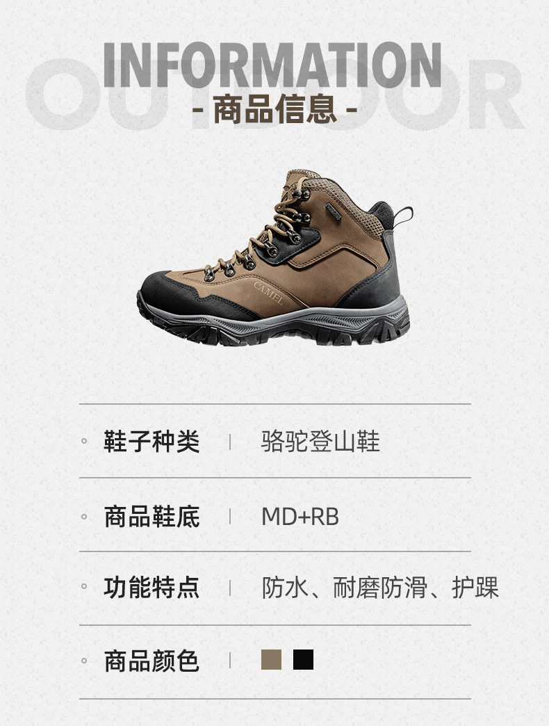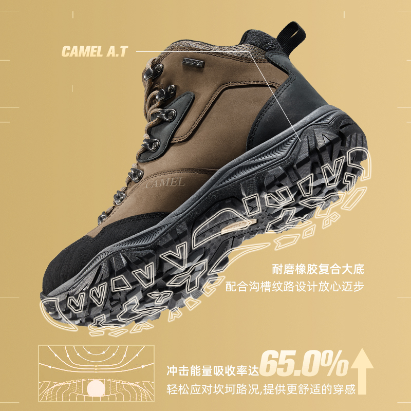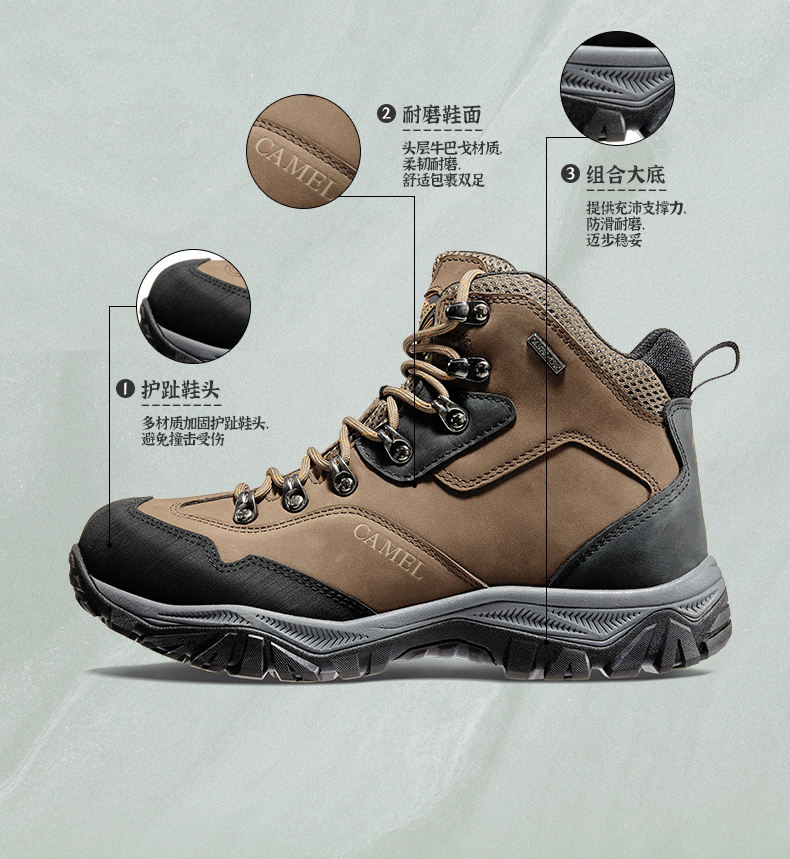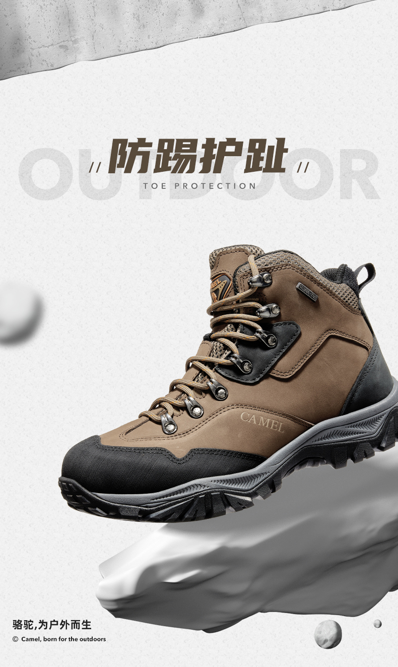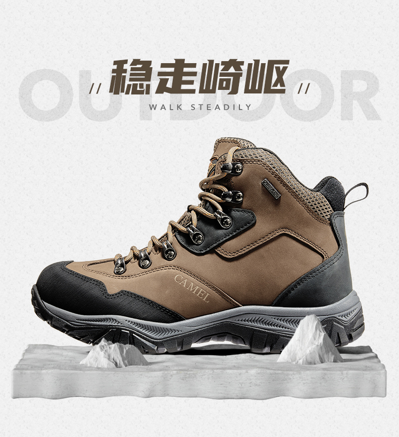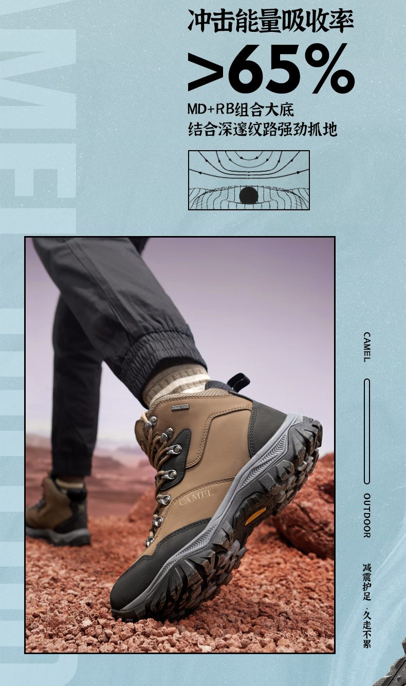 駱駝登山鞋男士2023新款高筒耐磨減震專業戶外鞋防滑防水徒步鞋子