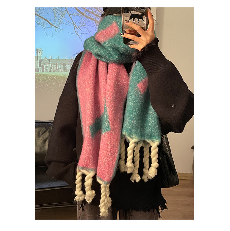 TUshu/可以陷進去的拉毛感圍巾韓版ins百搭秋冬保暖圍脖時髦單品