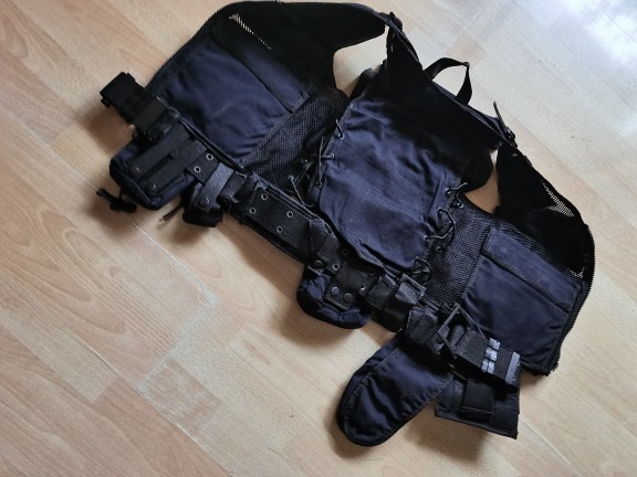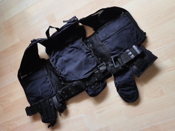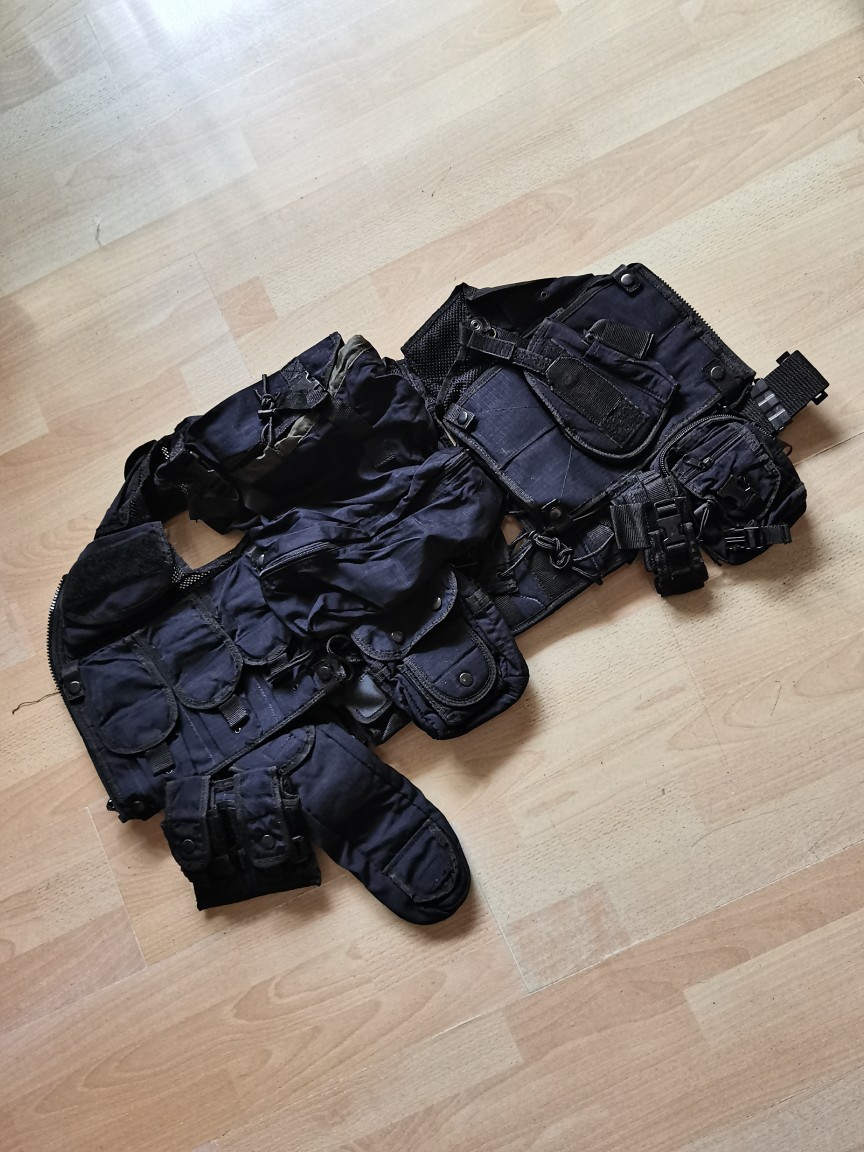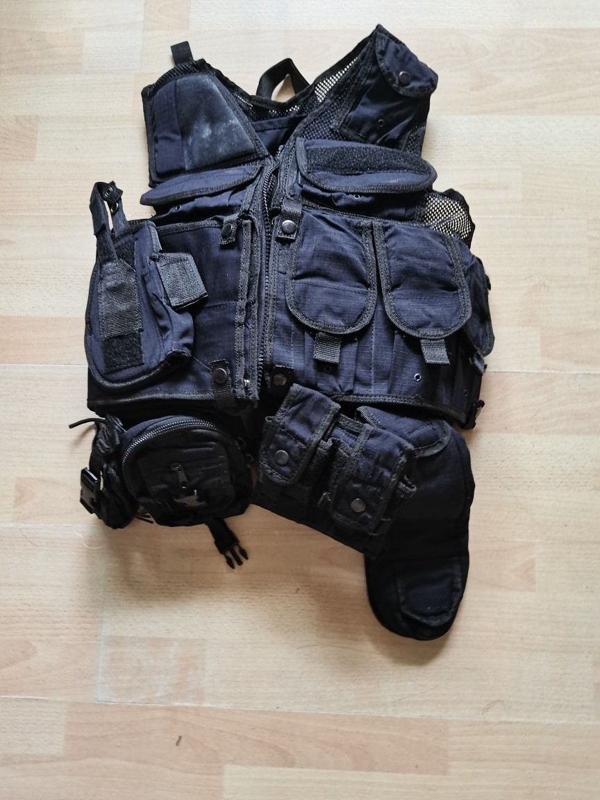 藍黑色散打防護背心戶外登山野營鐵釦腰帶CS遊戲多兜導演馬甲包郵