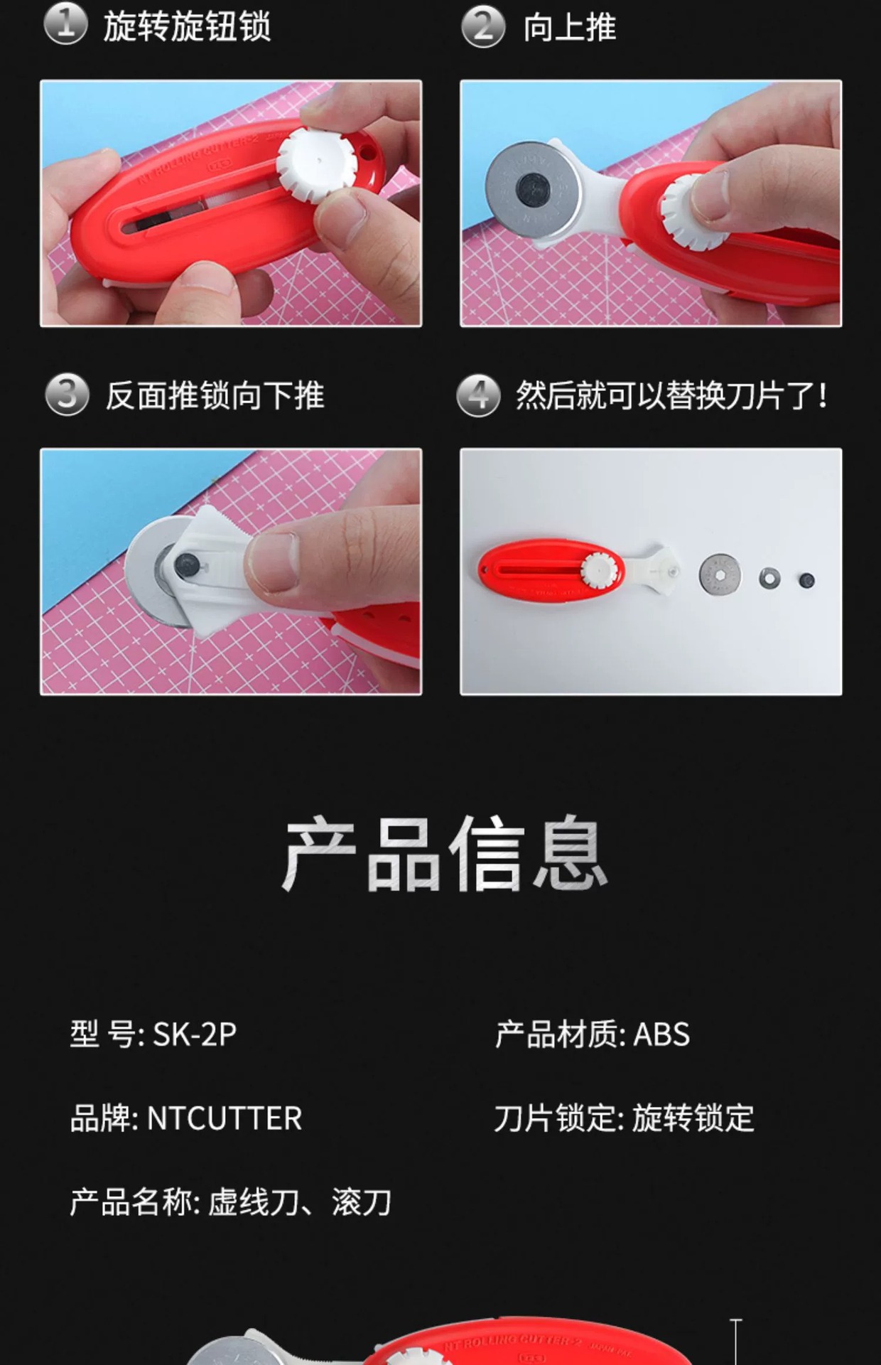 日本NT CUTTER虚线旋转式切割美工刀裁纸皮革刀手工波浪手账滚刀