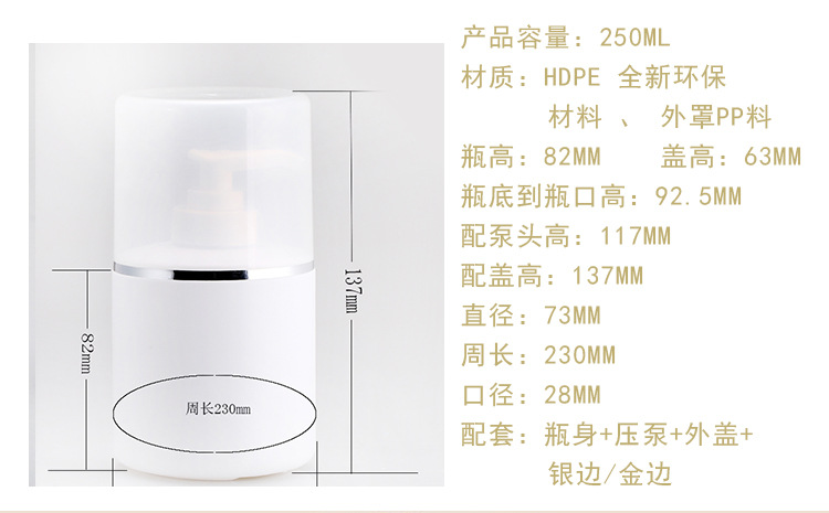 厂家现货供应250MLHDPE塑料瓶 250ml院装大圆瓶 乳液瓶
