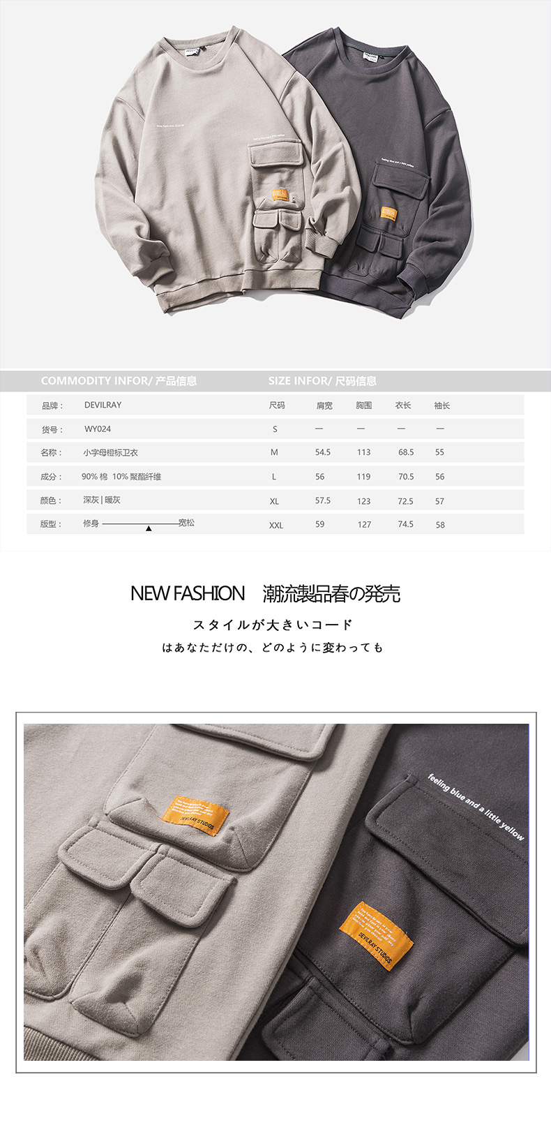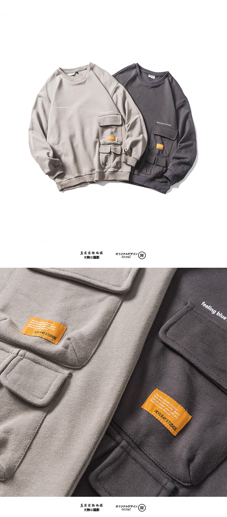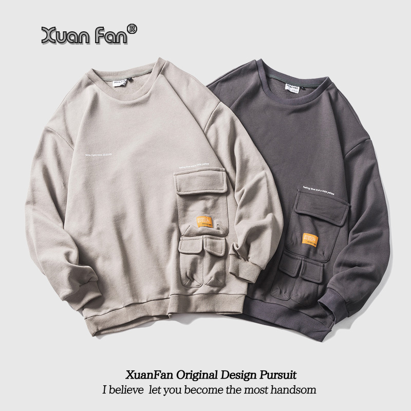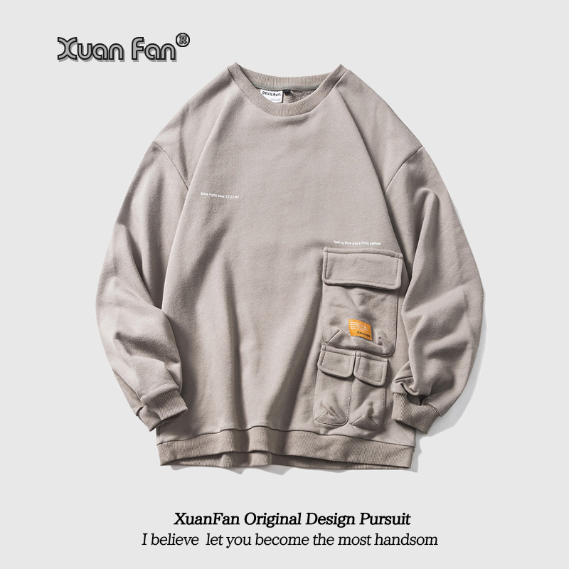 XUANFAN美式潮牌個性多口袋衛衣男女寬鬆復古街頭套頭情侶外套