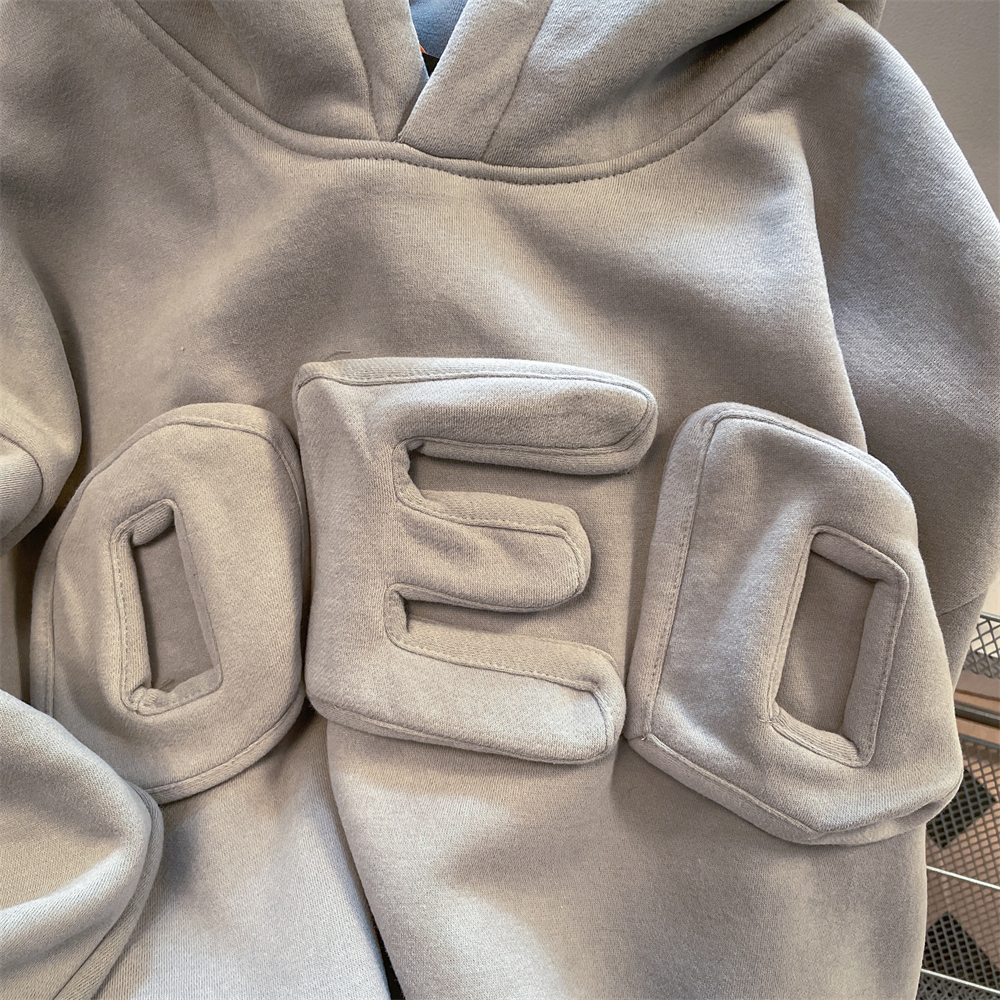 美式復古高街oversize立體字母連帽運動衫女小個子chic港風落肩外套