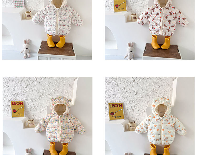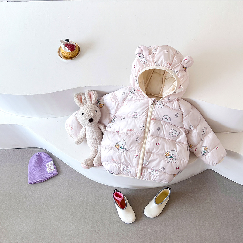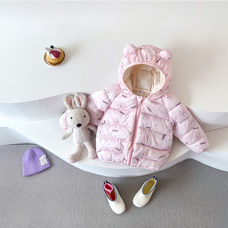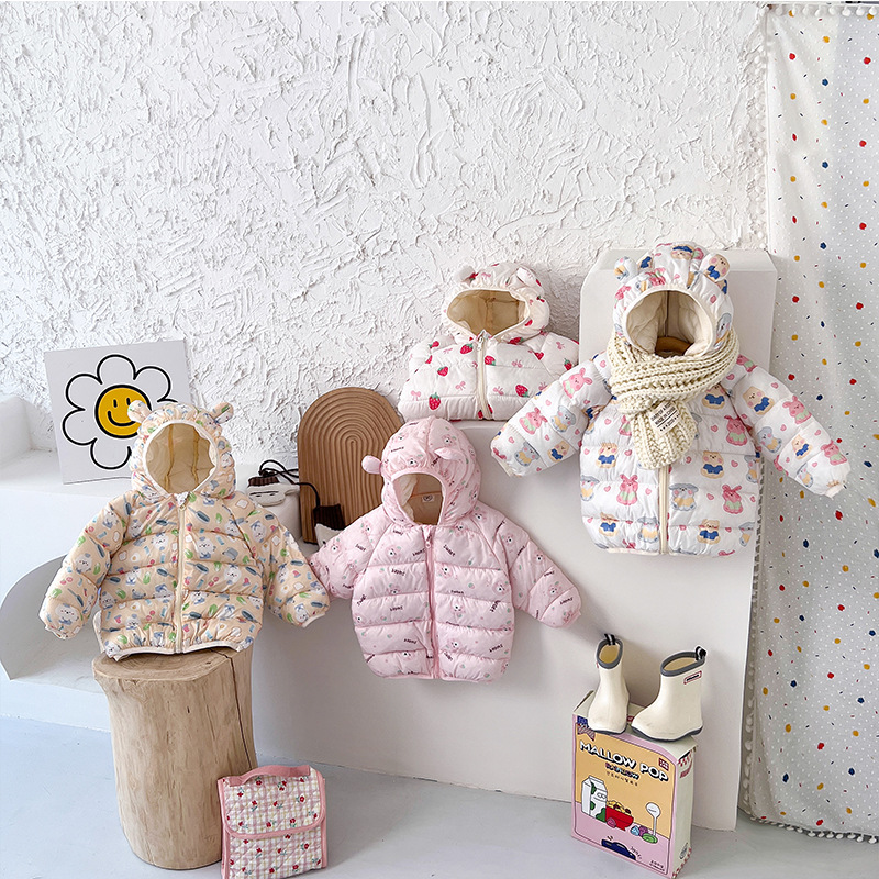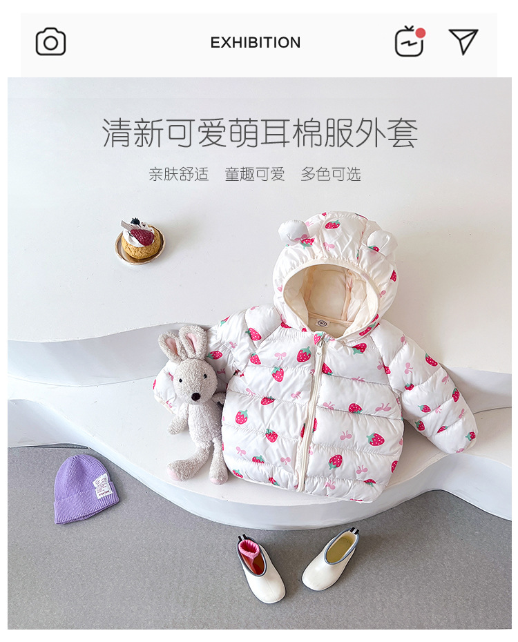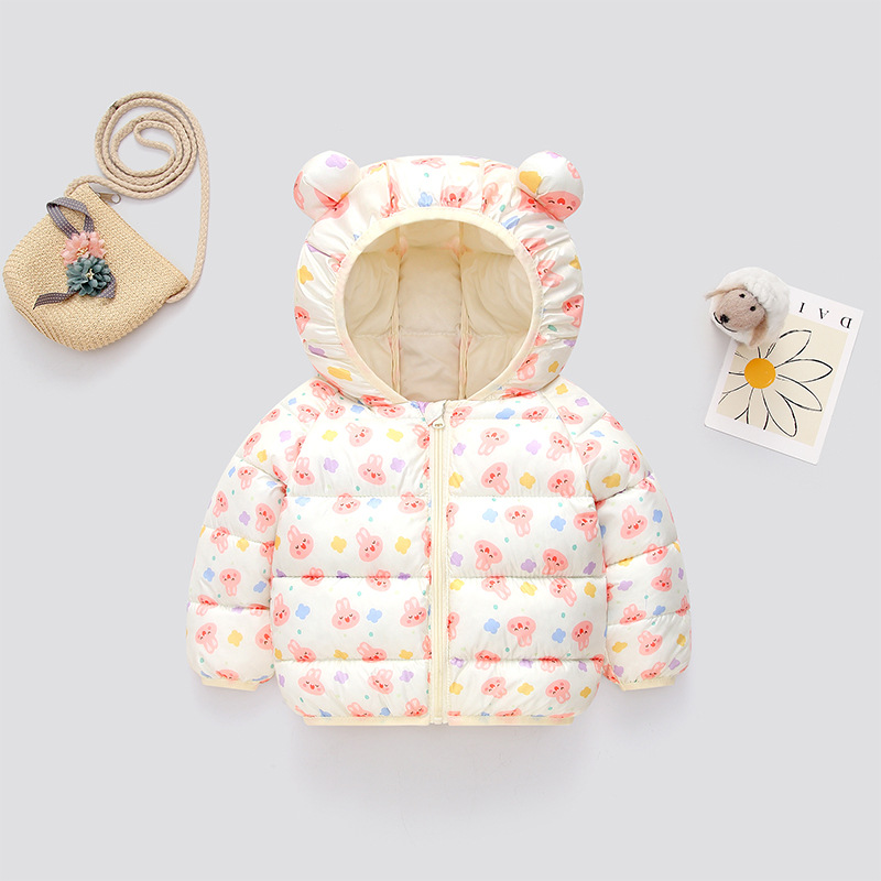 秋冬外贸儿童棉衣男童女童保暖外套宝宝花色羽绒棉耳朵款