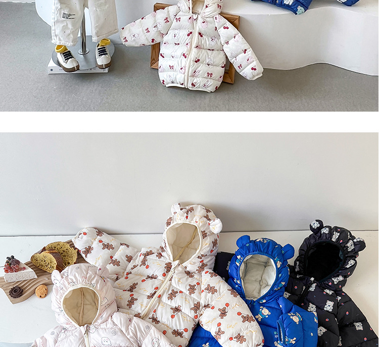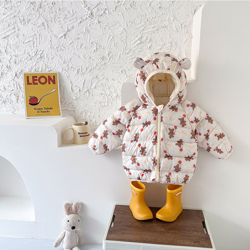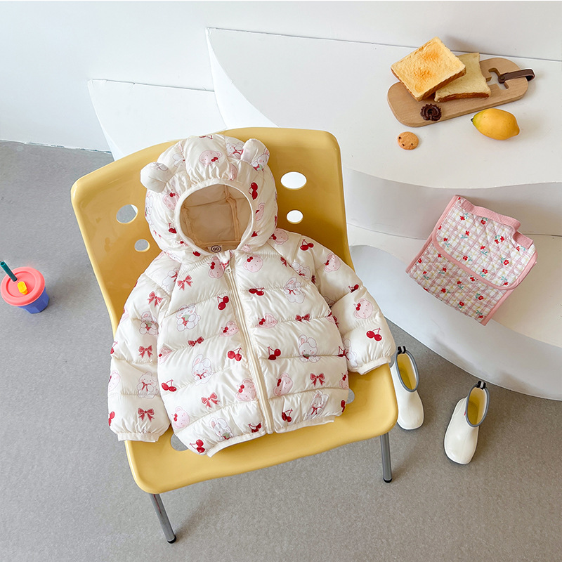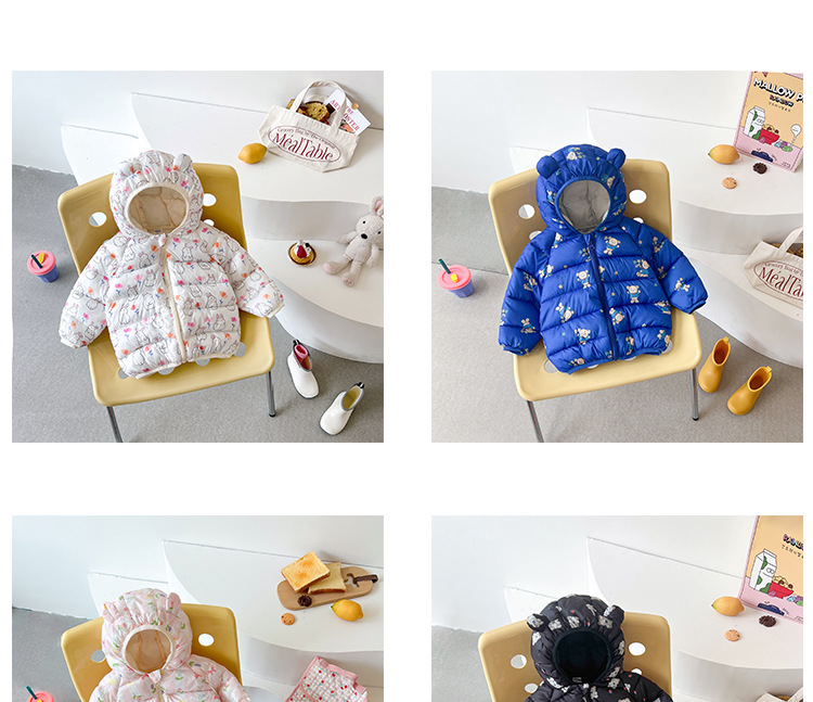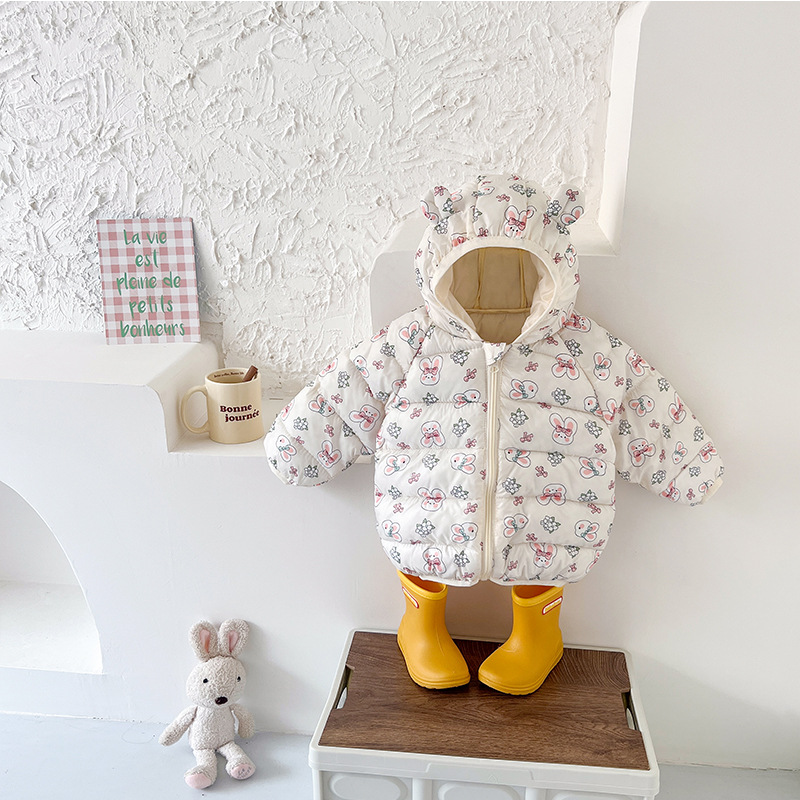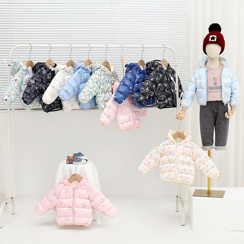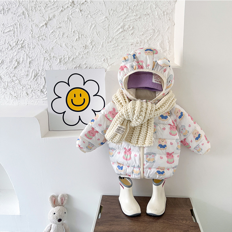 秋冬外贸儿童棉衣男童女童保暖外套宝宝花色羽绒棉耳朵款