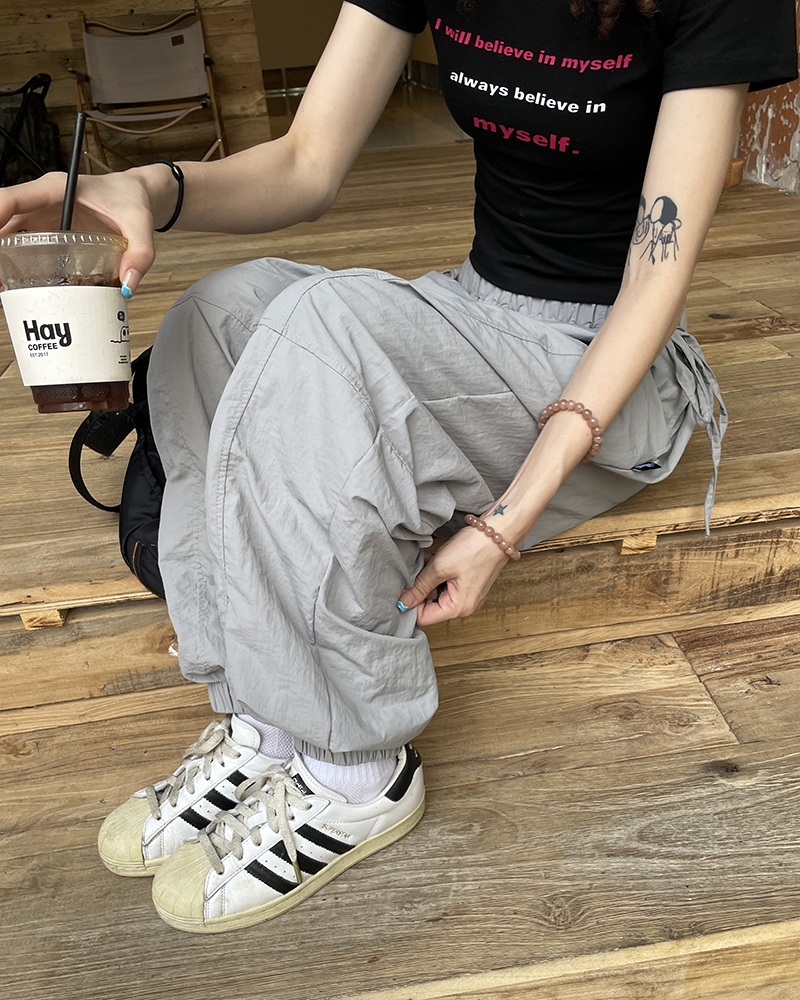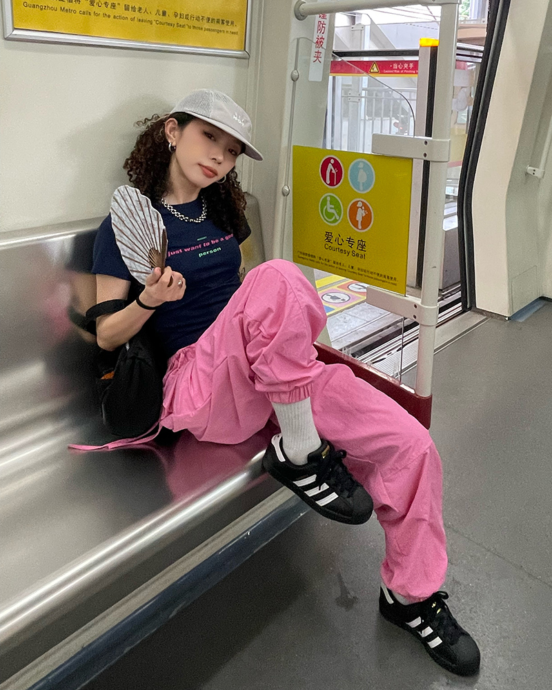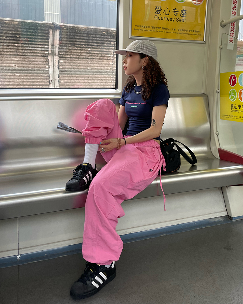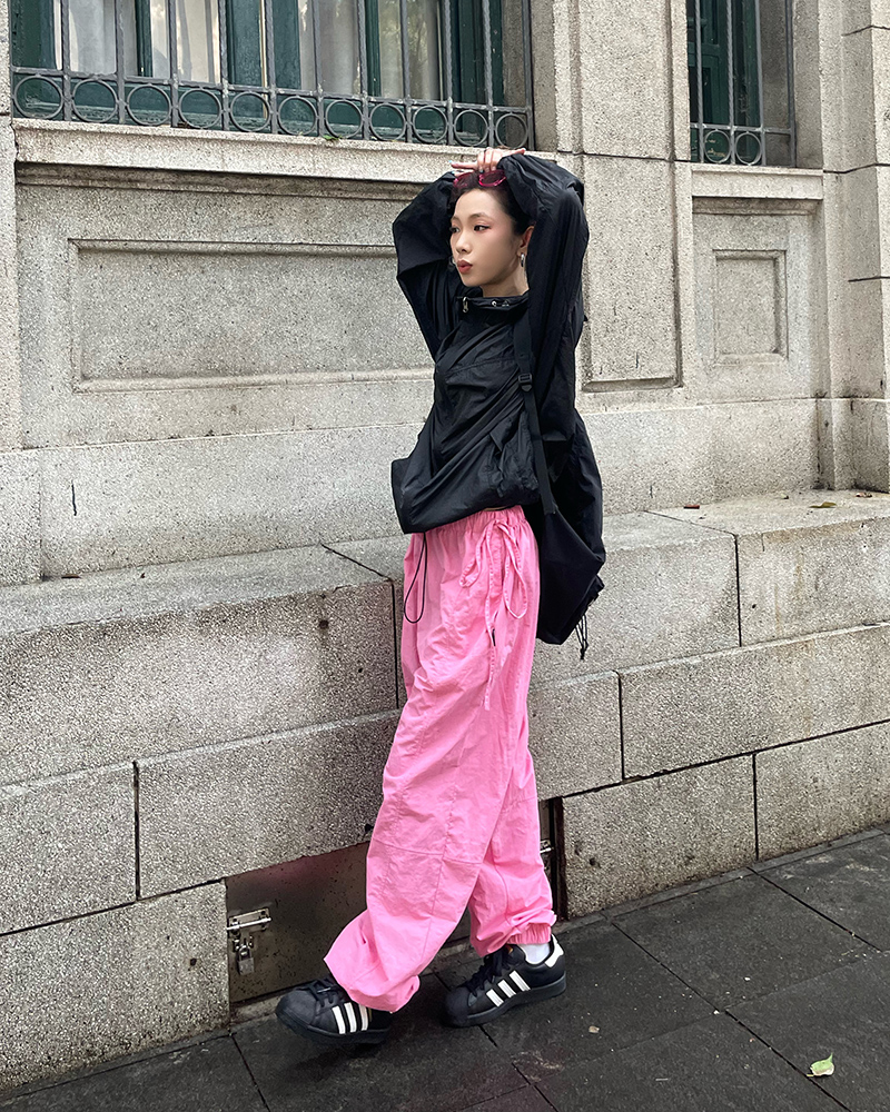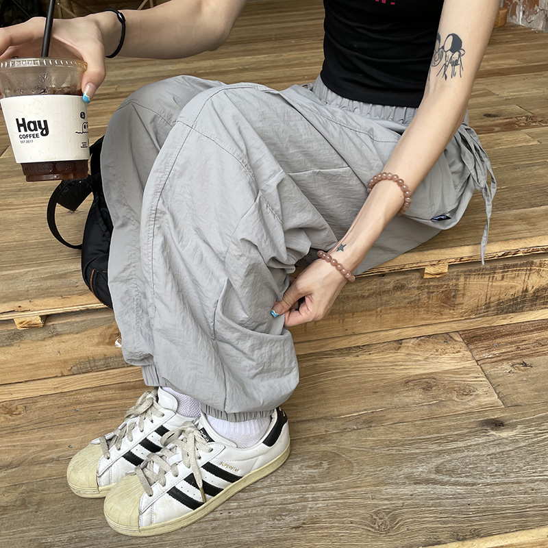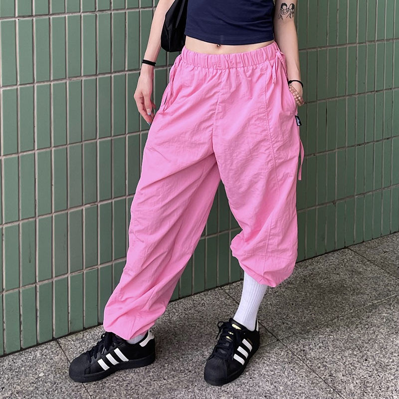 MMBBT辣妹工裝褲女多巴胺褶皺垂感夏季薄款街舞傘兵運動速乾褲子