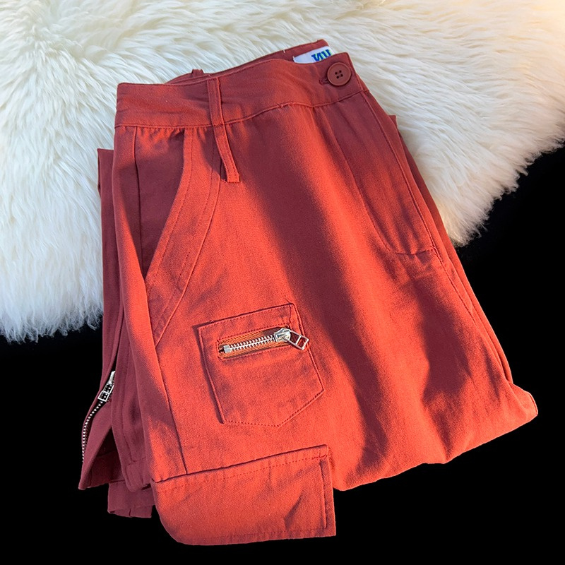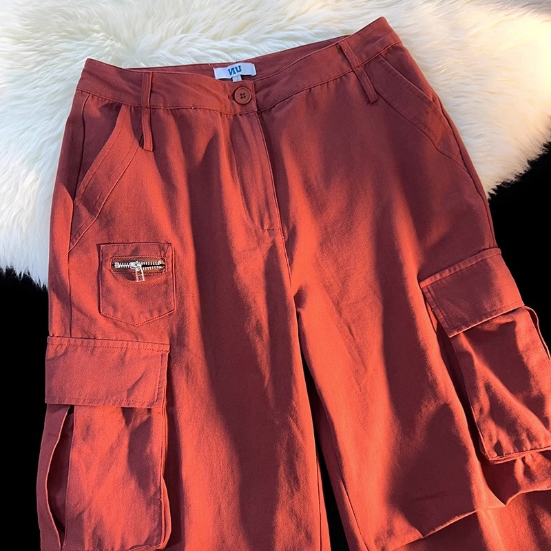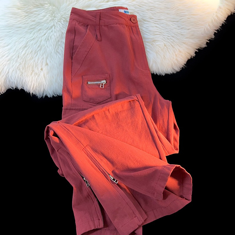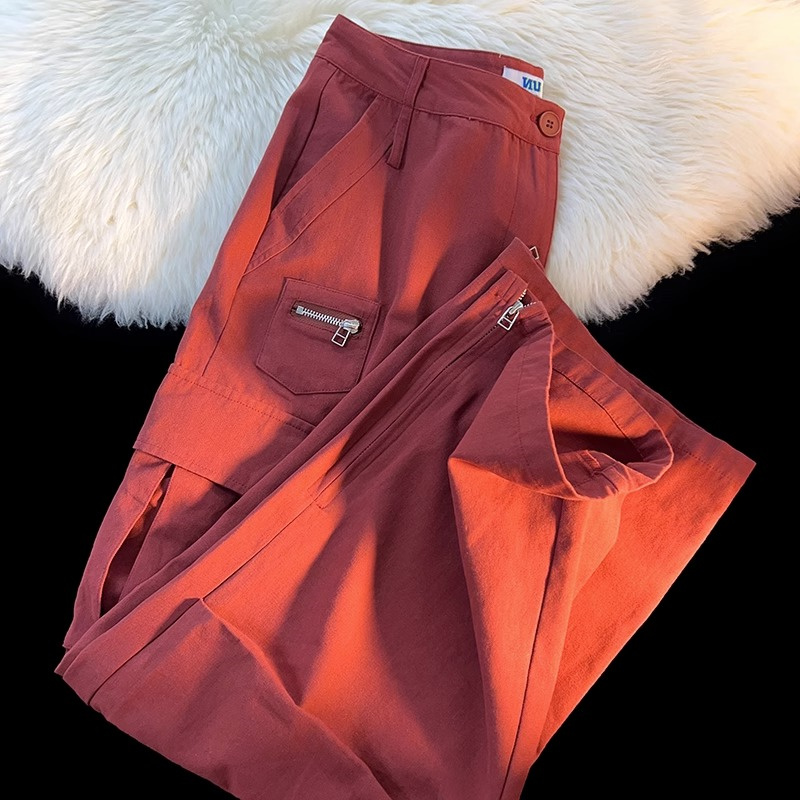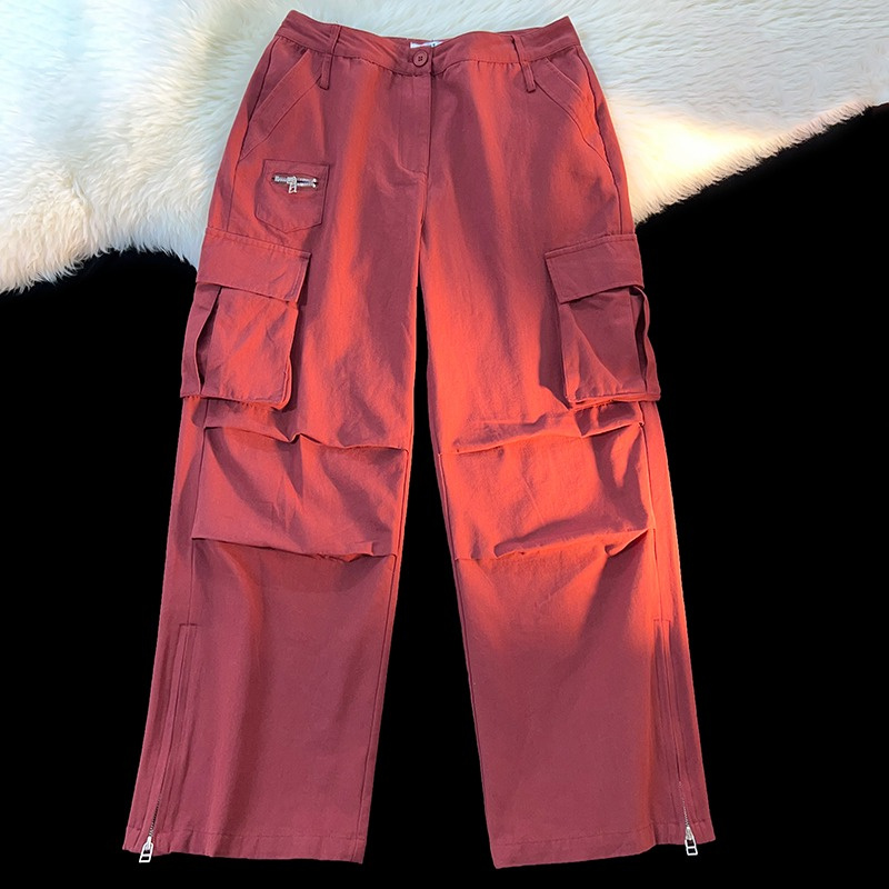 歐美hiphop側邊拉鍊工裝褲男女夏季ins潮酷風小眾設計街舞闊腿褲