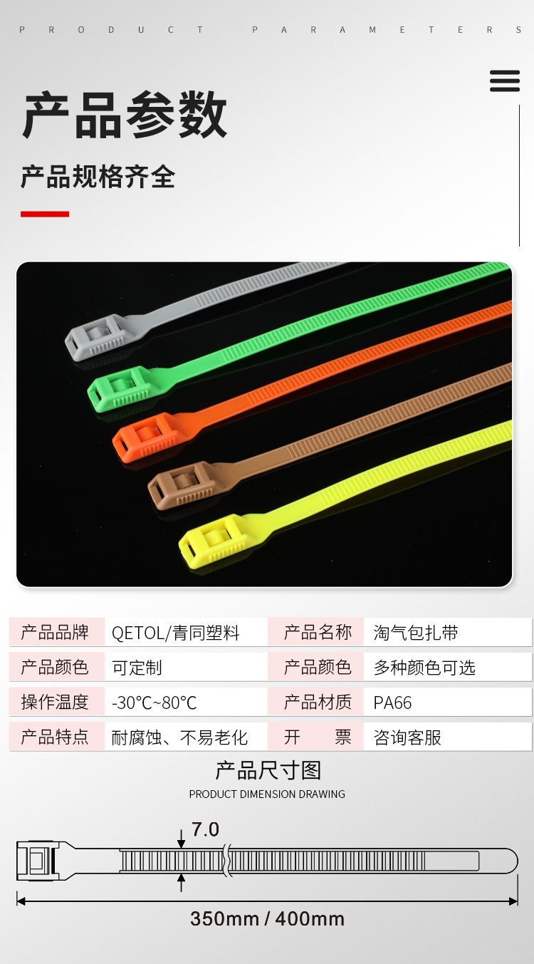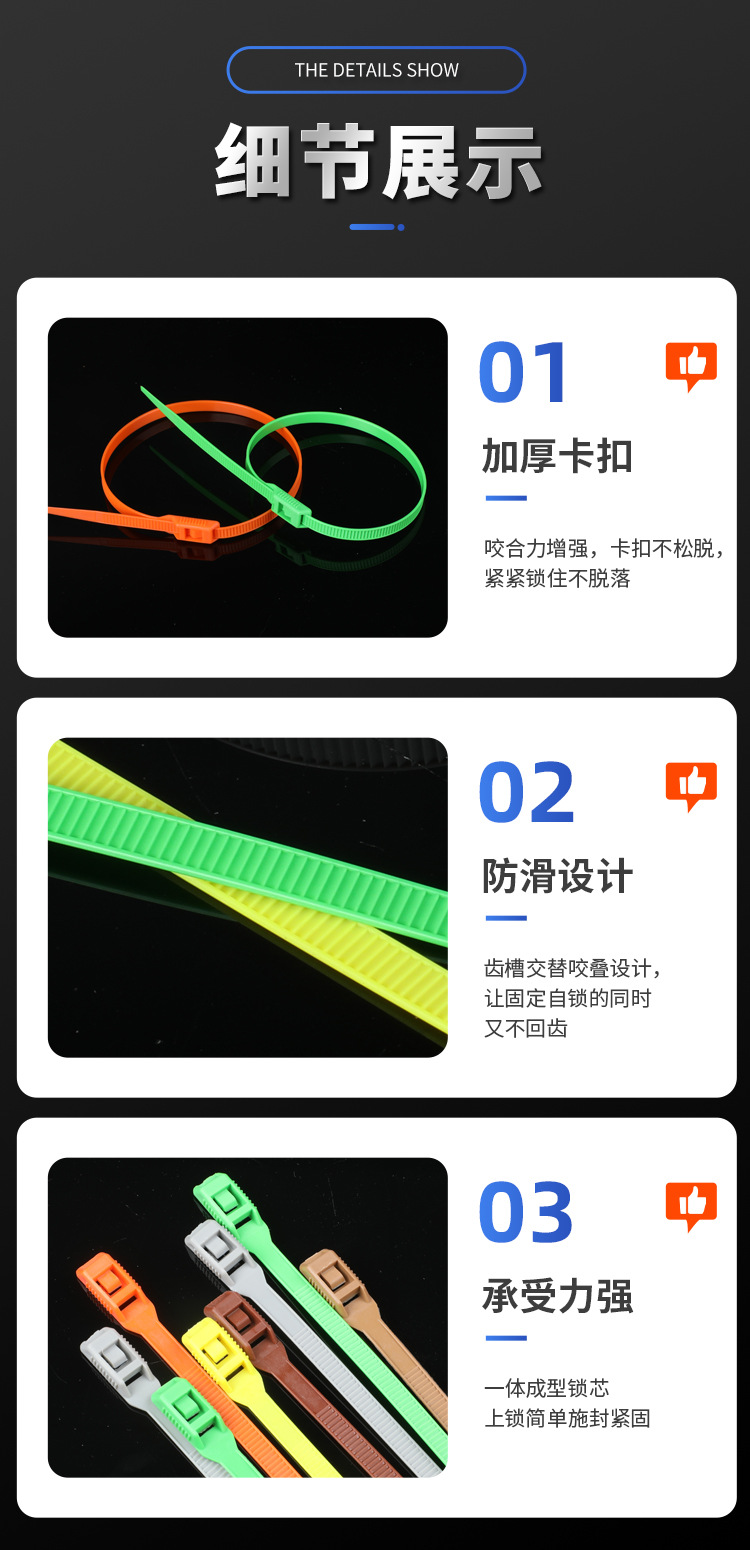 尼龙扎带 平穿型 儿童淘气堡扎带 黄色绿色橙色咖啡色彩色扎带