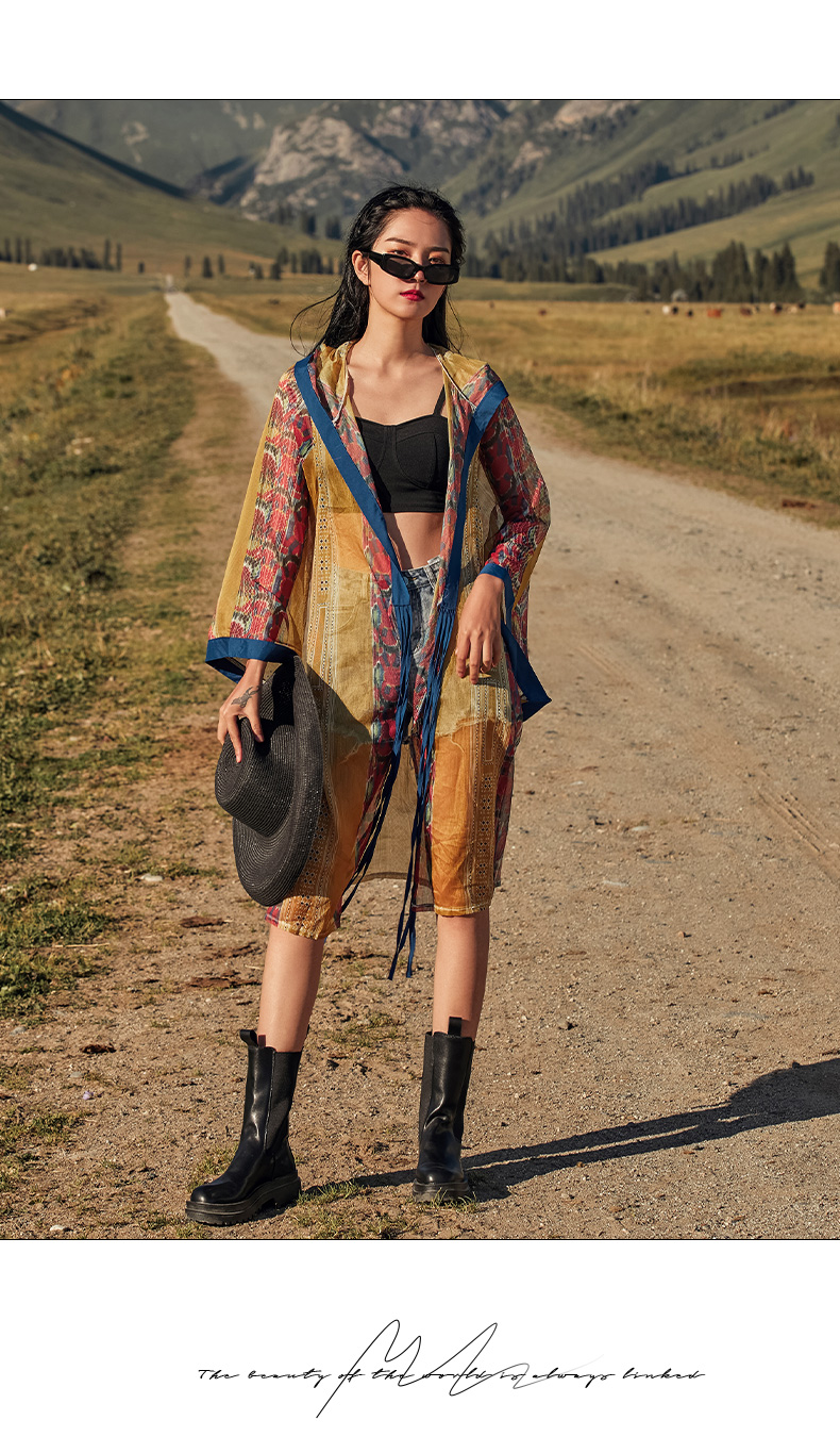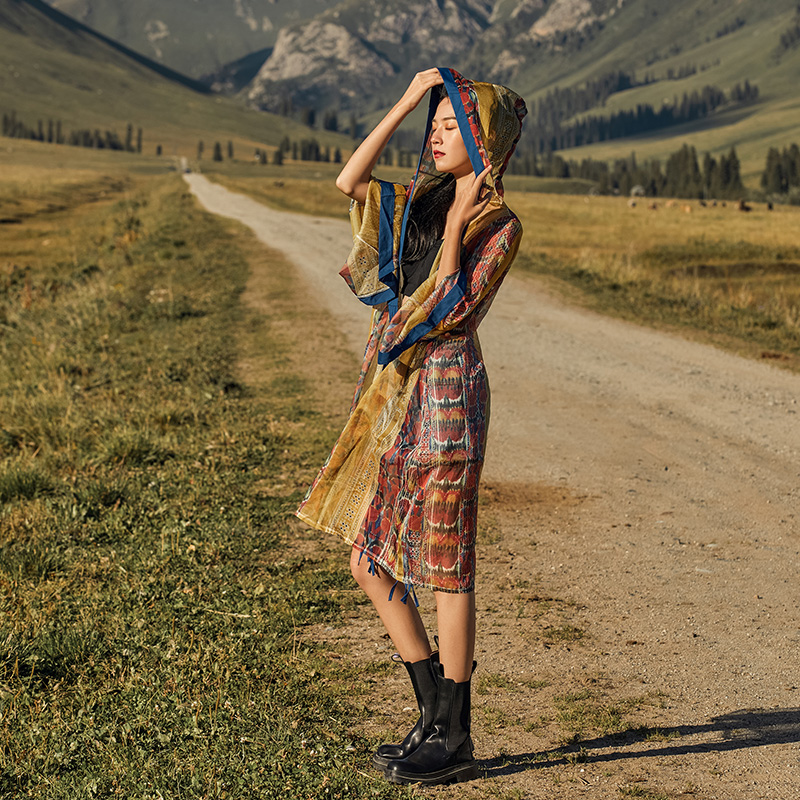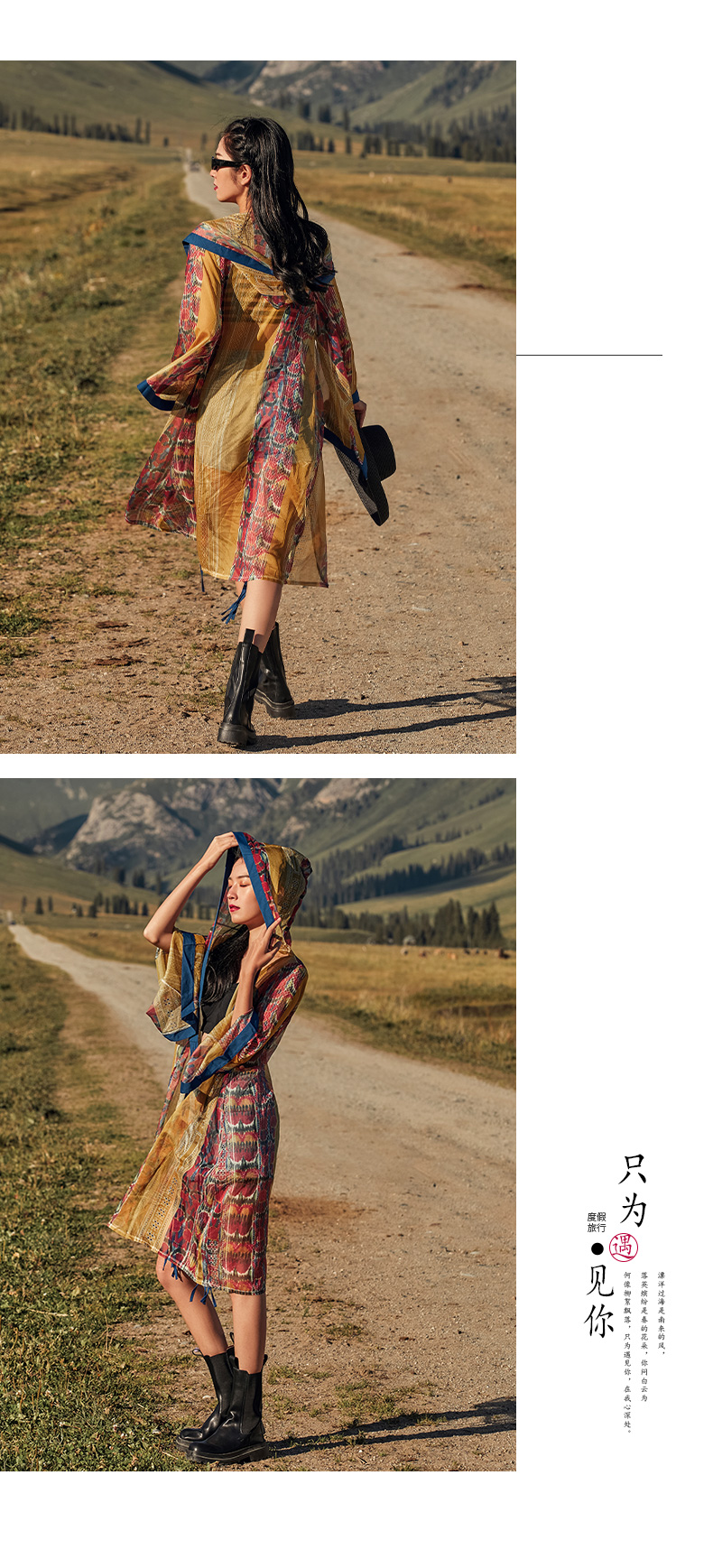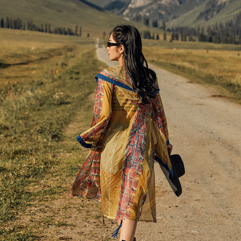 波西米亞雪紡沙灘防曬連帽開衫女薄款海邊度假長版長袖外搭大尺碼