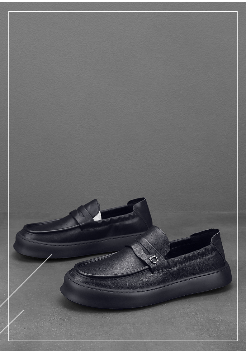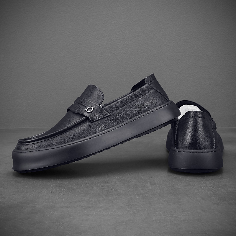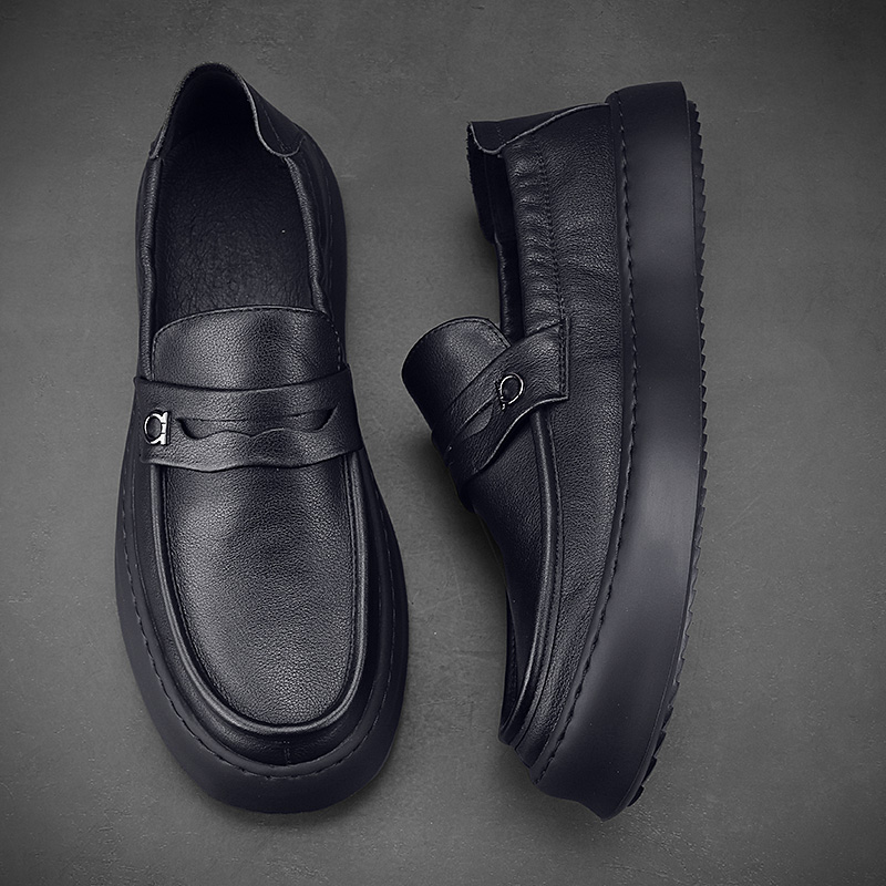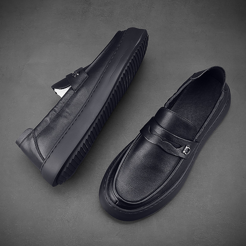 頭層牛皮軟底軟麵休閒樂福鞋英倫風上班皮鞋男真皮開車專用豆豆鞋