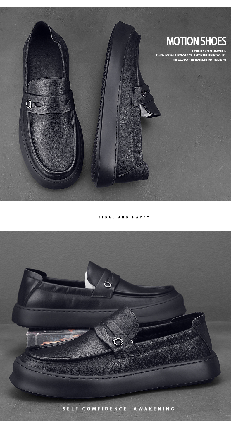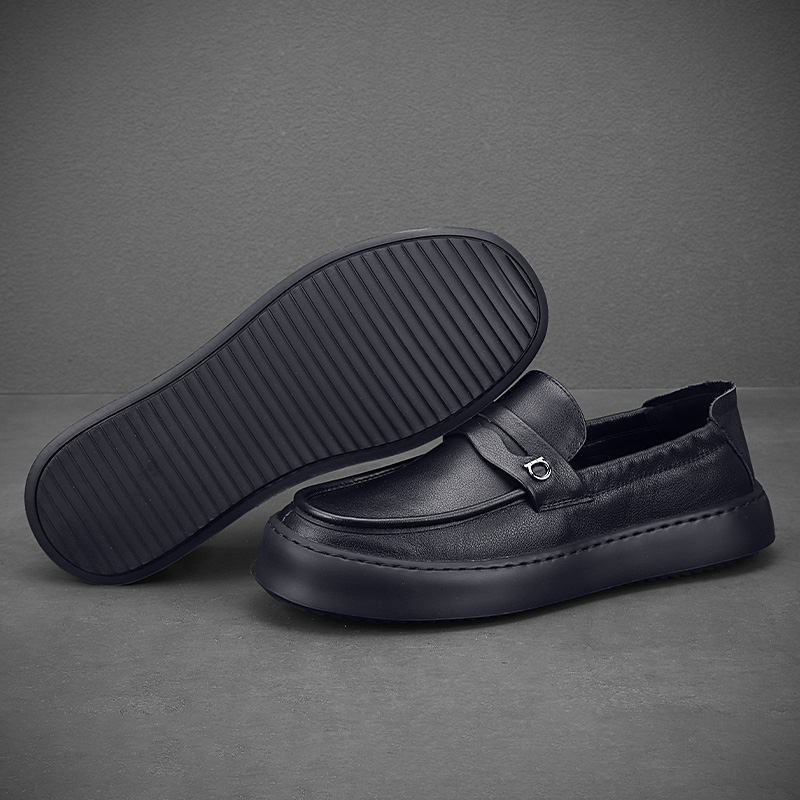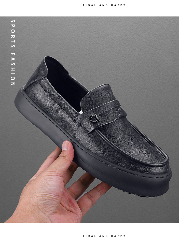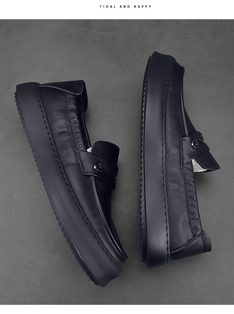 頭層牛皮軟底軟麵休閒樂福鞋英倫風上班皮鞋男真皮開車專用豆豆鞋