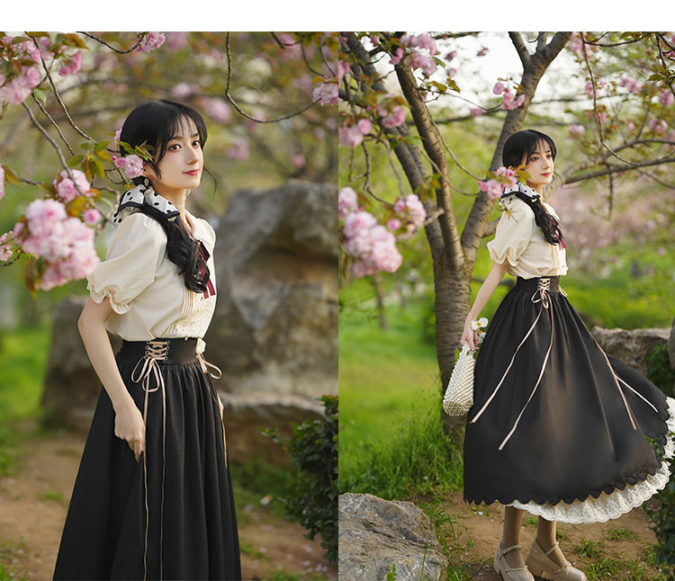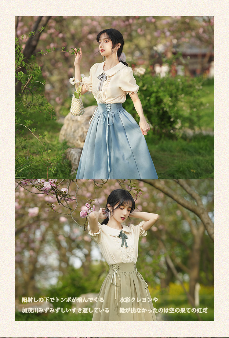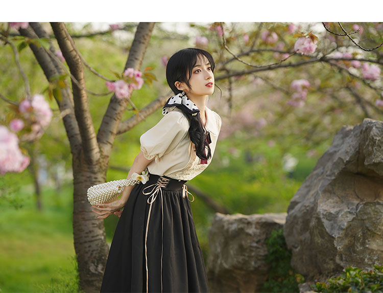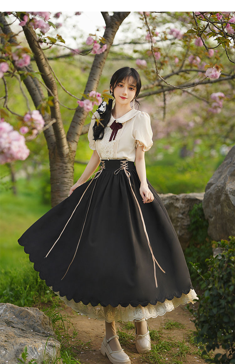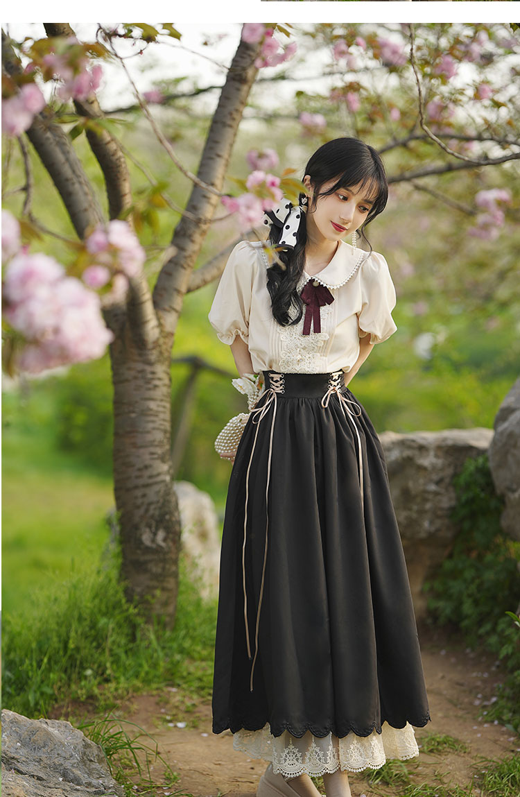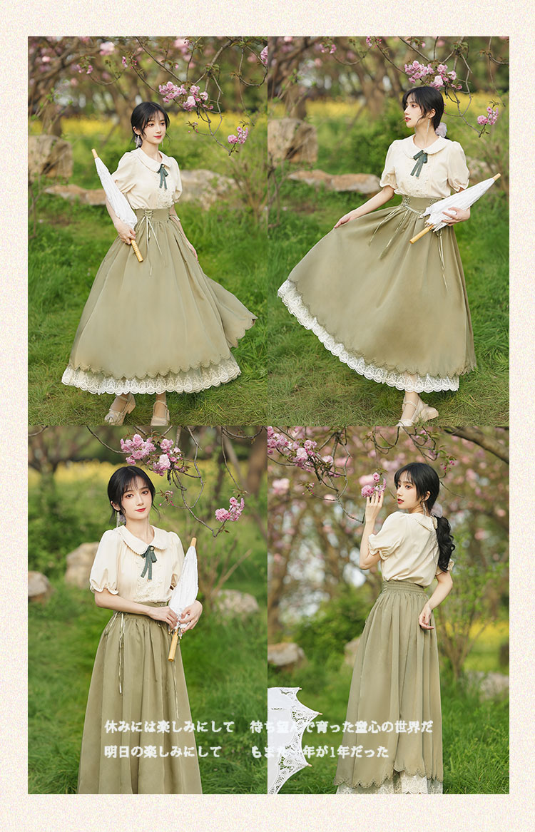 秋季女裝法式浪漫文藝學院風復古大擺裙日常杏色羅莉塔洋裝氣質