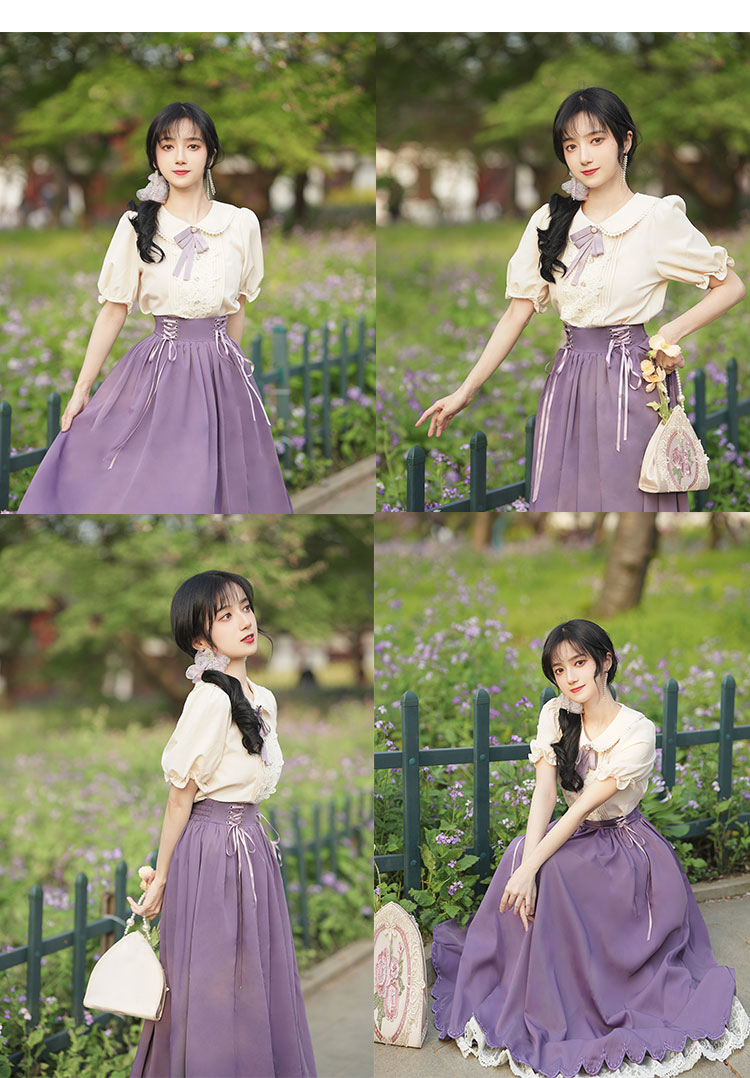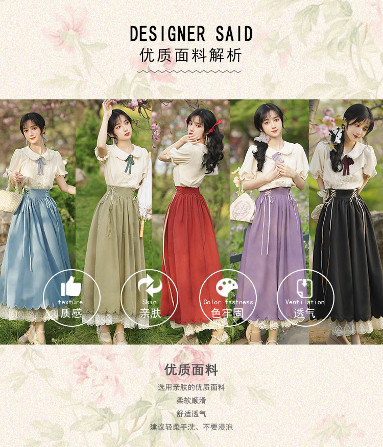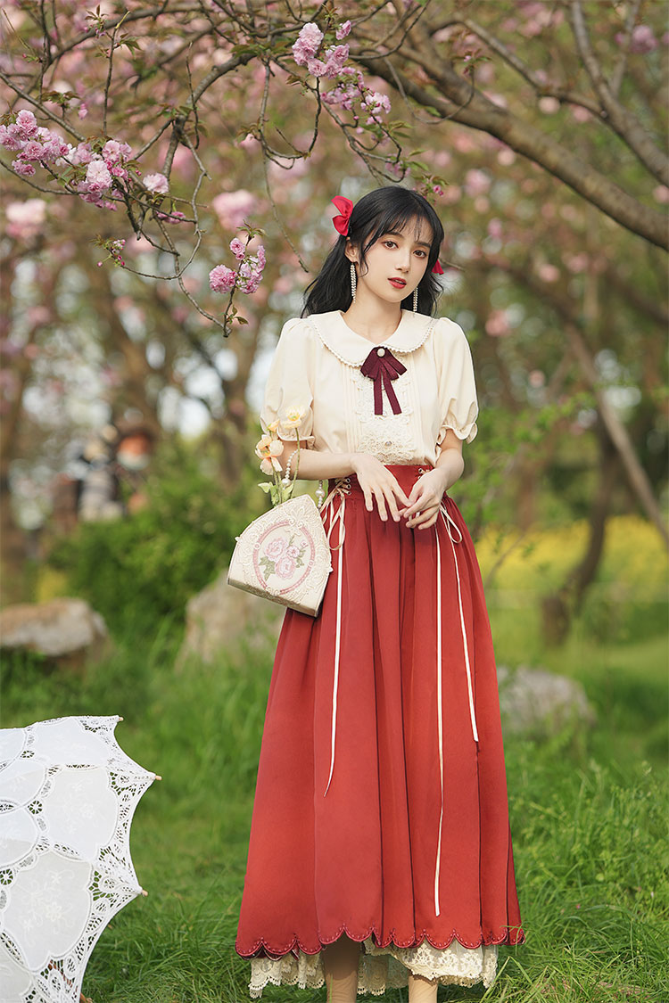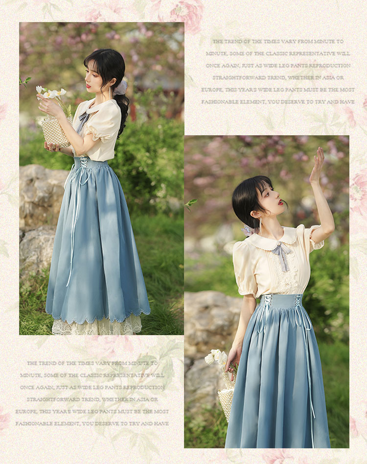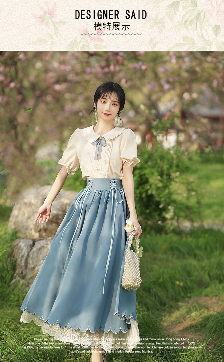 秋季女裝法式浪漫文藝學院風復古大擺裙日常杏色羅莉塔洋裝氣質