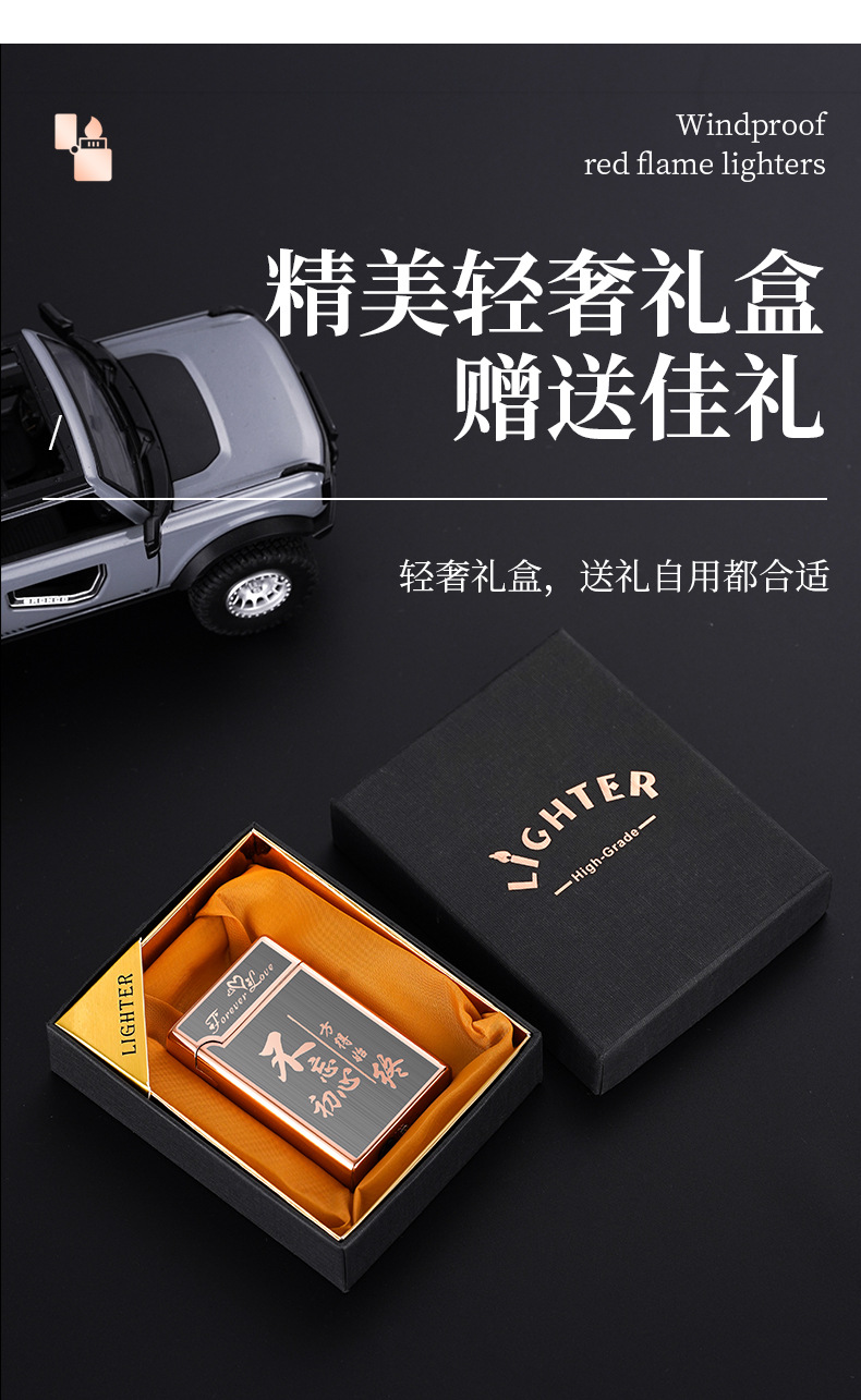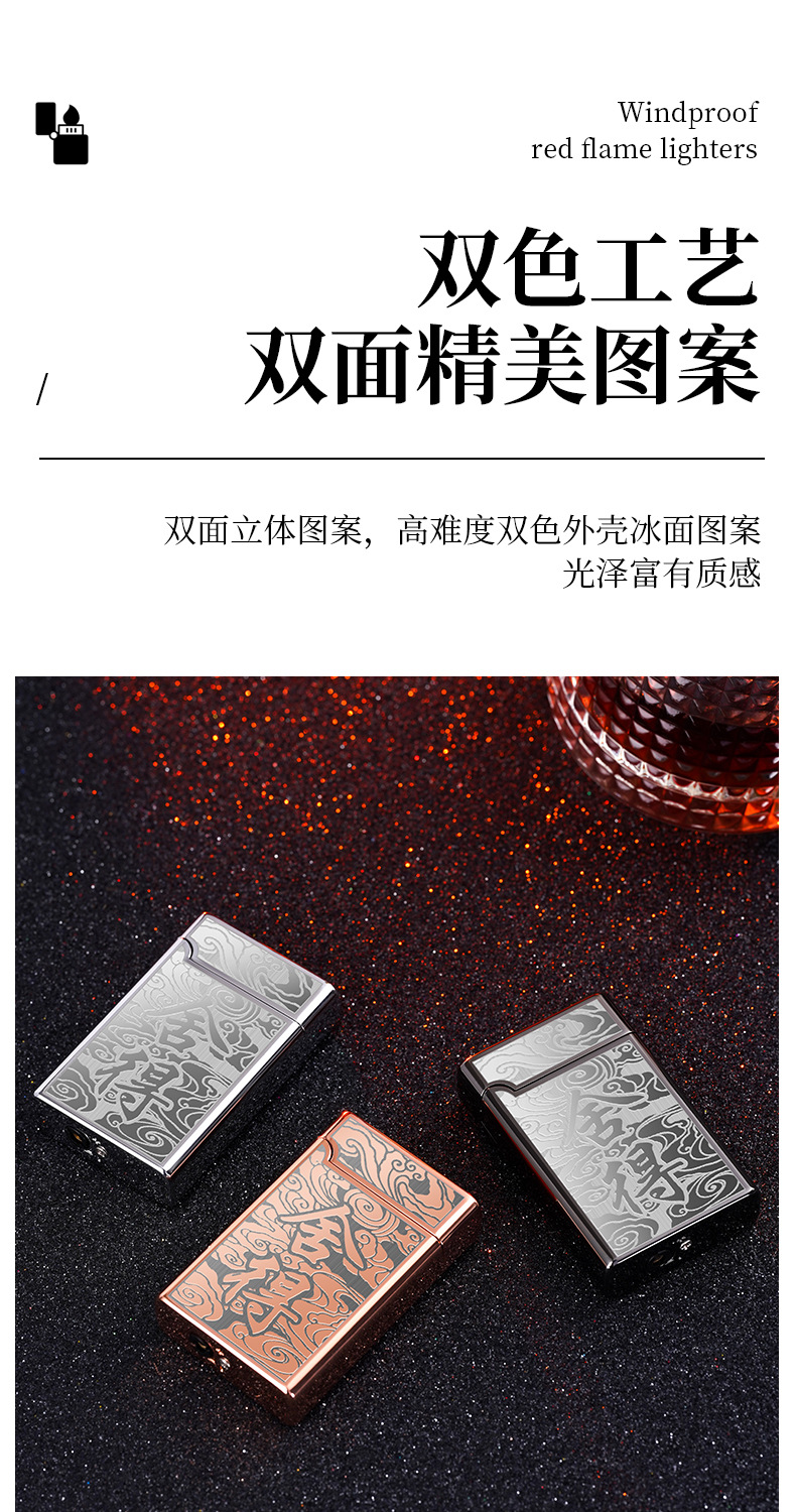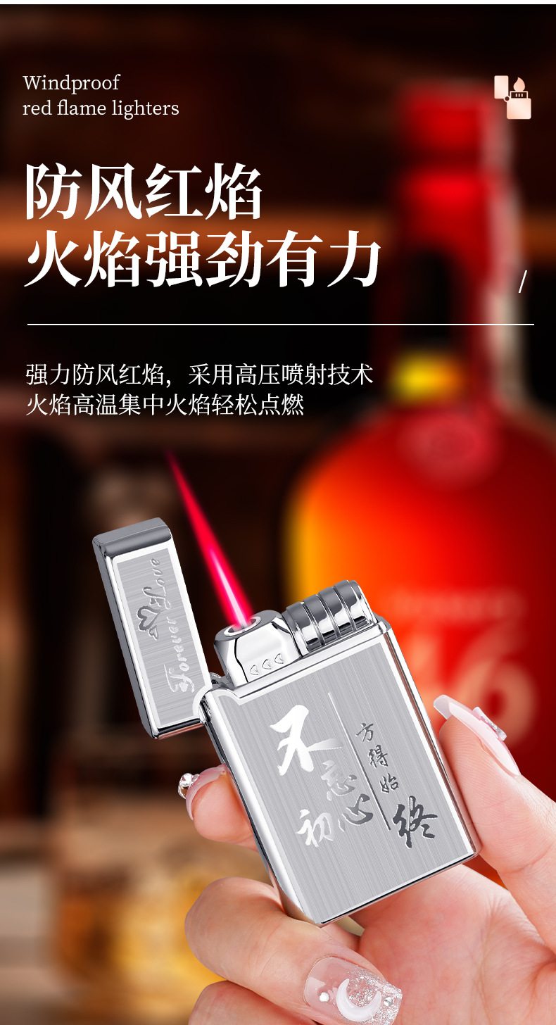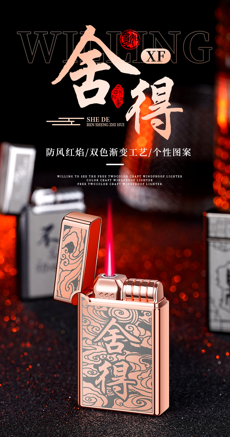 XF3701双色直冲红火防风打火机个性按压式充气打火机厂家批发