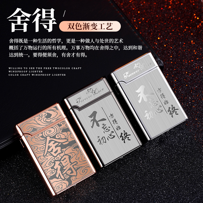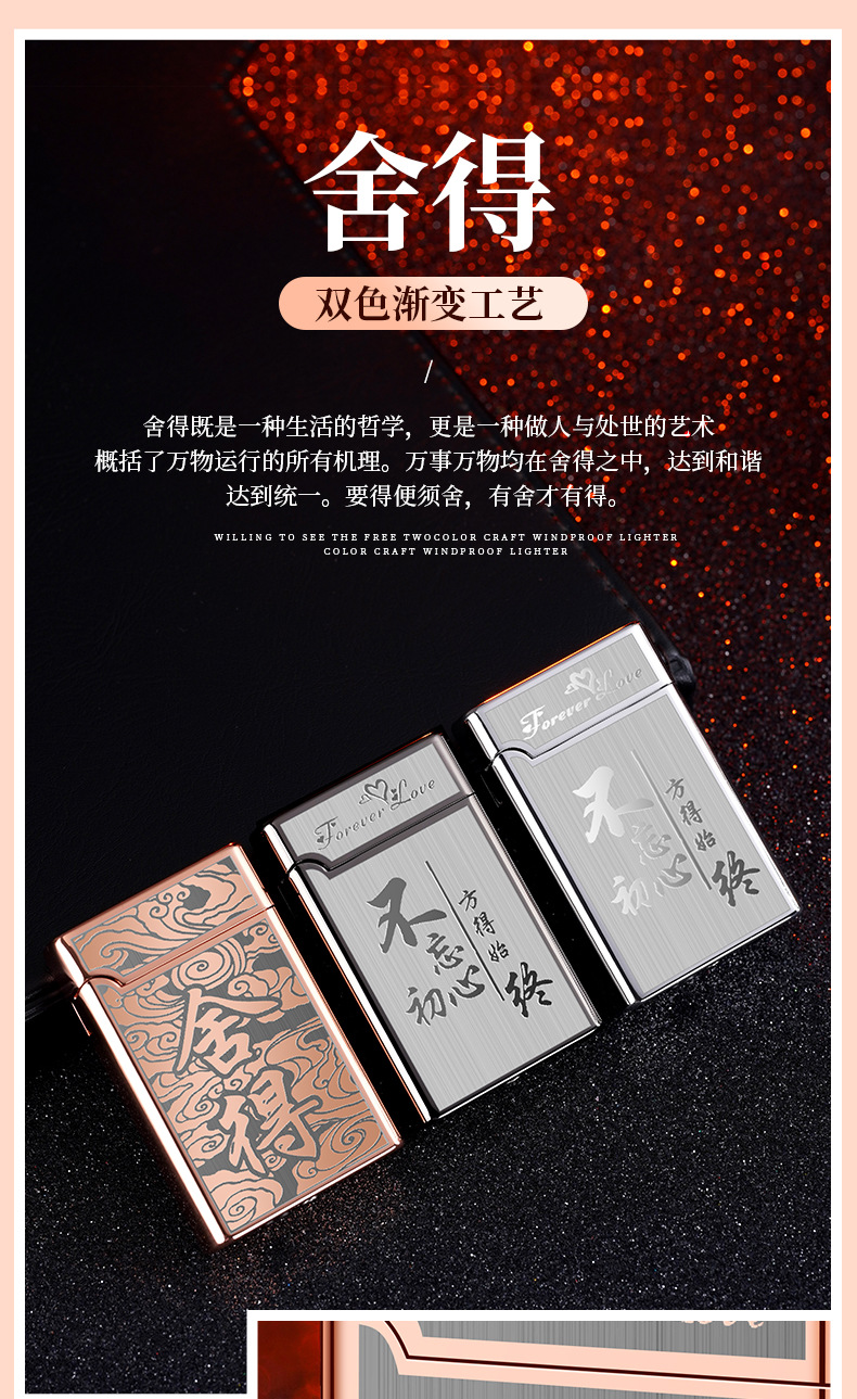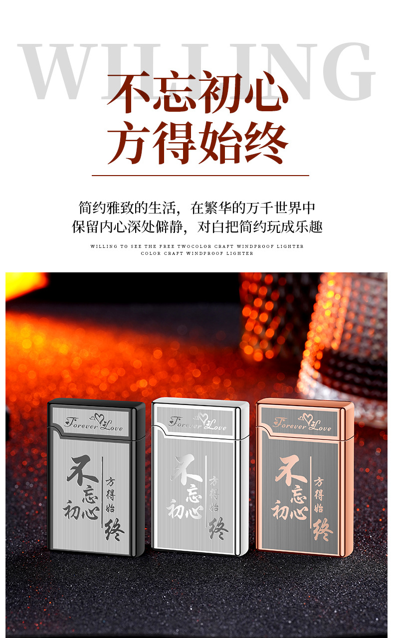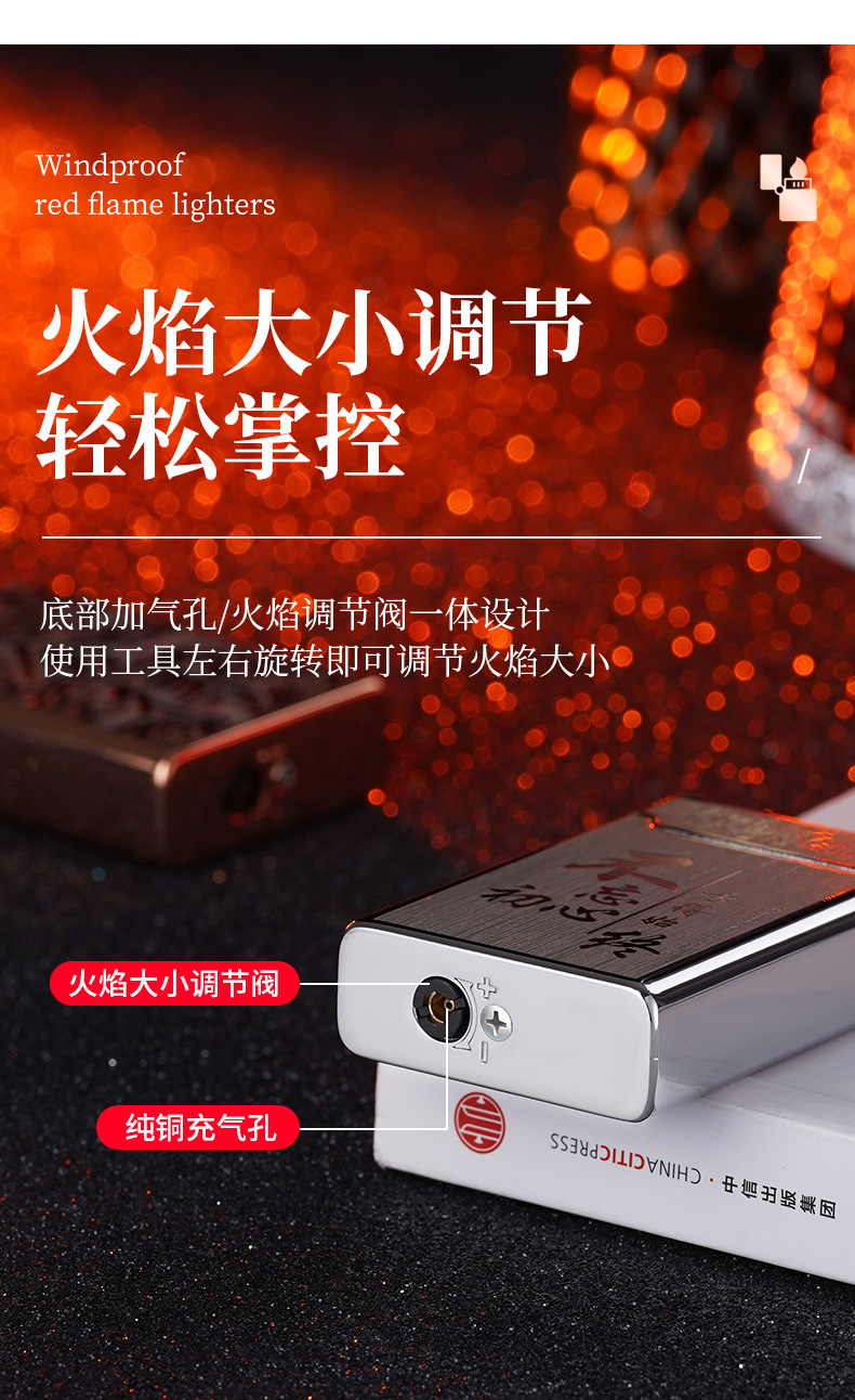 XF3701双色直冲红火防风打火机个性按压式充气打火机厂家批发
