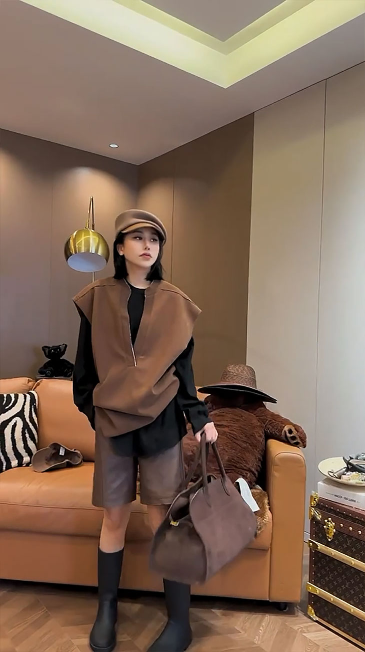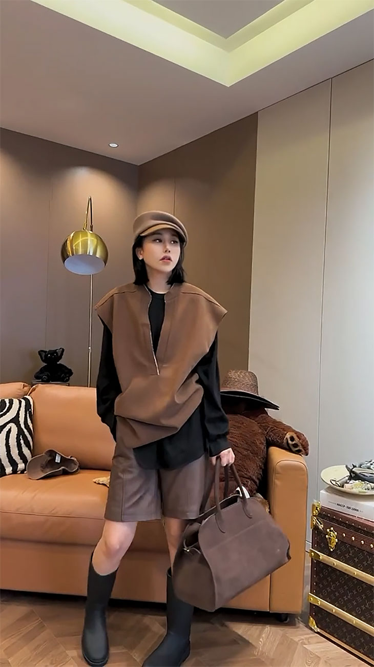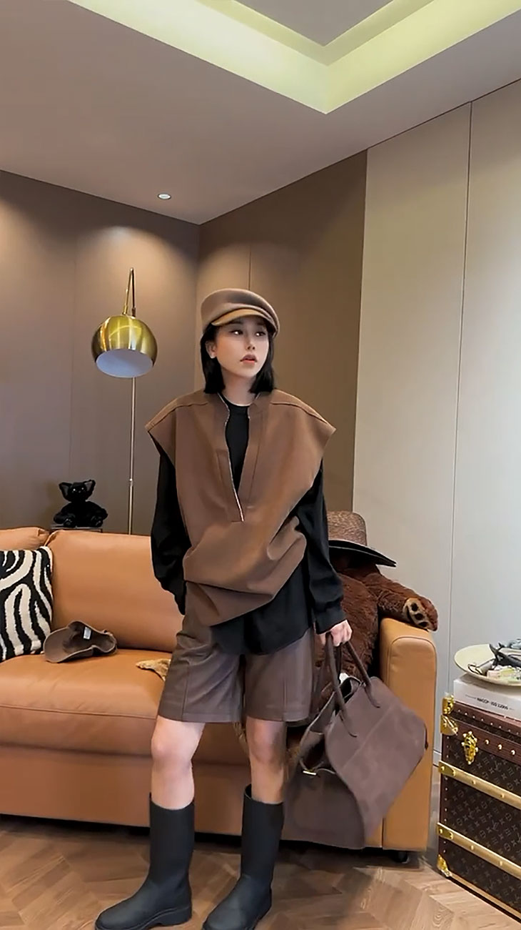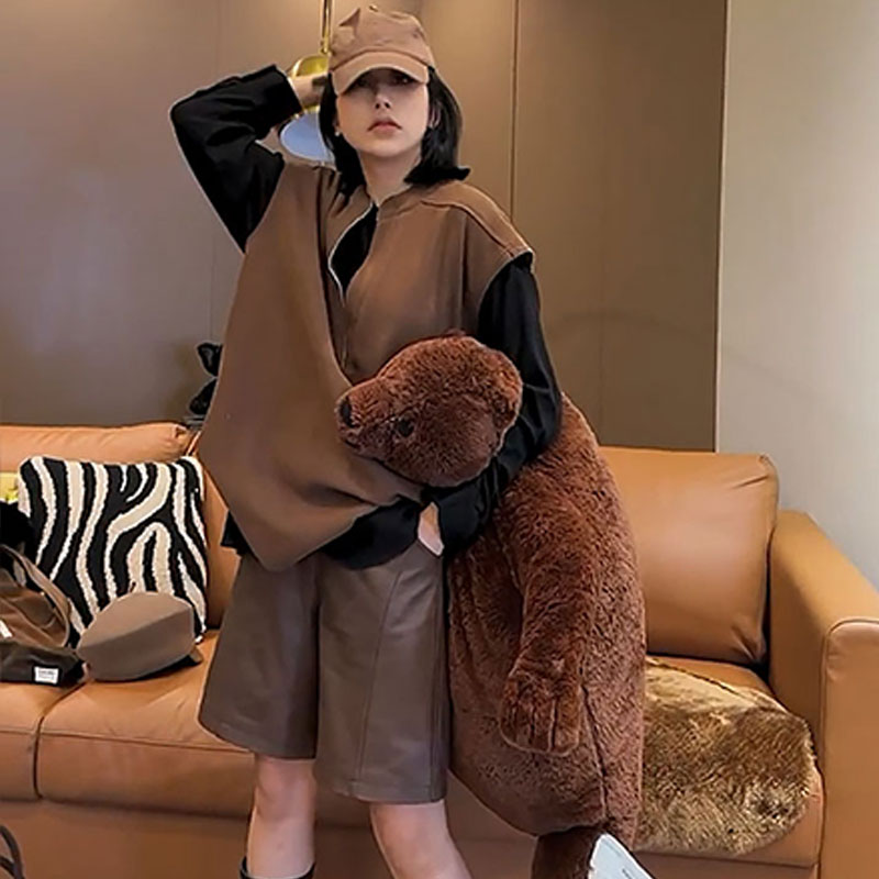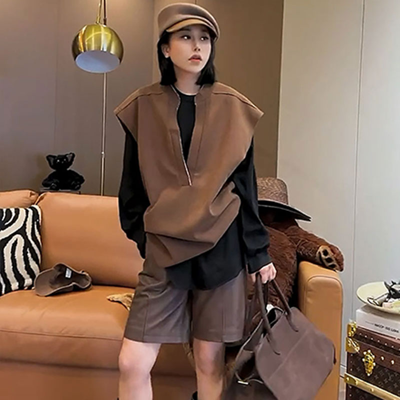 顏色分類 咖色馬甲,咖色褲子,咖色馬甲+咖色褲子,黑色打底衫,咖色馬甲+黑色打底衫,咖色馬甲+咖色褲子+黑色打底衫