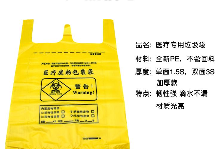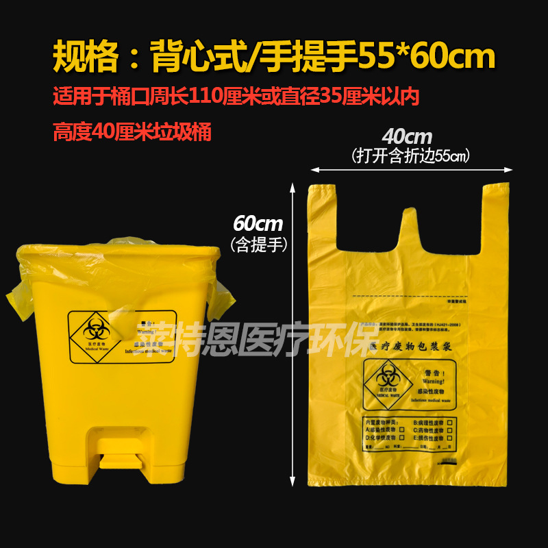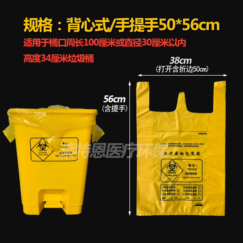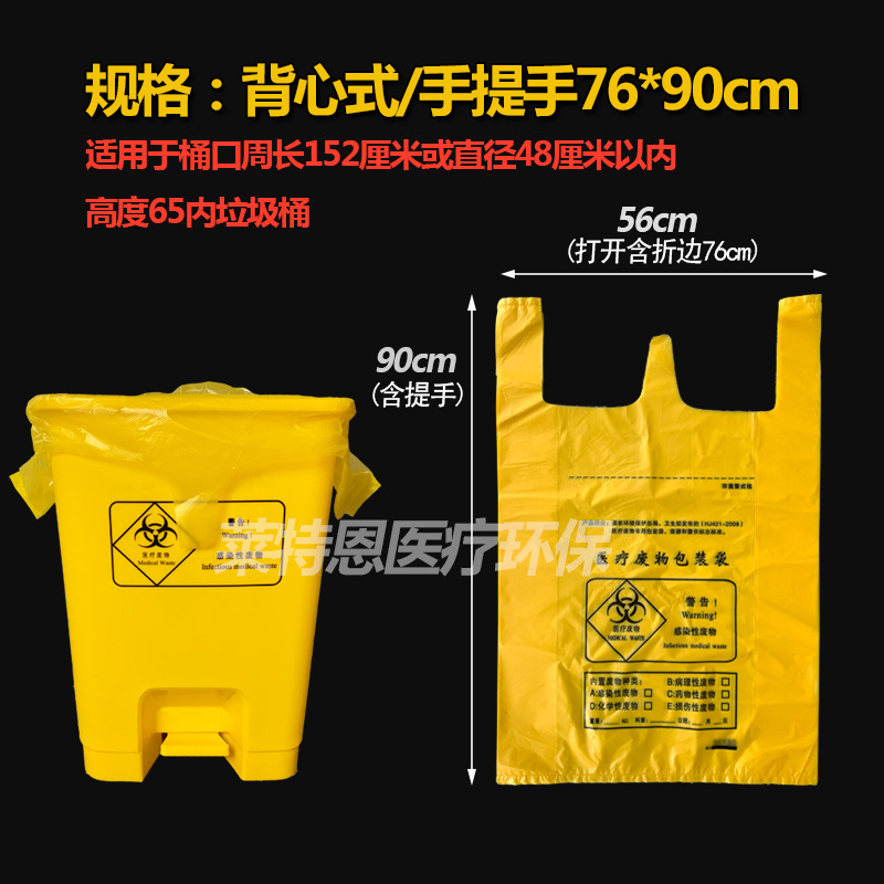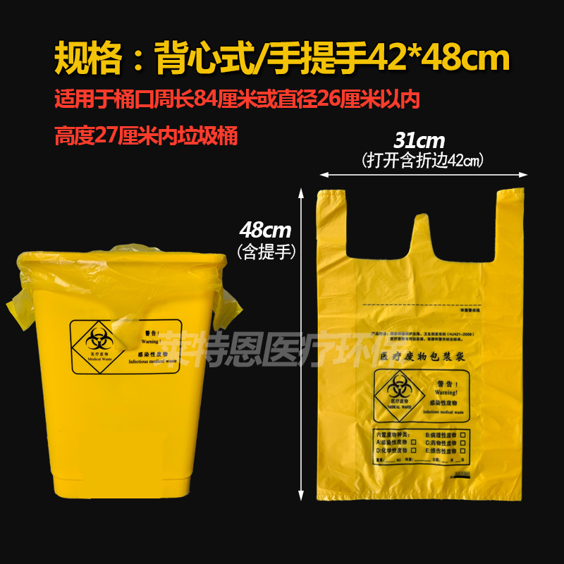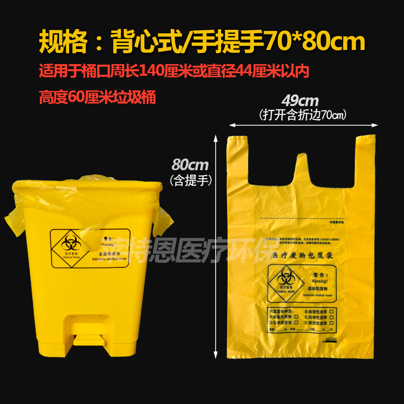 医疗垃圾袋黄色加厚医废污物塑料袋垃圾袋背心手提平口包邮