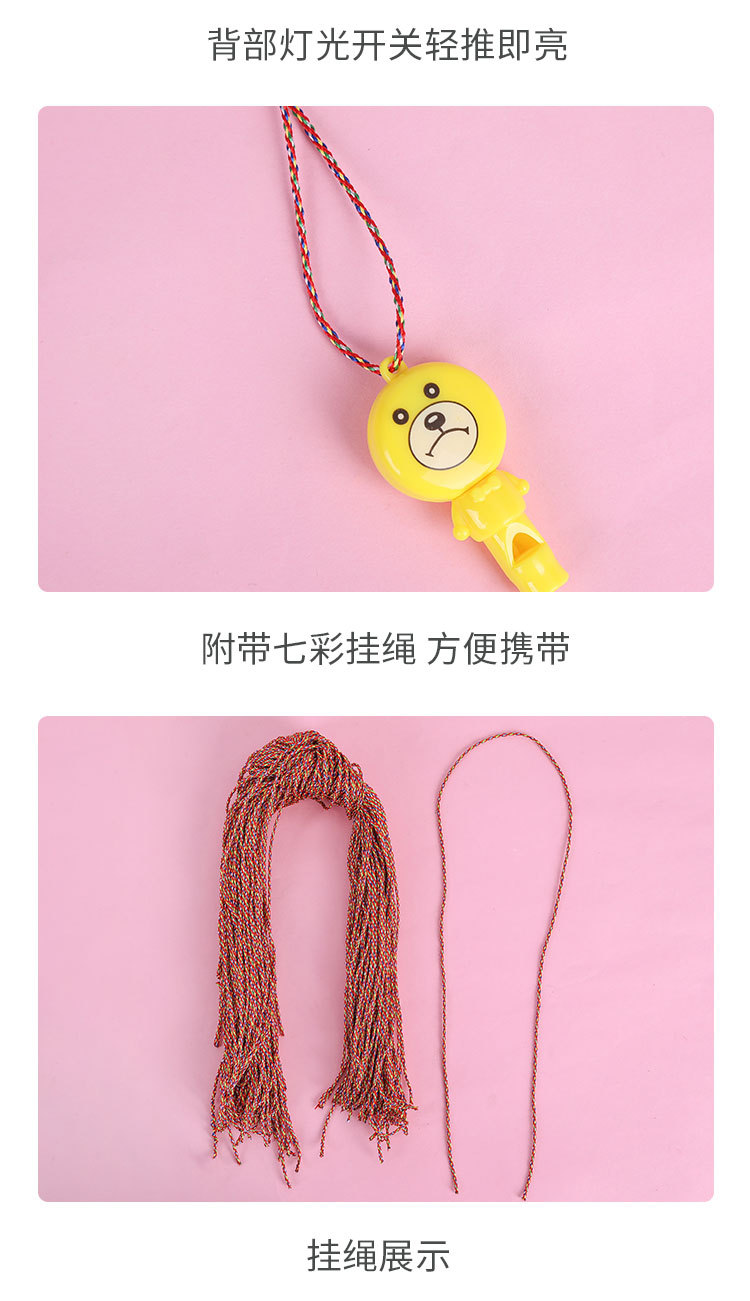发光口哨款式混发.送的 绳子是没有穿上的 需要自己穿上。口哨和绳子分开发货.100个一包.2000个/箱