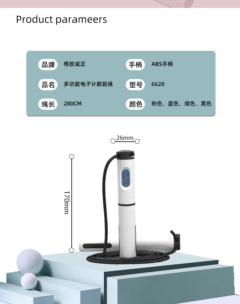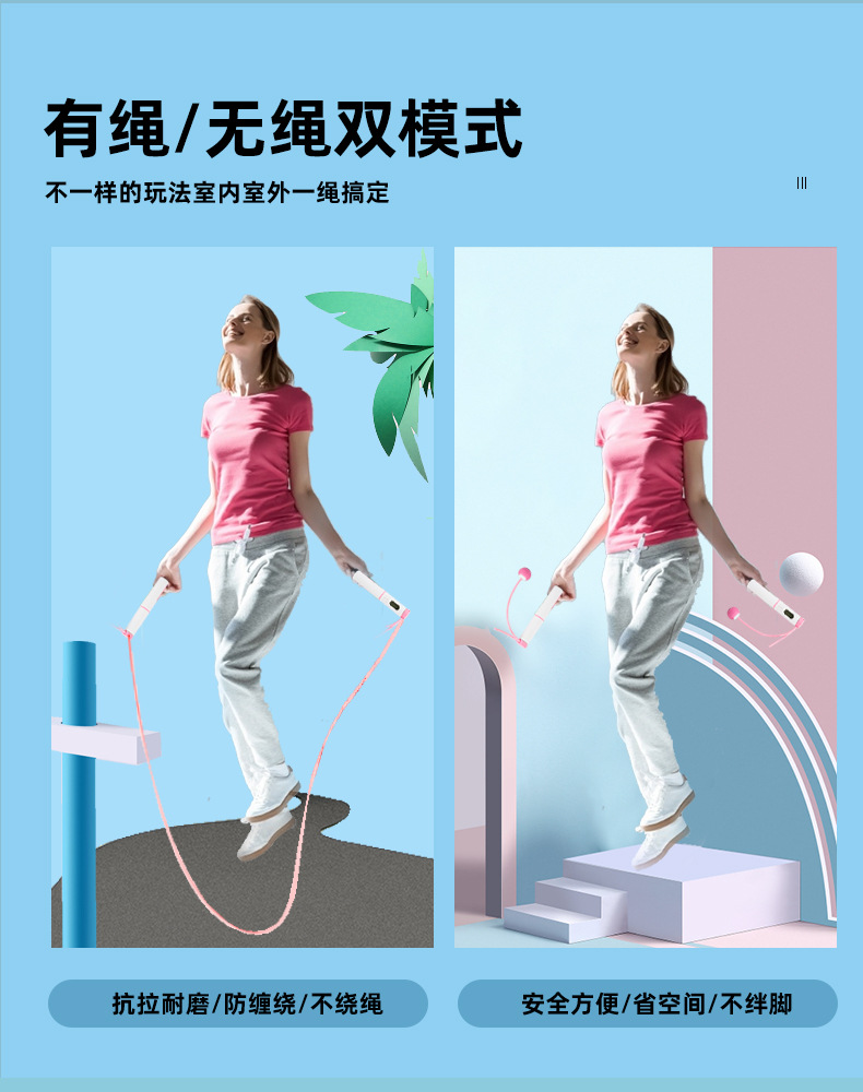 6620无绳跳绳静音轴承负重跳绳中考跳绳套装电子计数跳绳