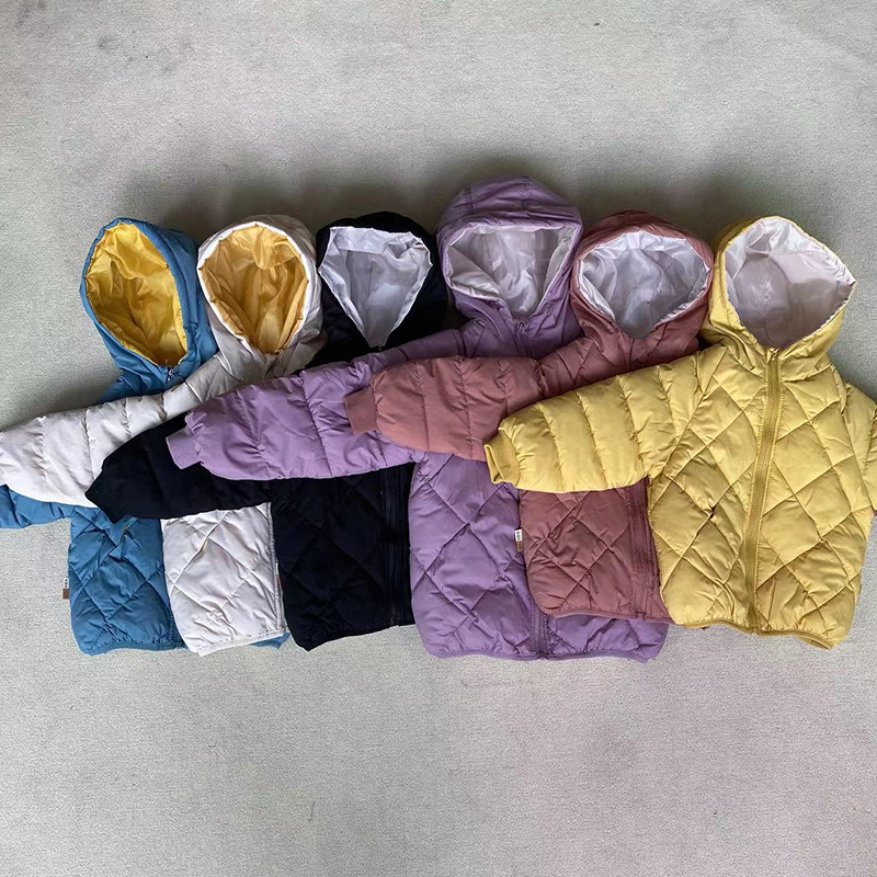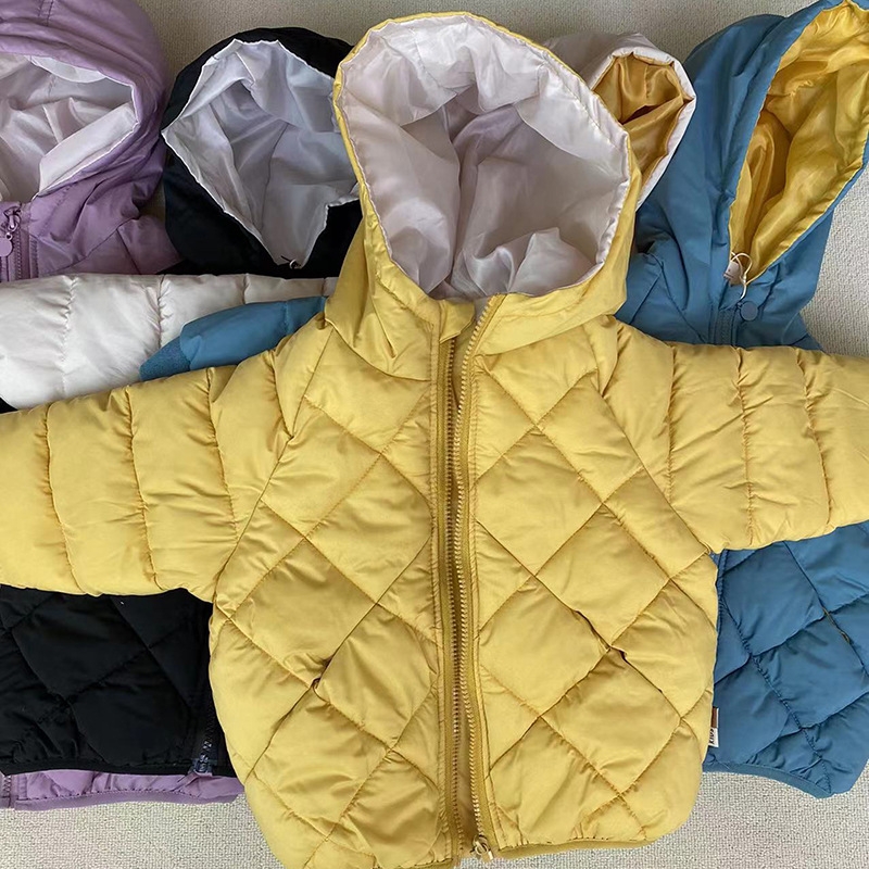 童装羽绒棉服菱形格潮 秋冬宝宝小棉袄保暖2022款棉衣儿童羽绒棉服男童女童外套儿童外套男女宝宝菱形格夹棉棉服儿童外出保暖冬