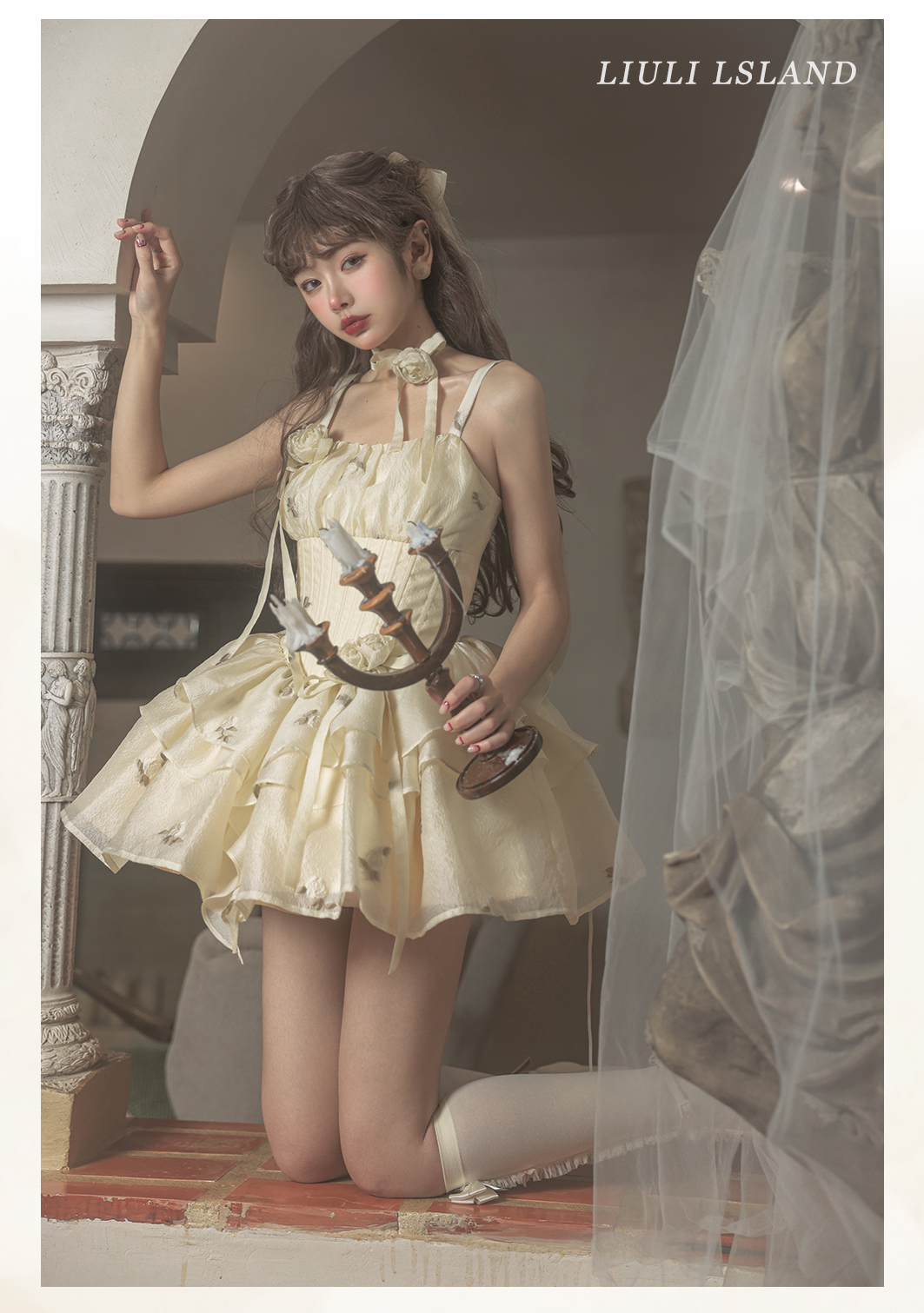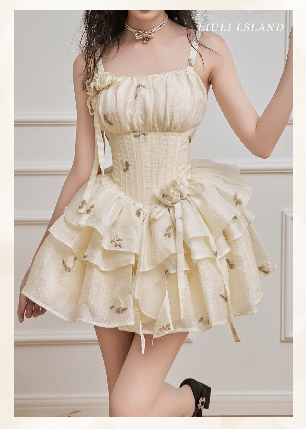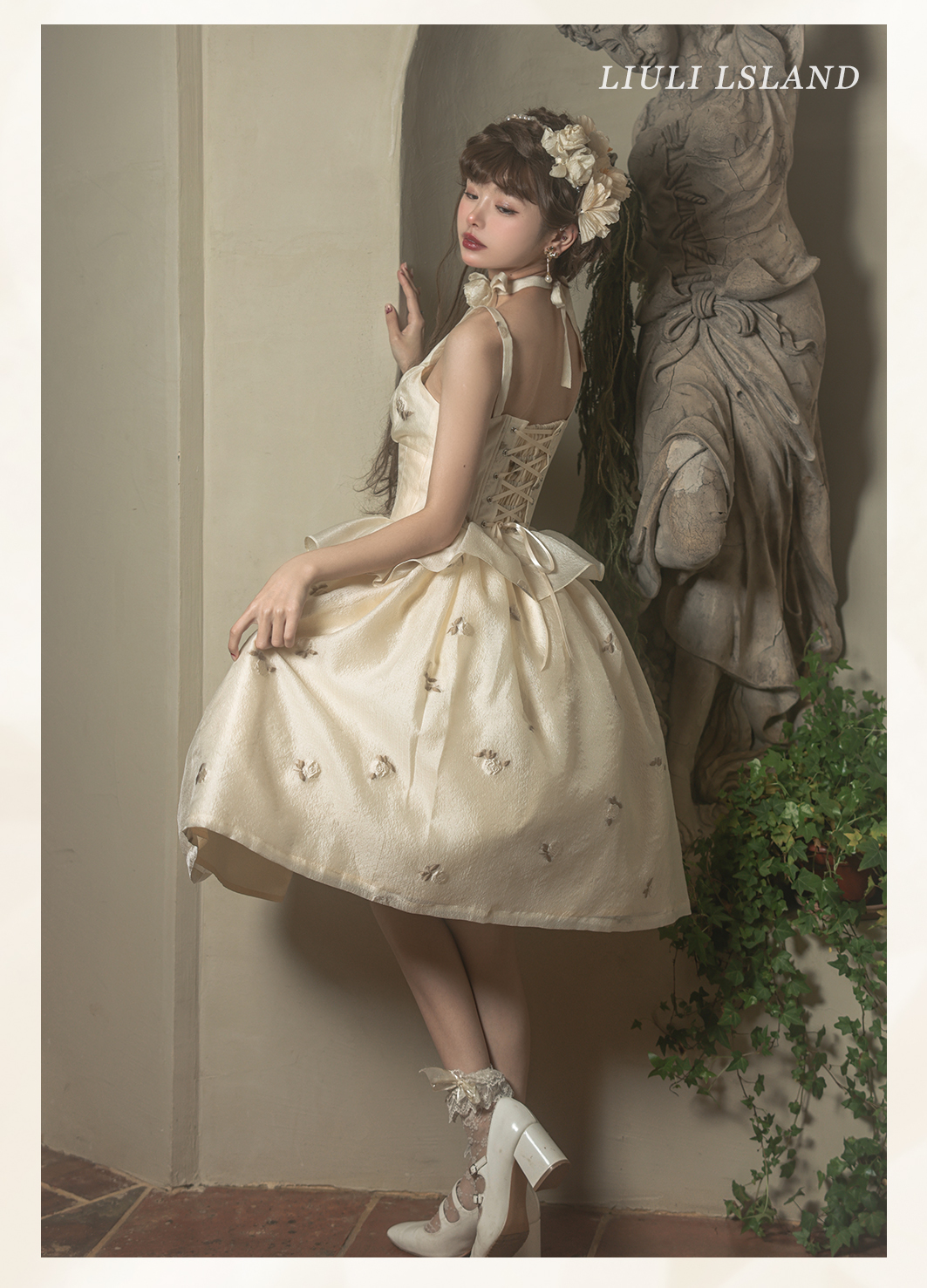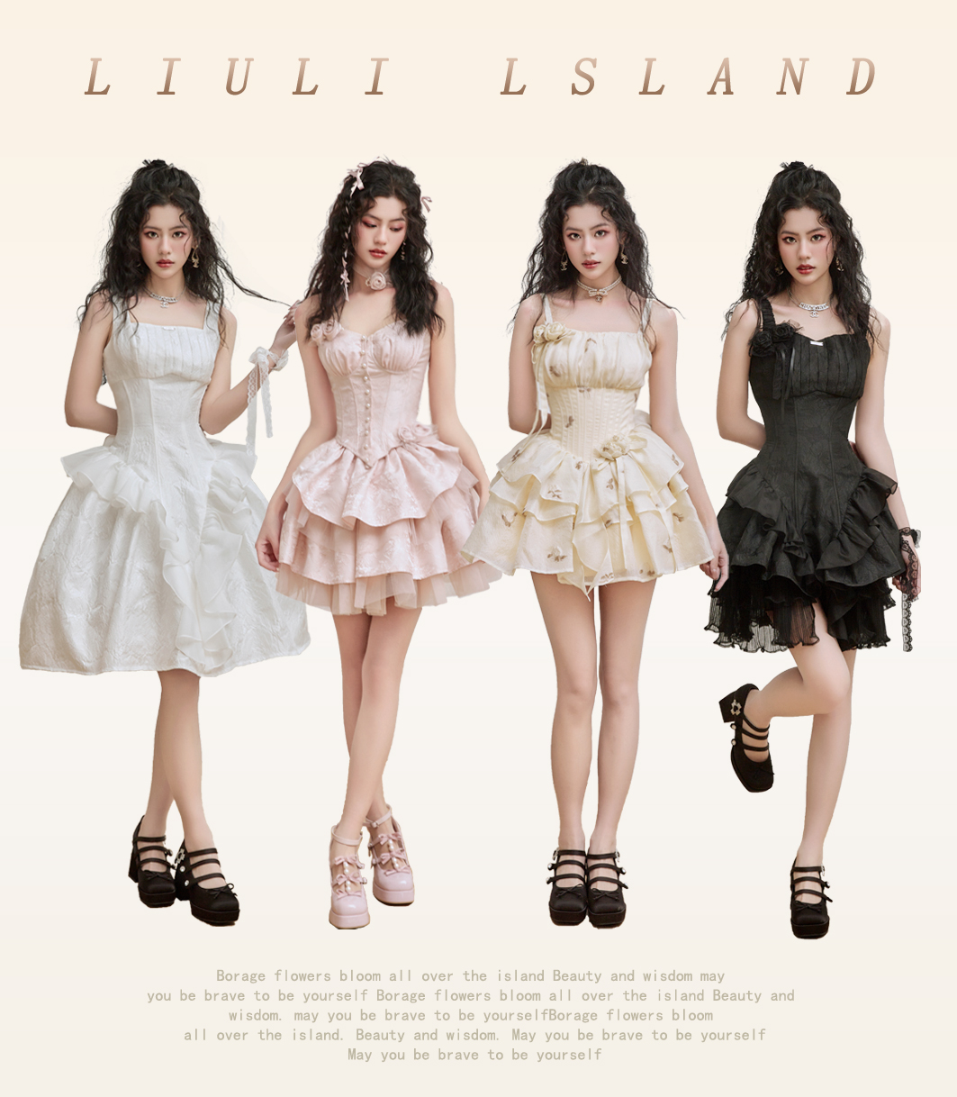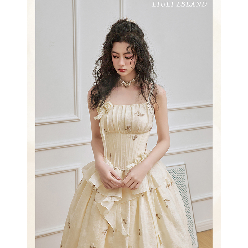 LIULI LSLAND琉璃島法式芭蕾穿搭高腰連身裙lolita裙少女風魚骨裙