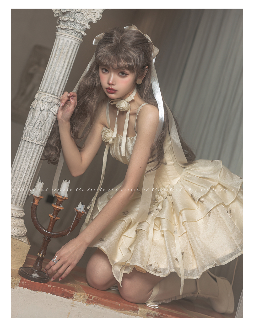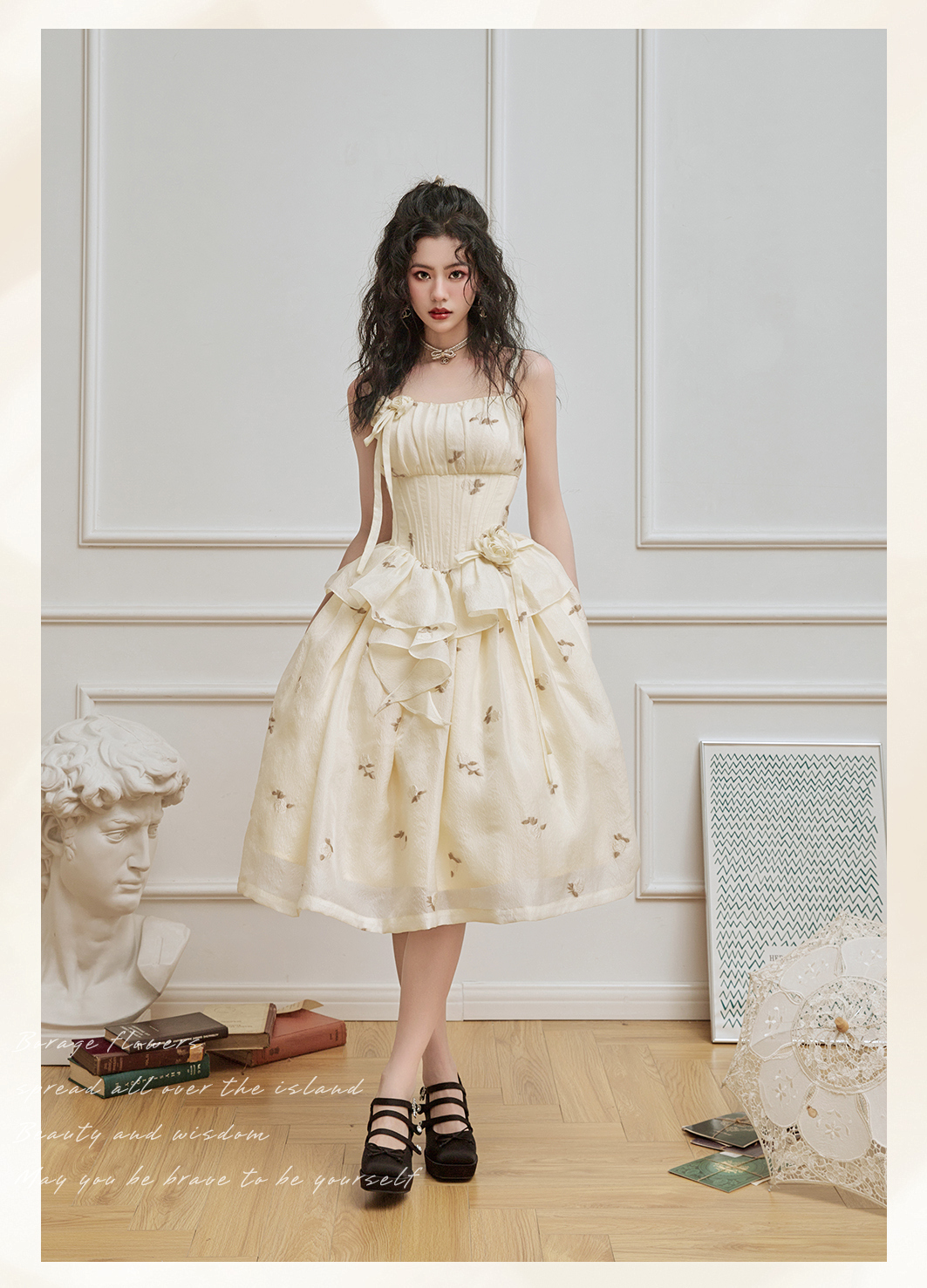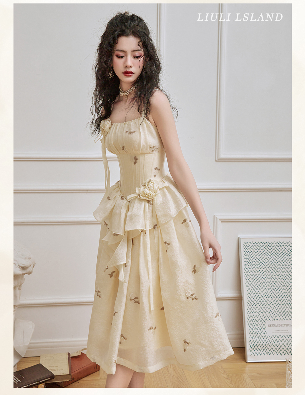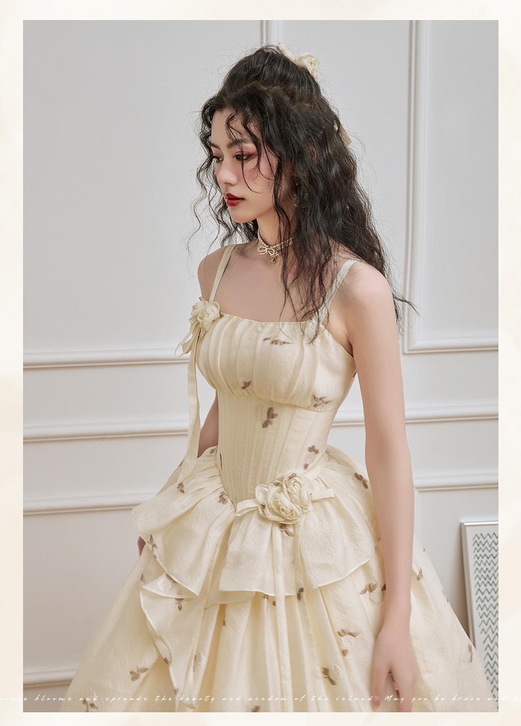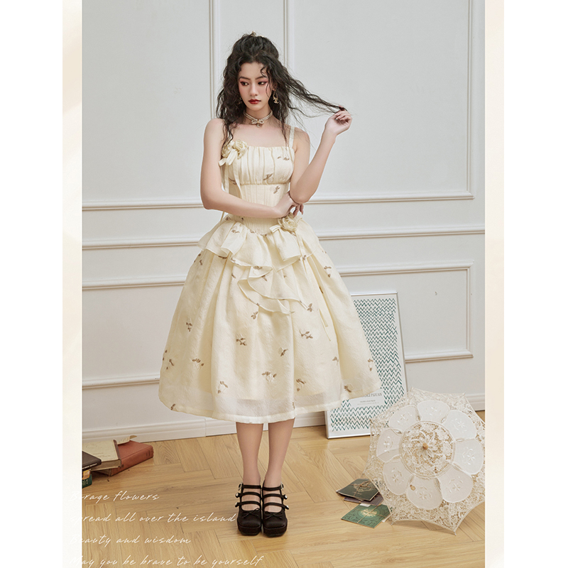 LIULI LSLAND琉璃島法式芭蕾穿搭高腰連身裙lolita裙少女風魚骨裙