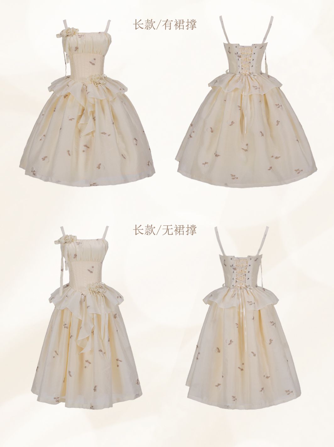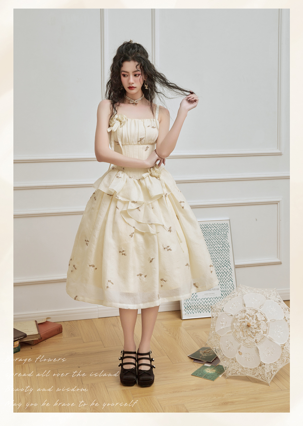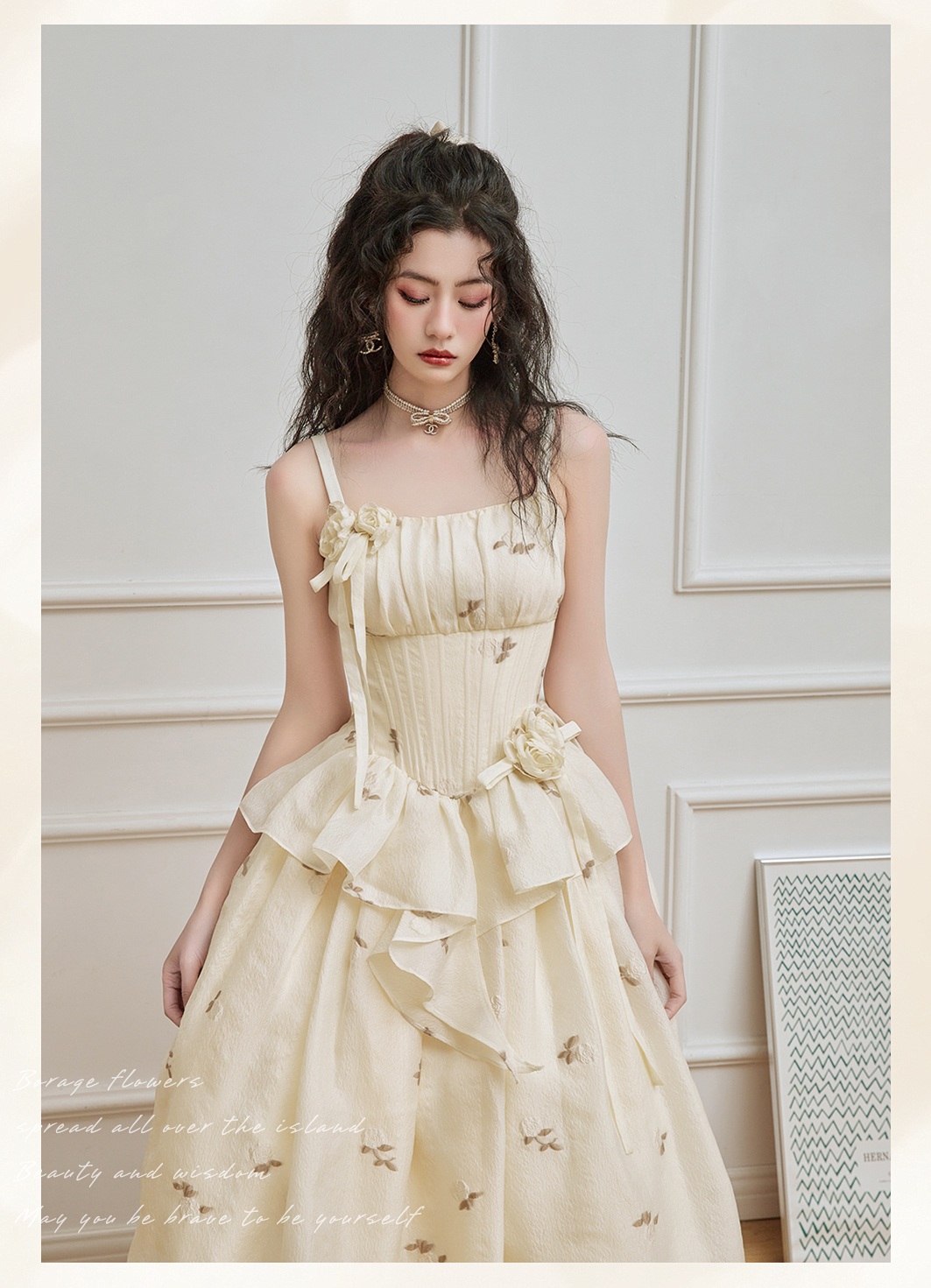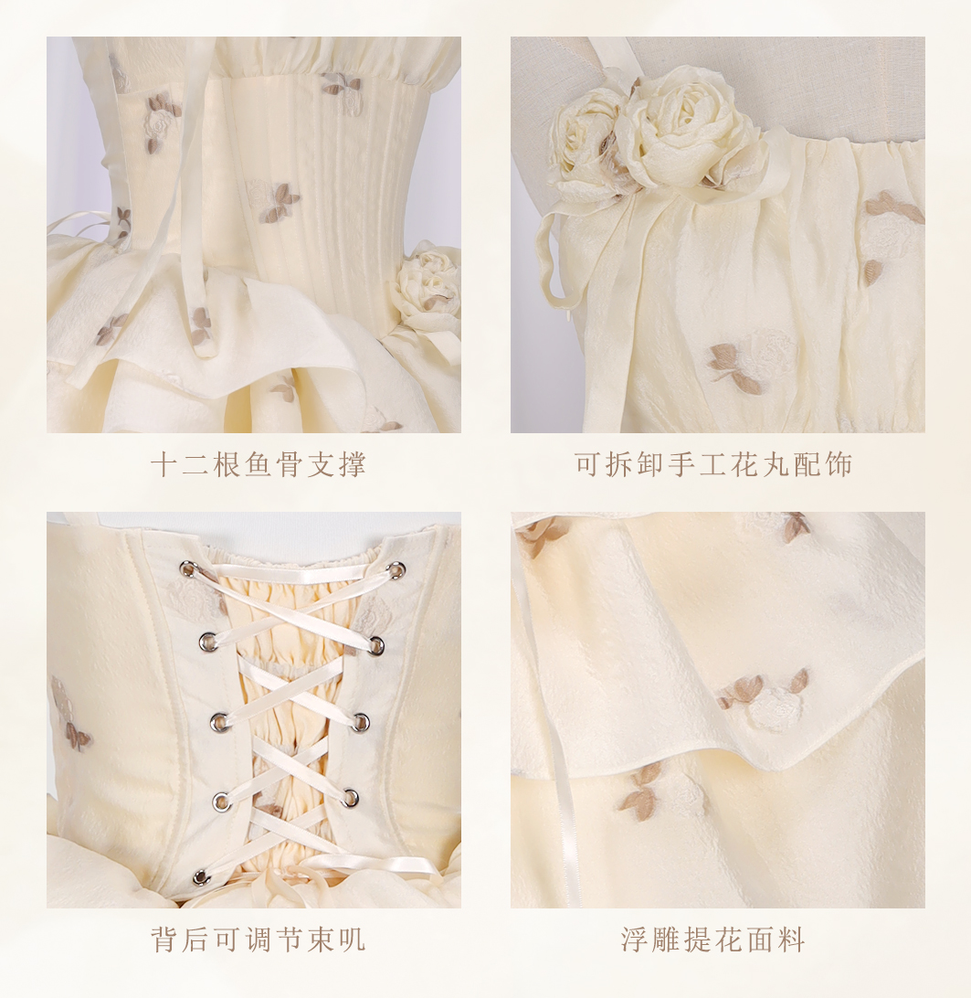 LIULI LSLAND琉璃島法式芭蕾穿搭高腰連身裙lolita裙少女風魚骨裙