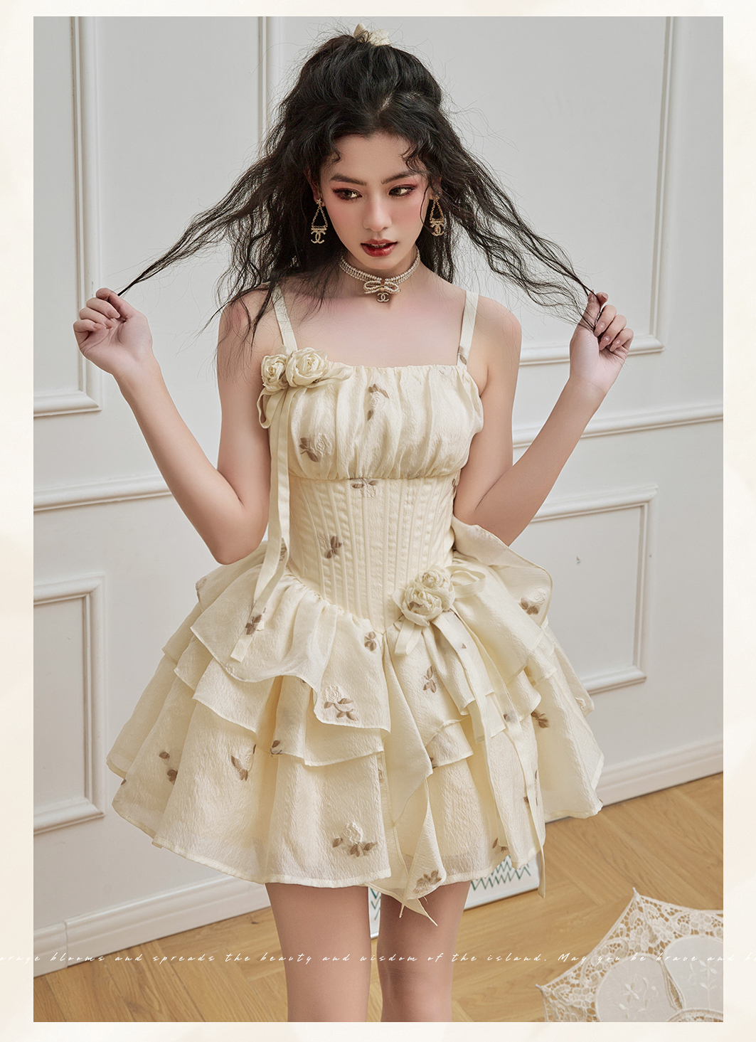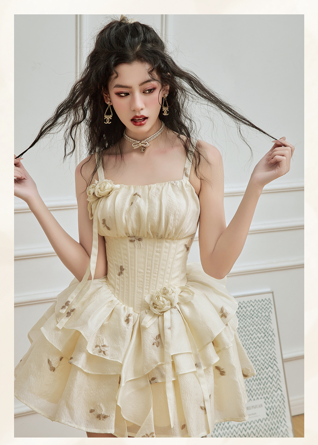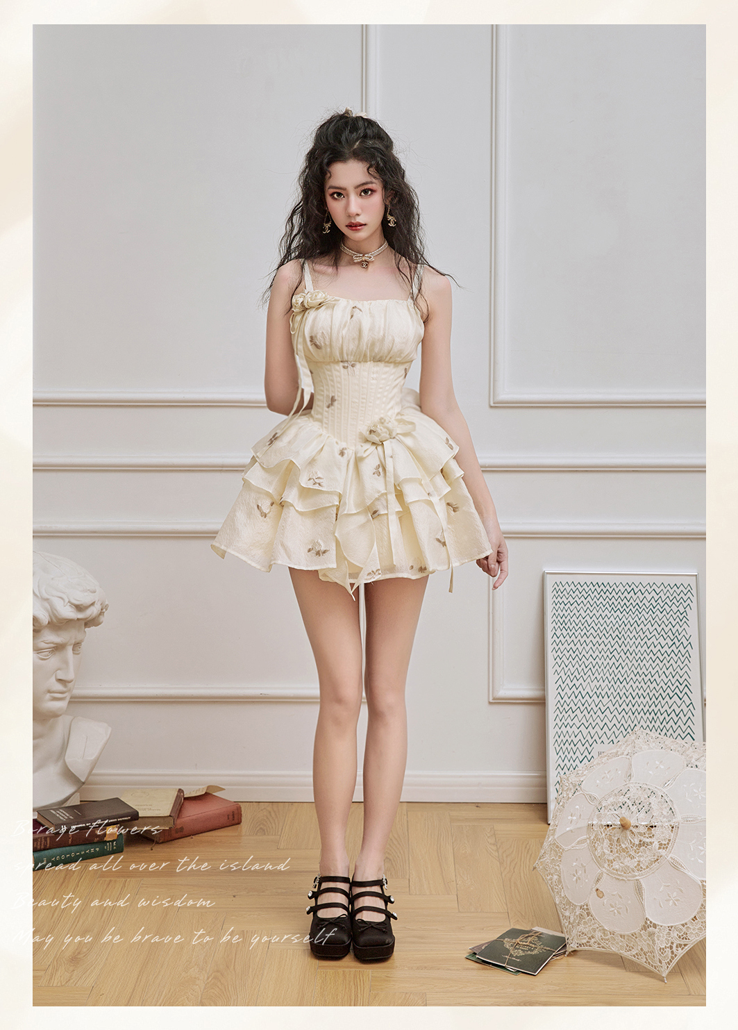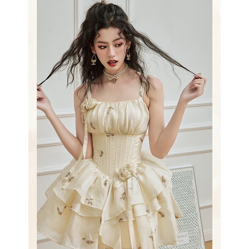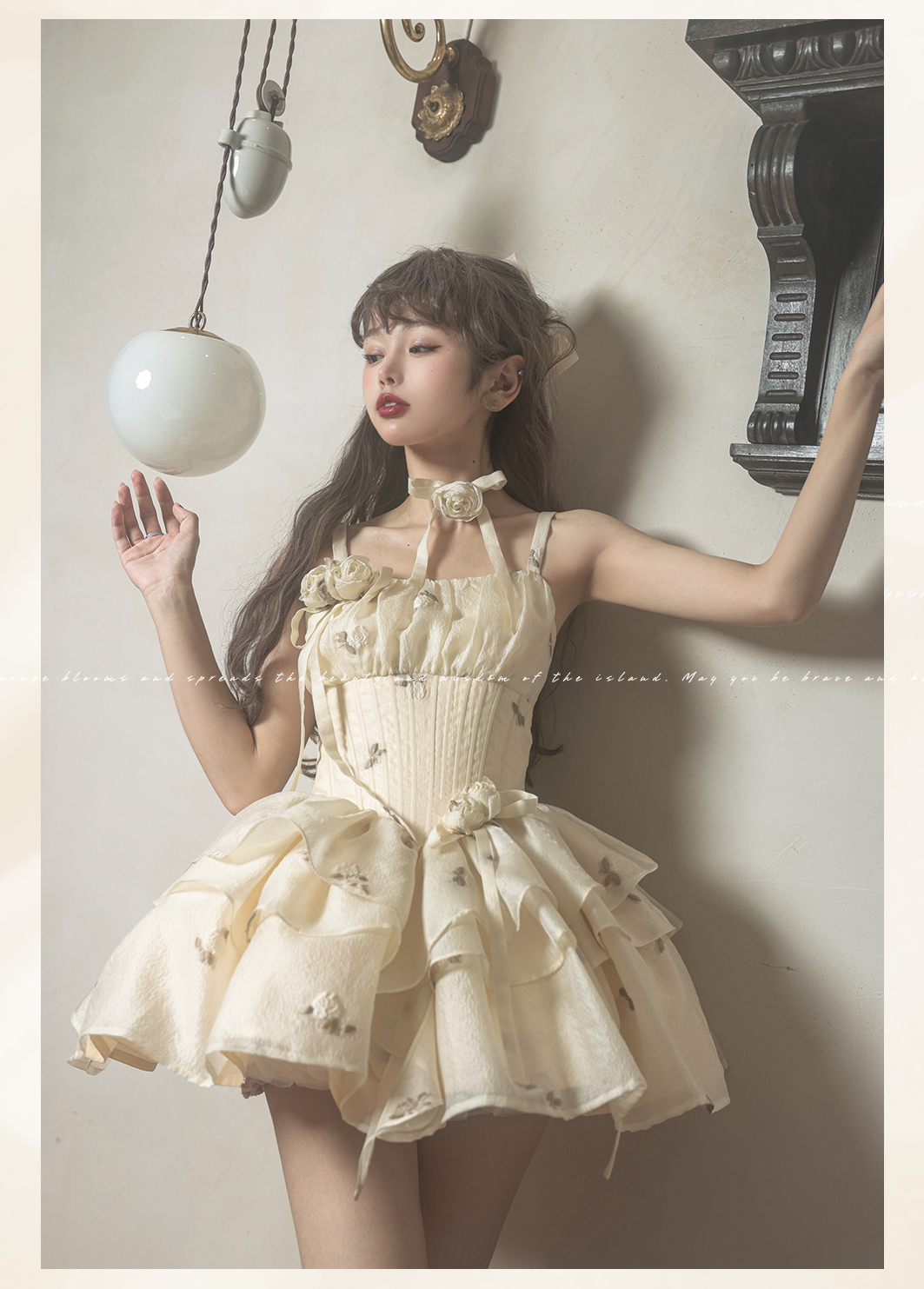 LIULI LSLAND琉璃島法式芭蕾穿搭高腰連身裙lolita裙少女風魚骨裙