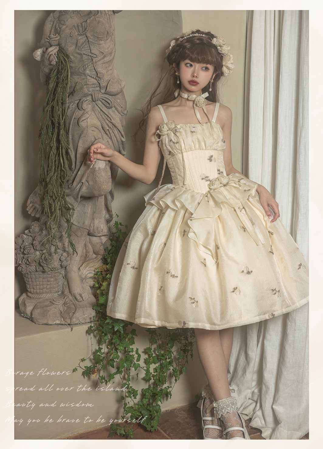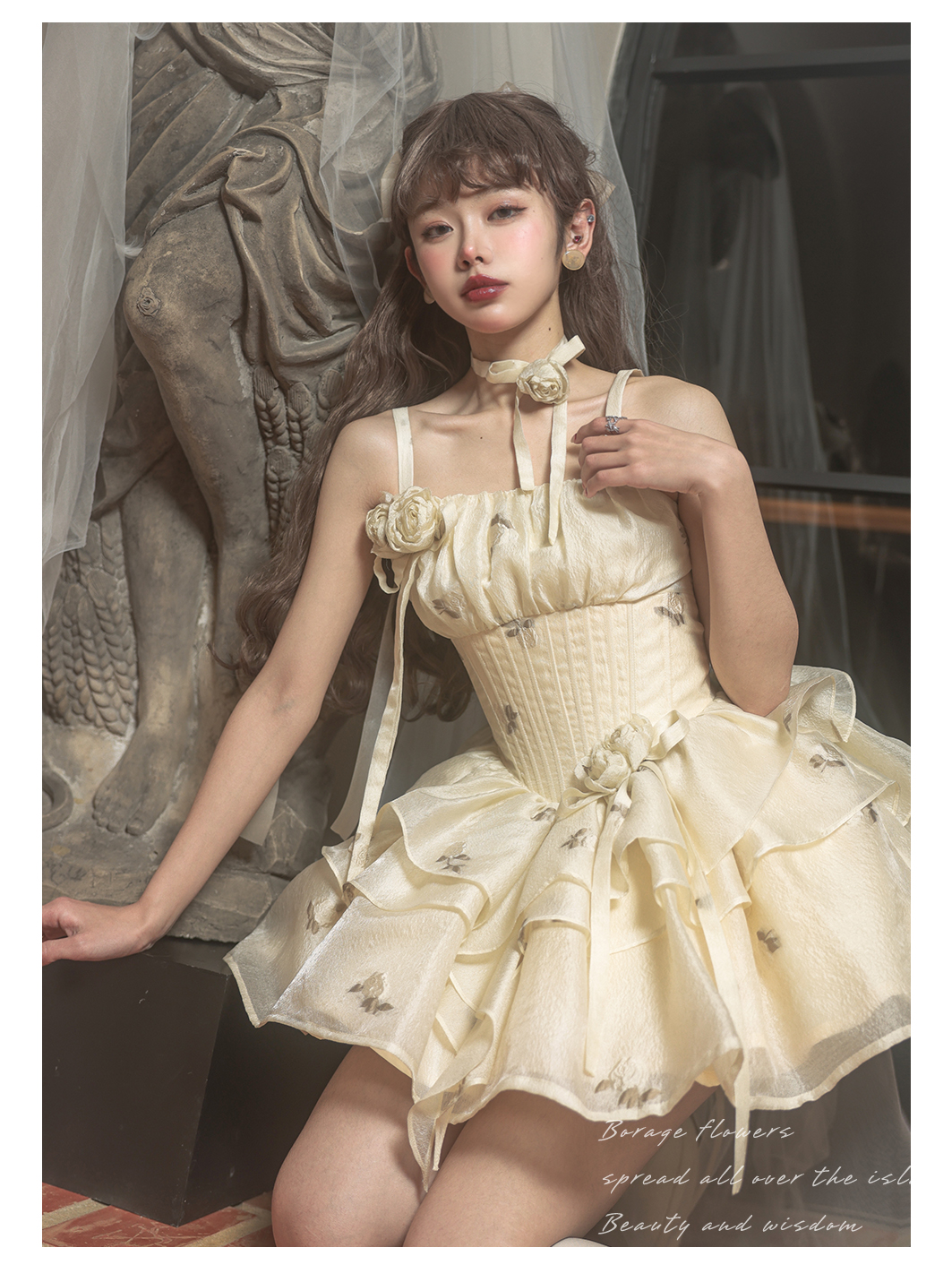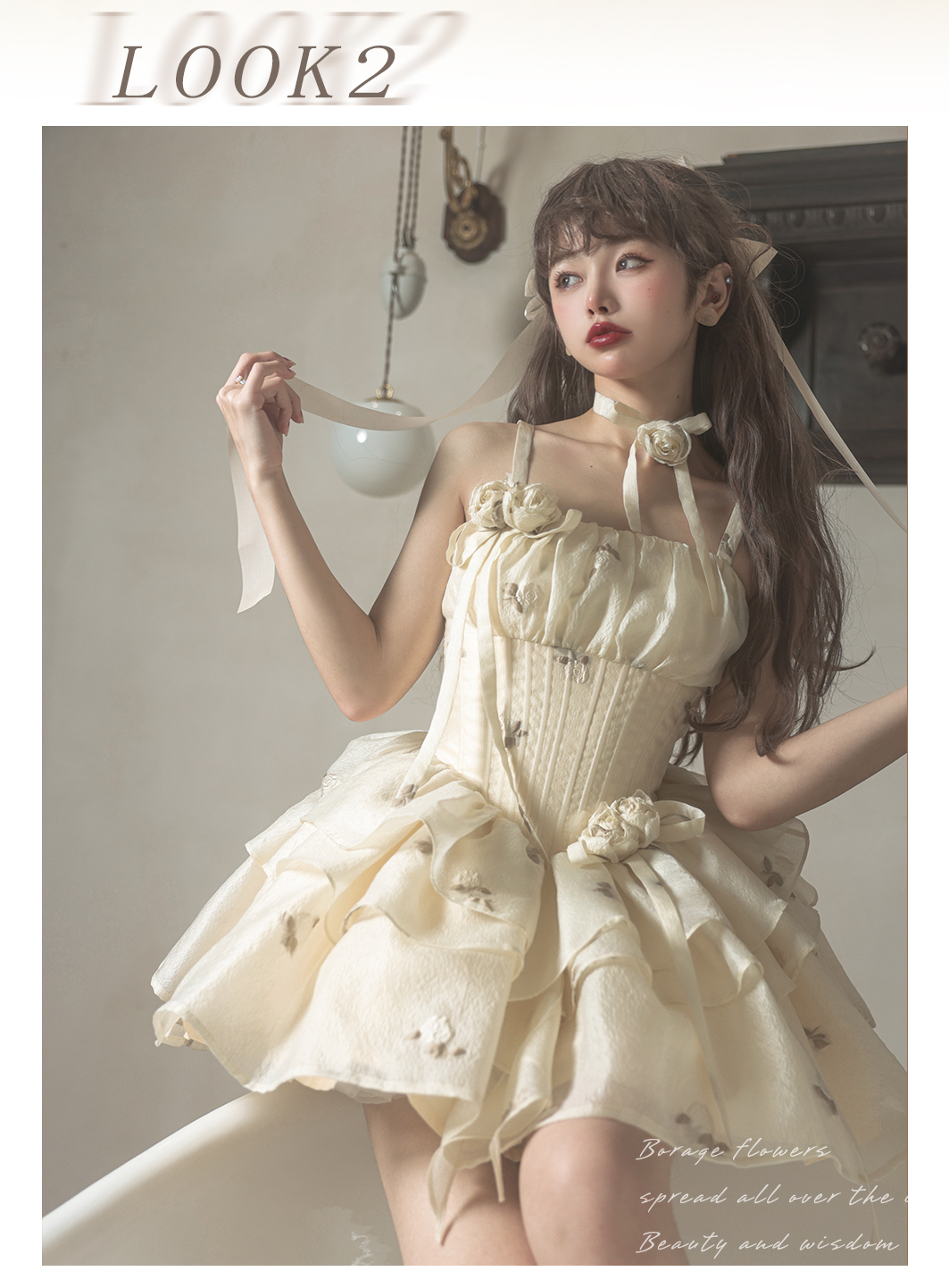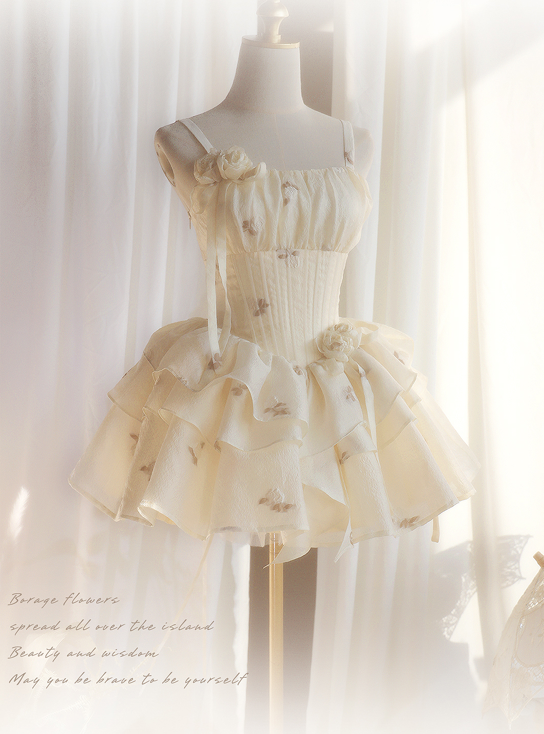 LIULI LSLAND琉璃島法式芭蕾穿搭高腰連身裙lolita裙少女風魚骨裙