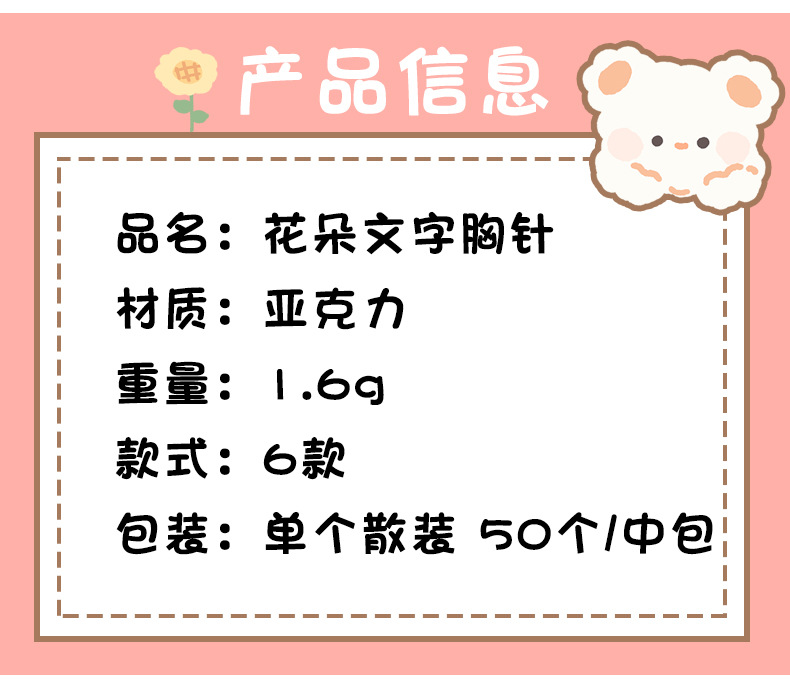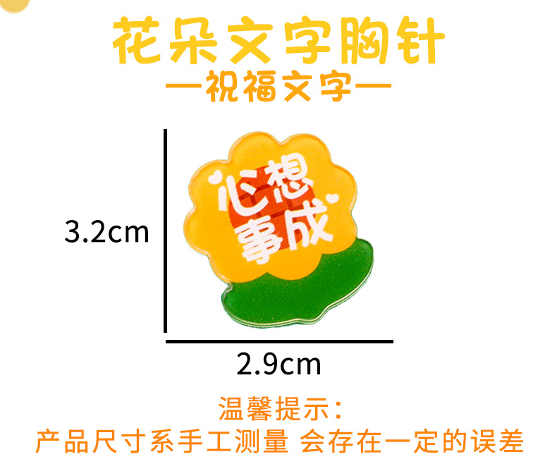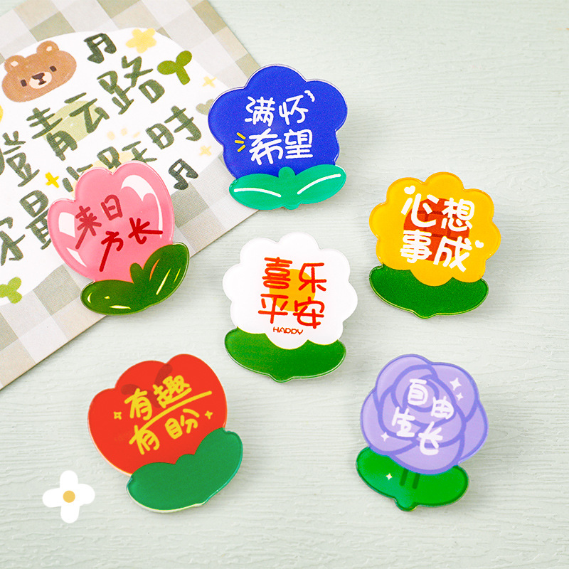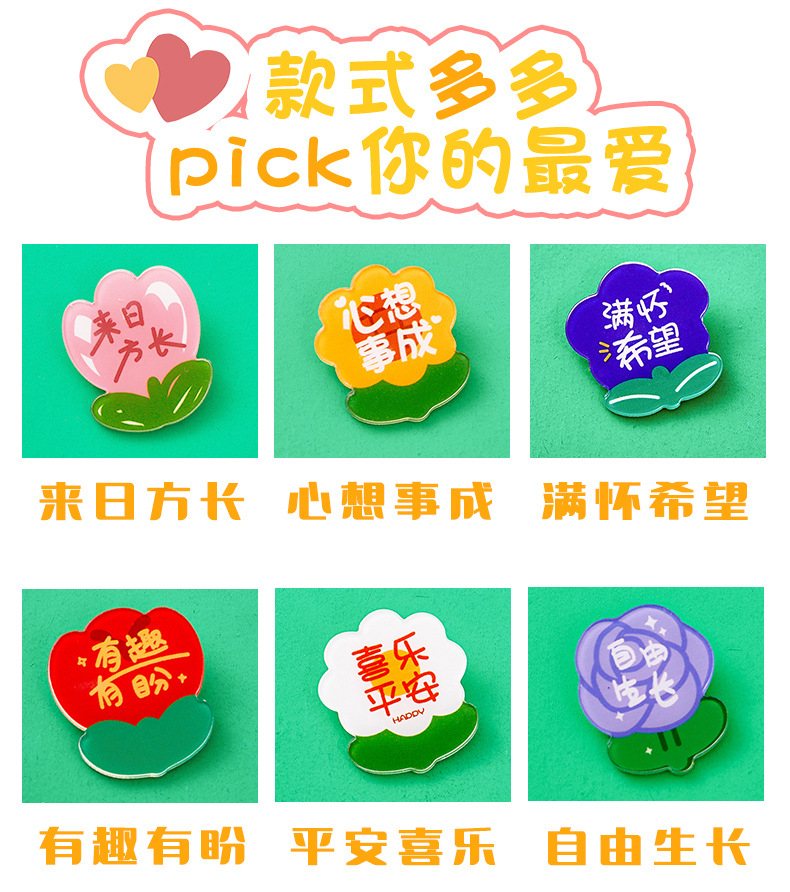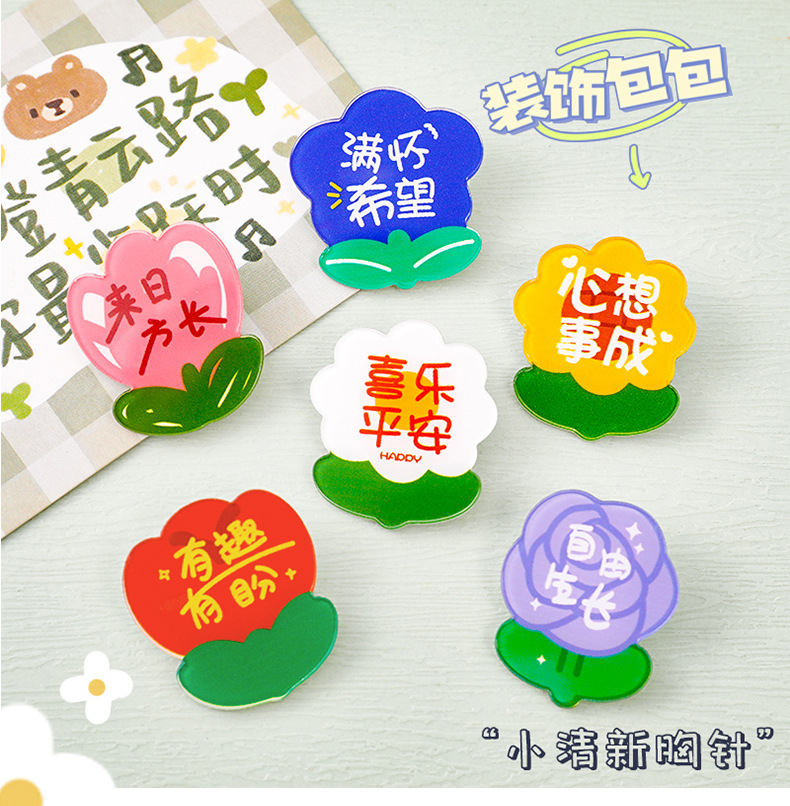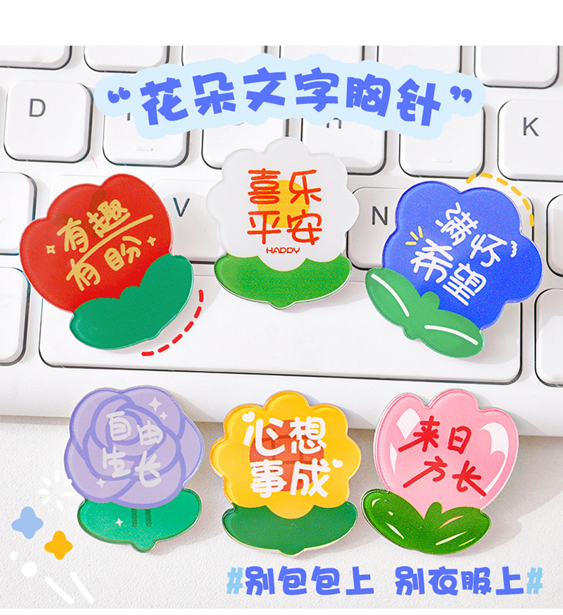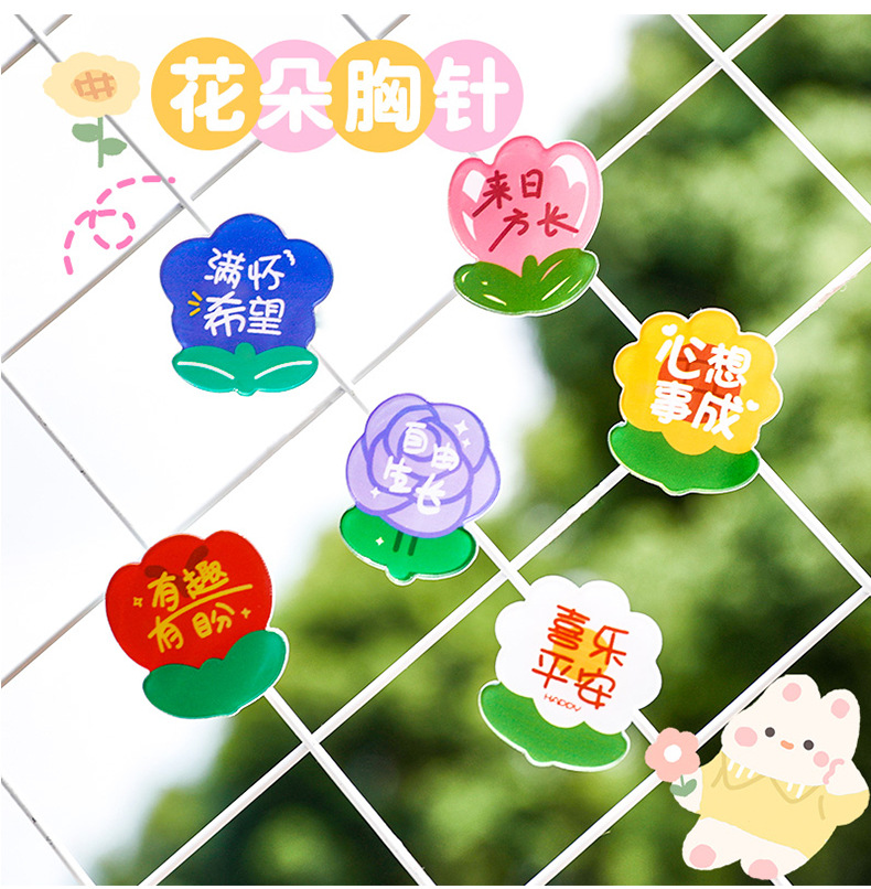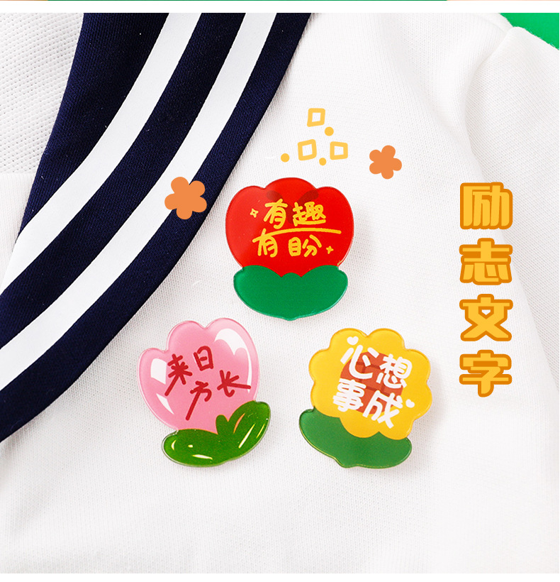 卡通异型花朵胸针儿童励志文字配饰别针小学生奖品礼物亚克力徽章