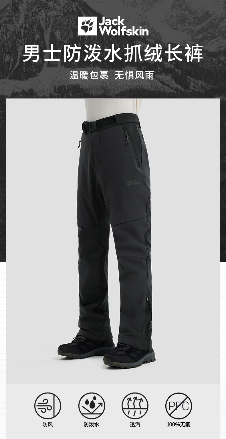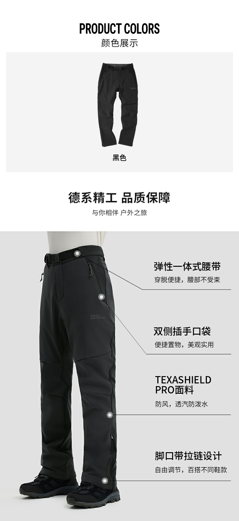 JackWolfskin德國狼爪新款戶外男士防風防潑水厚款長褲
