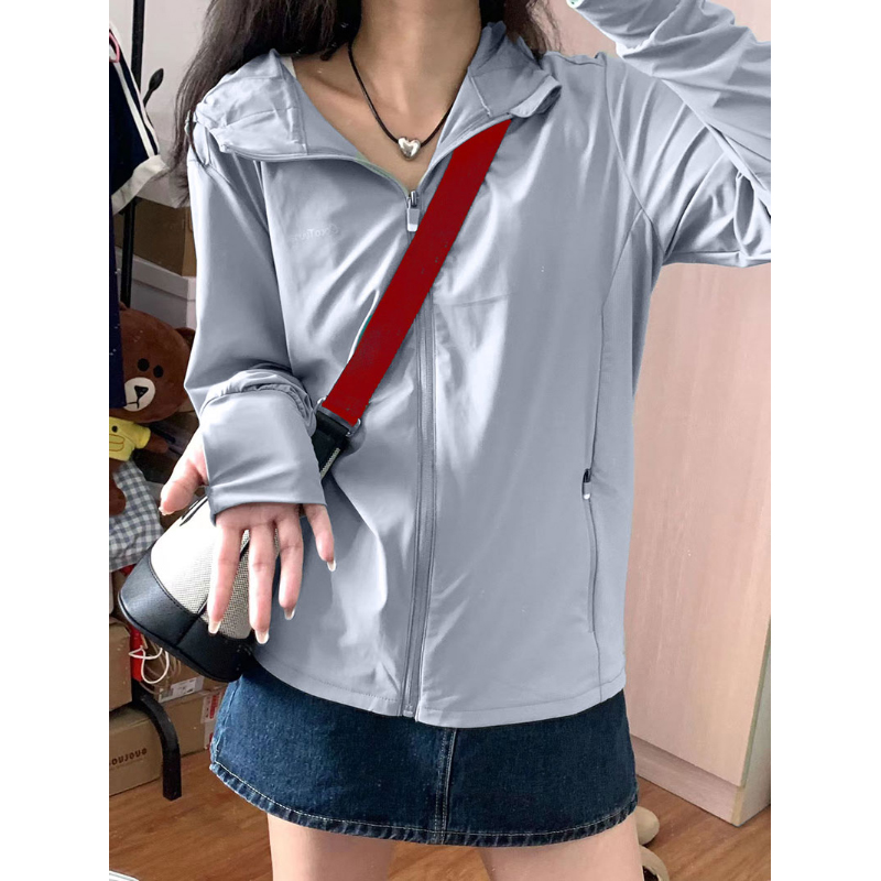 無帽簷工裝戶外冰袖防曬衣女薄款夏季2023新款小個子冰絲速乾外套