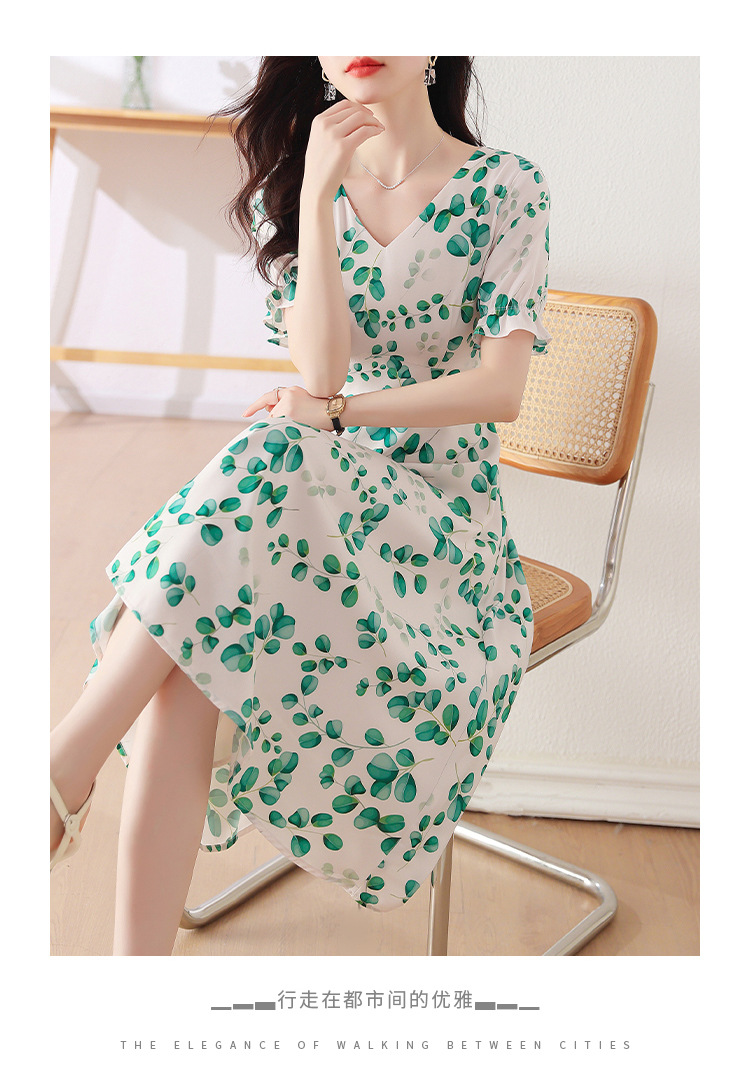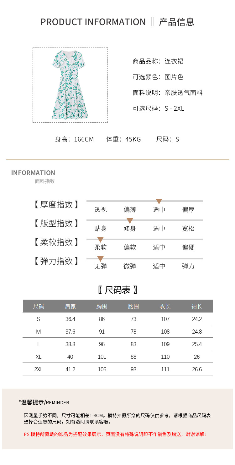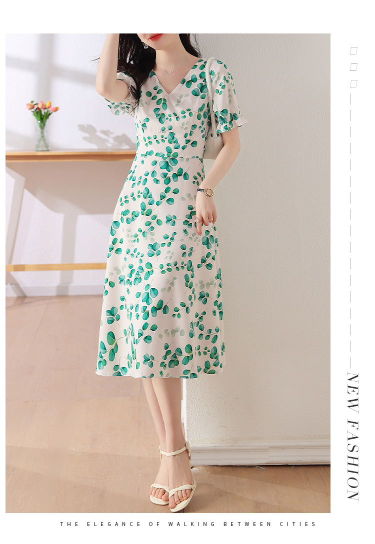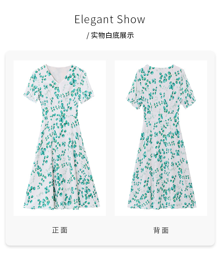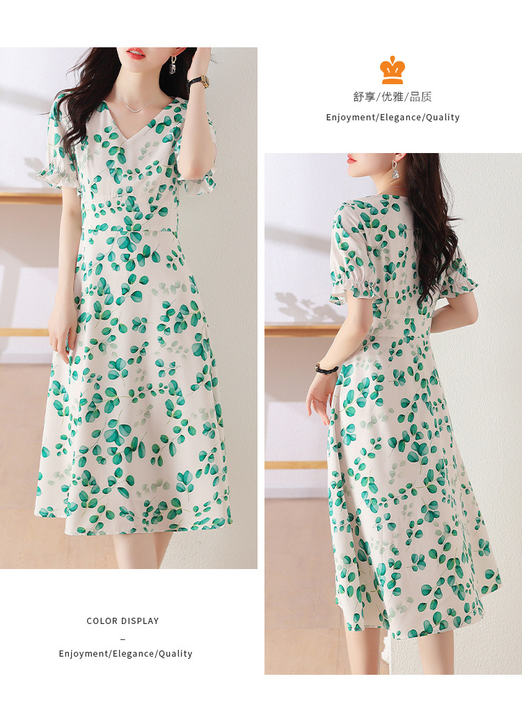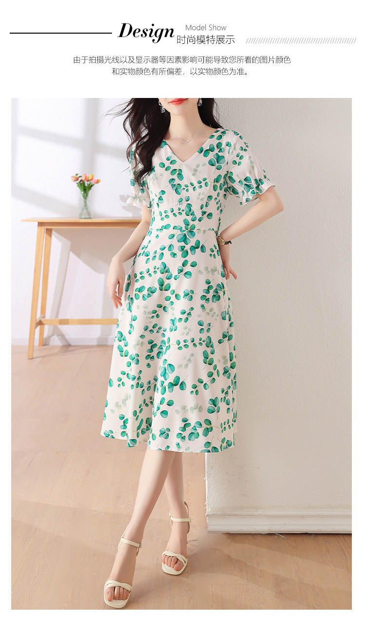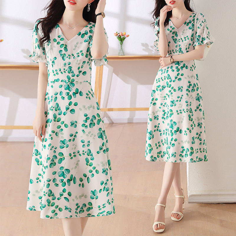 泡泡袖碎花连衣裙女夏装2023年新款夏季高级感短袖中长款v领裙子