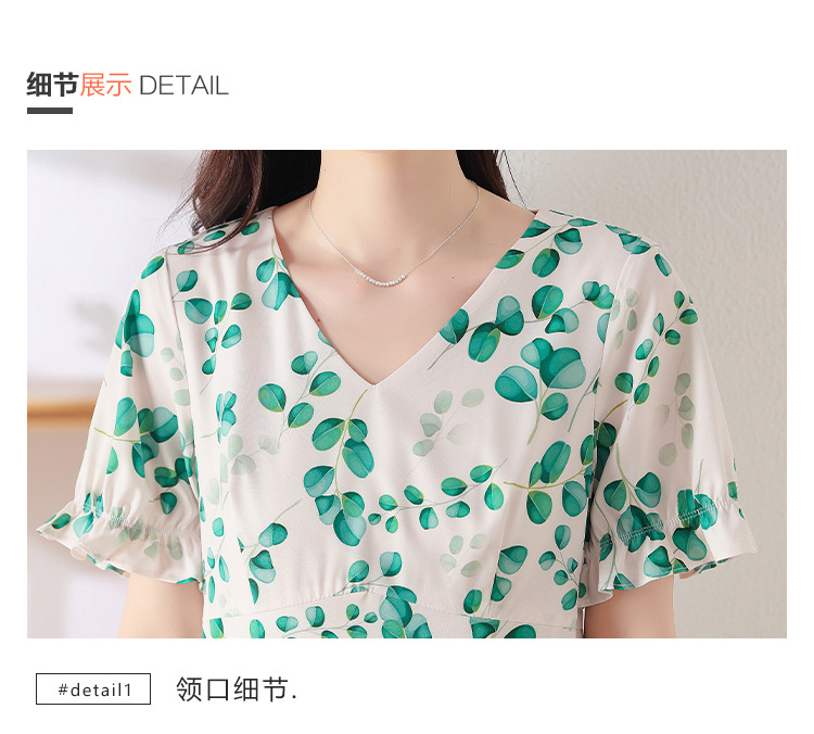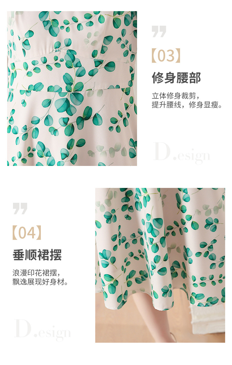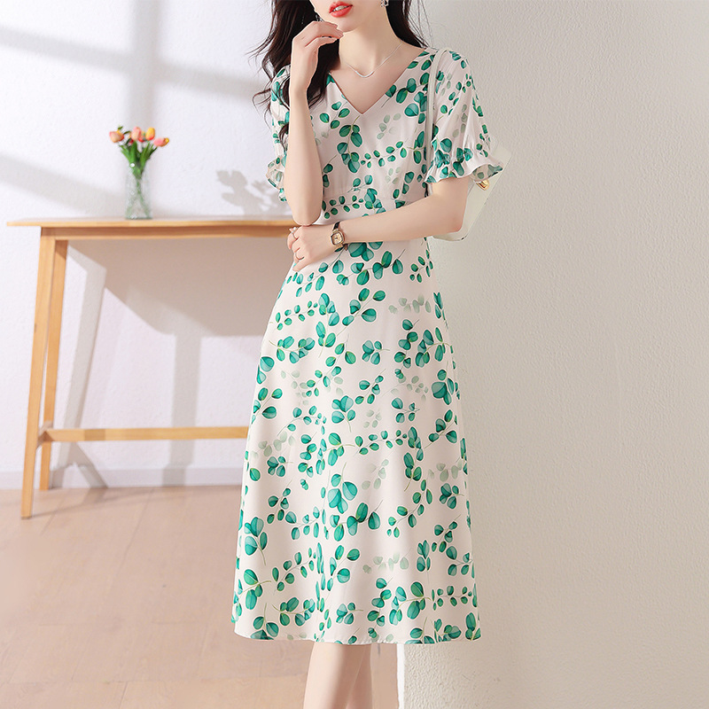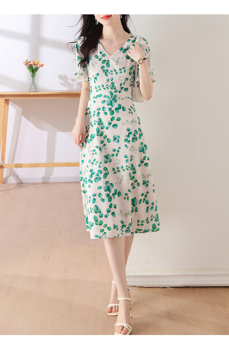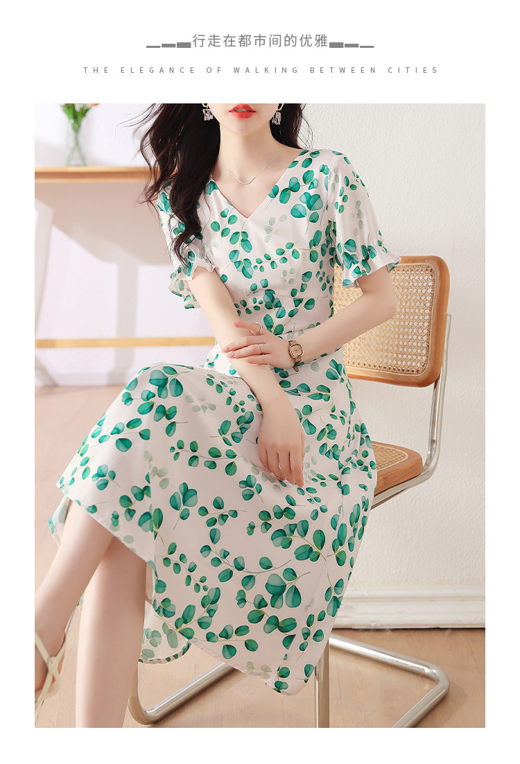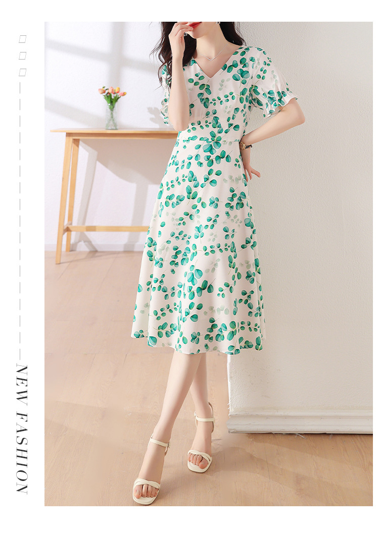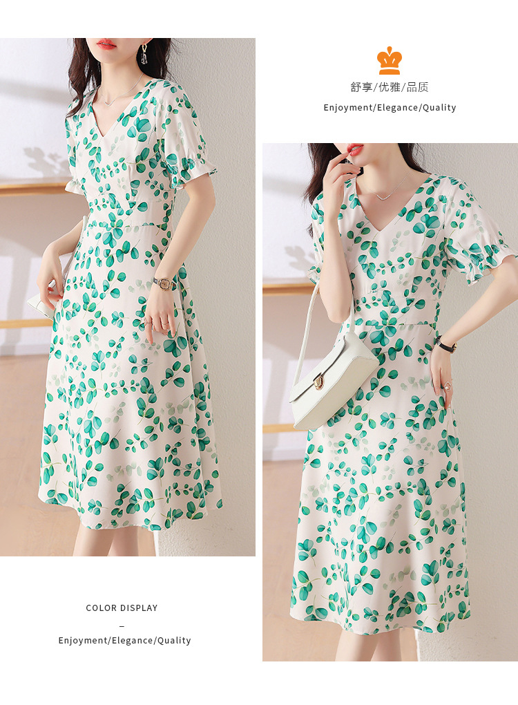 泡泡袖碎花连衣裙女夏装2023年新款夏季高级感短袖中长款v领裙子