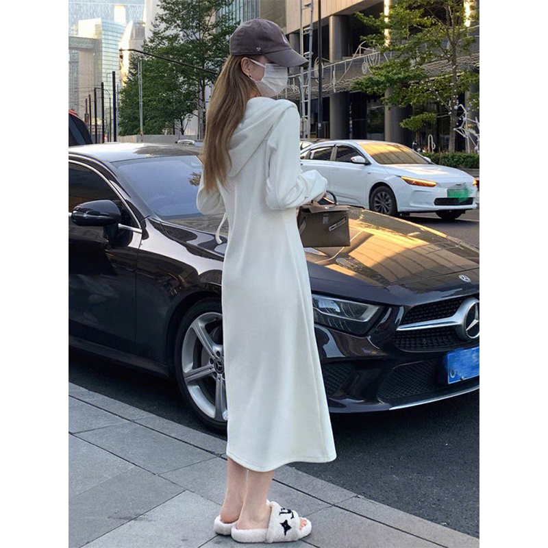 法式氣質衛衣洋裝子早秋季2023新款女裝長裙配大衣內搭內搭長裙