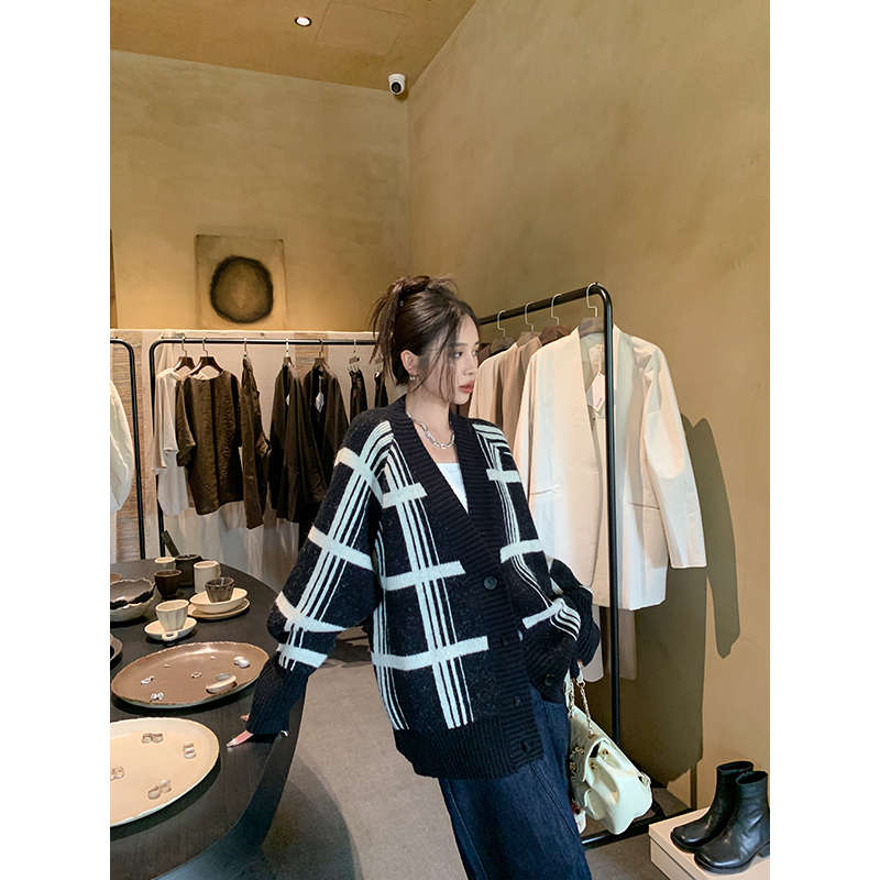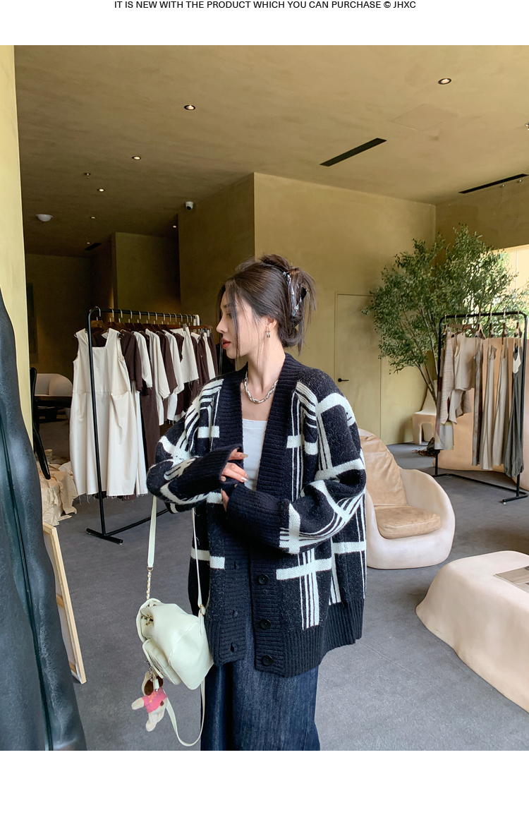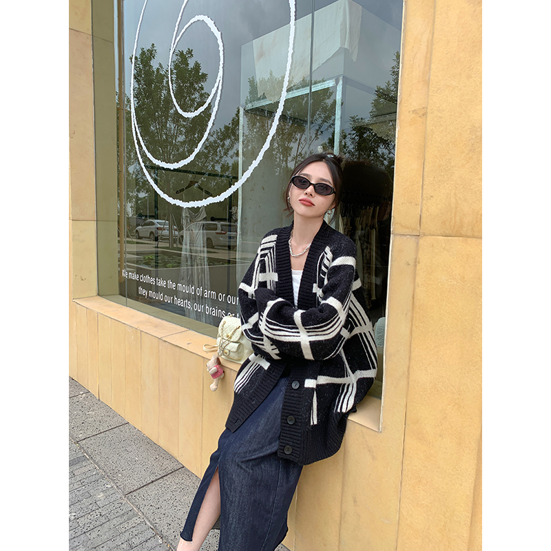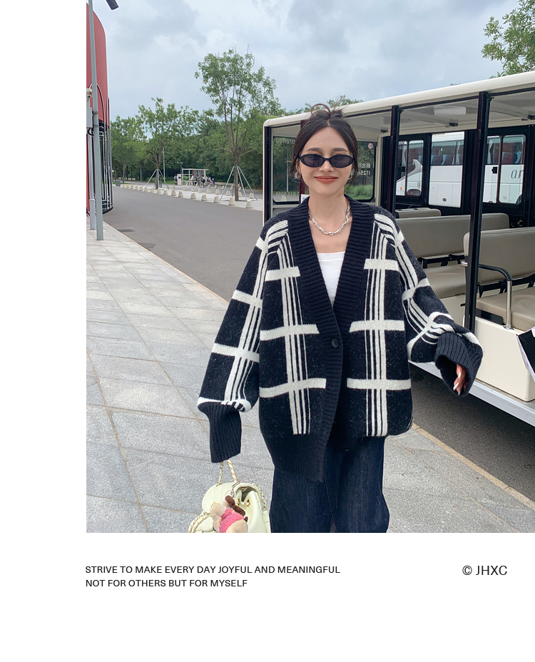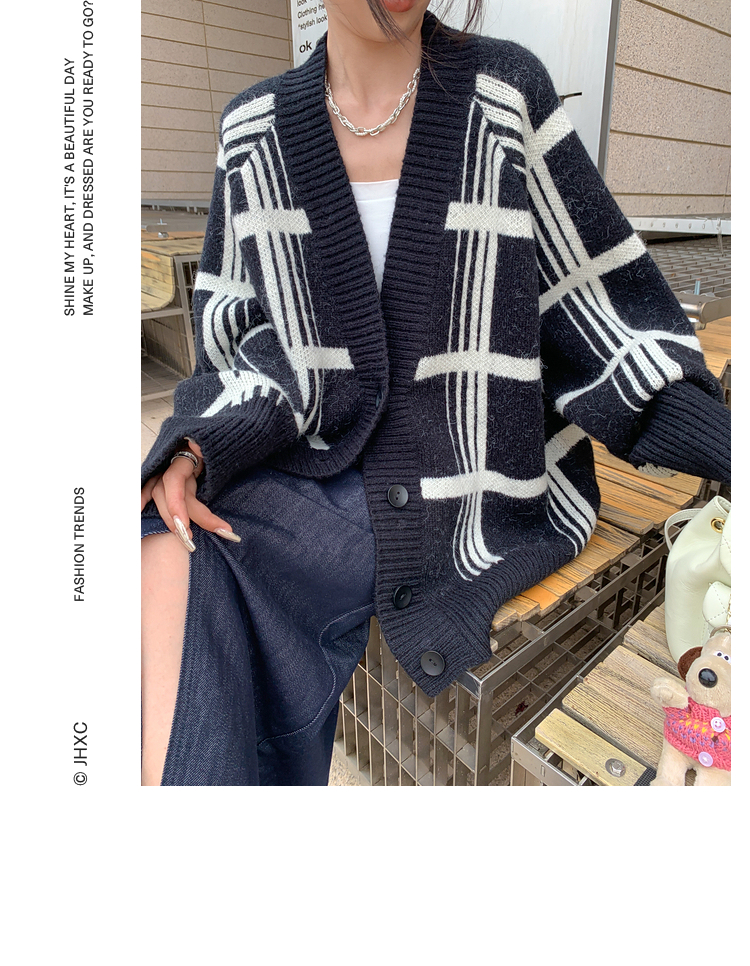 JHXC 今年流行毛衣開衫外套女2023秋季新款慵懶風寬鬆V領針織上衣