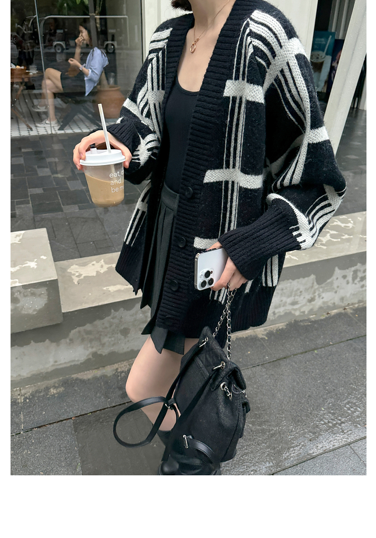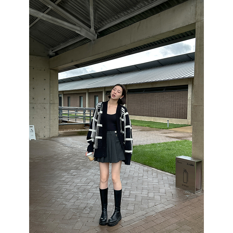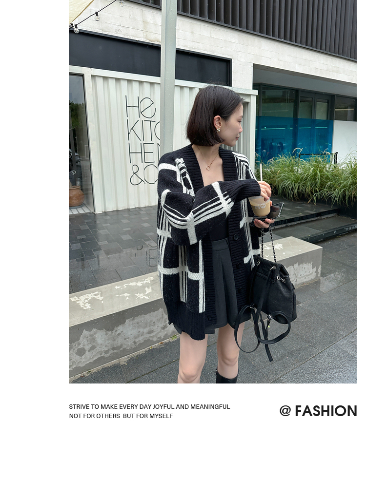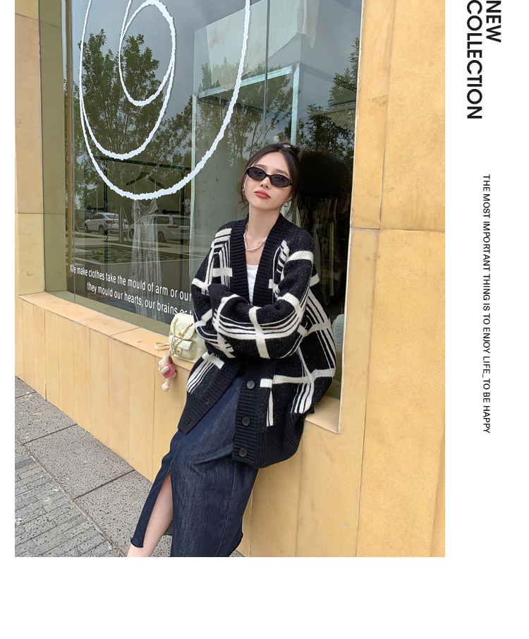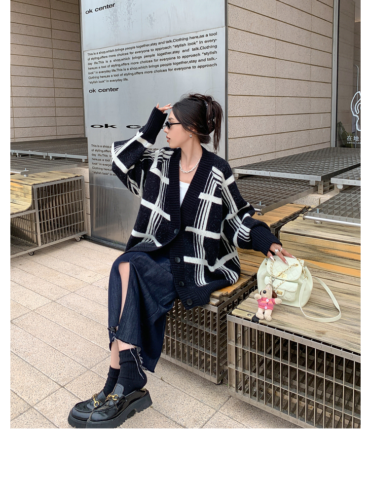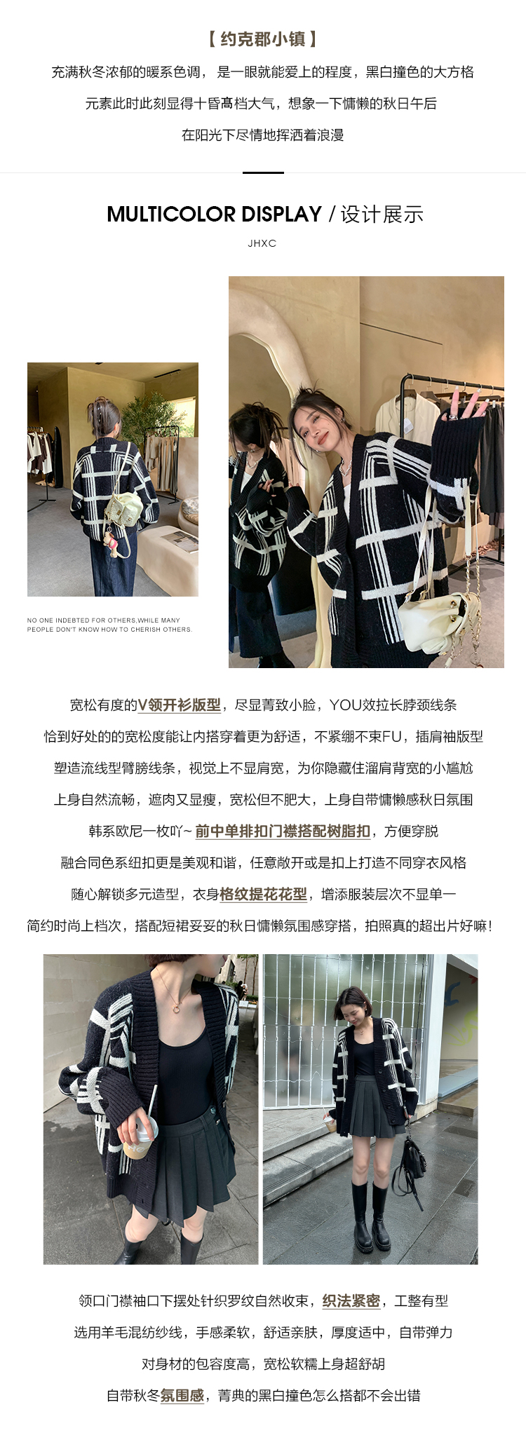 JHXC 今年流行毛衣開衫外套女2023秋季新款慵懶風寬鬆V領針織上衣