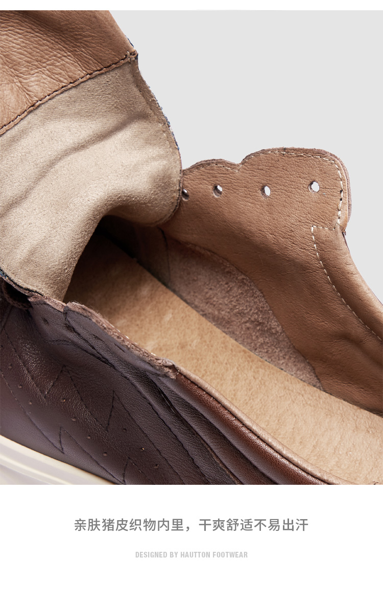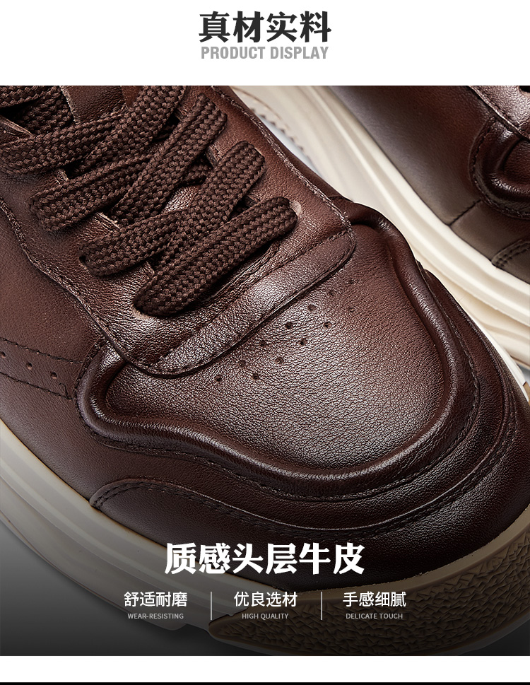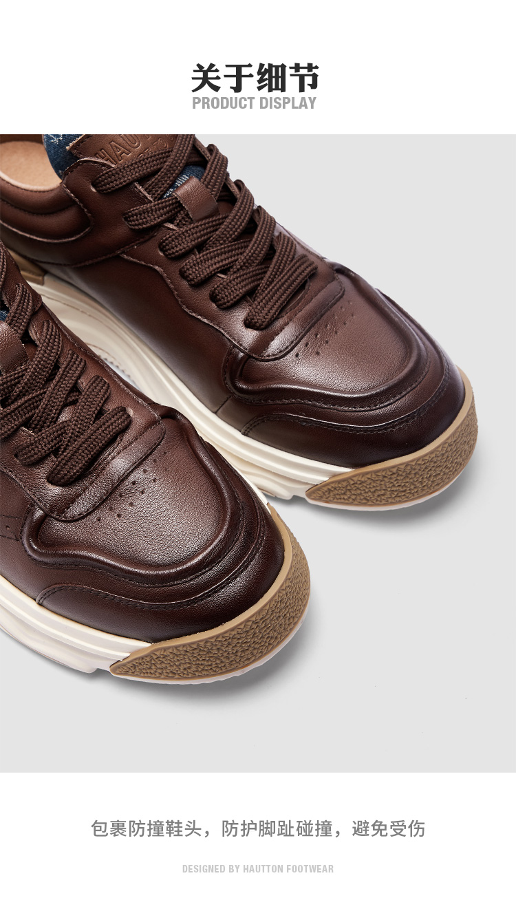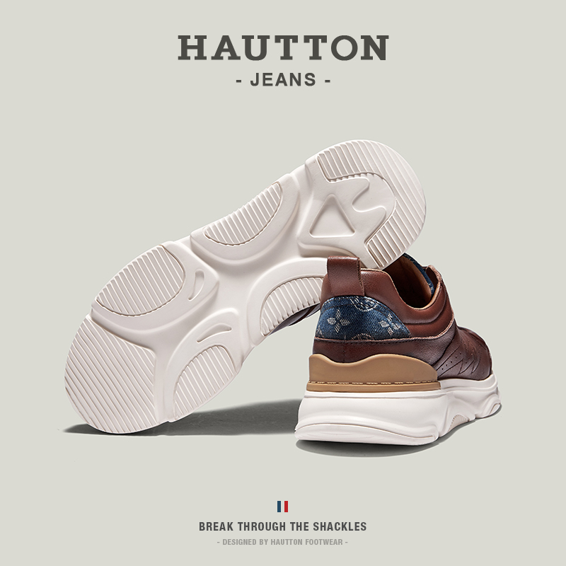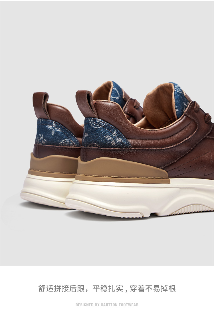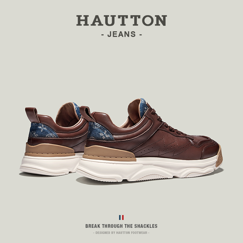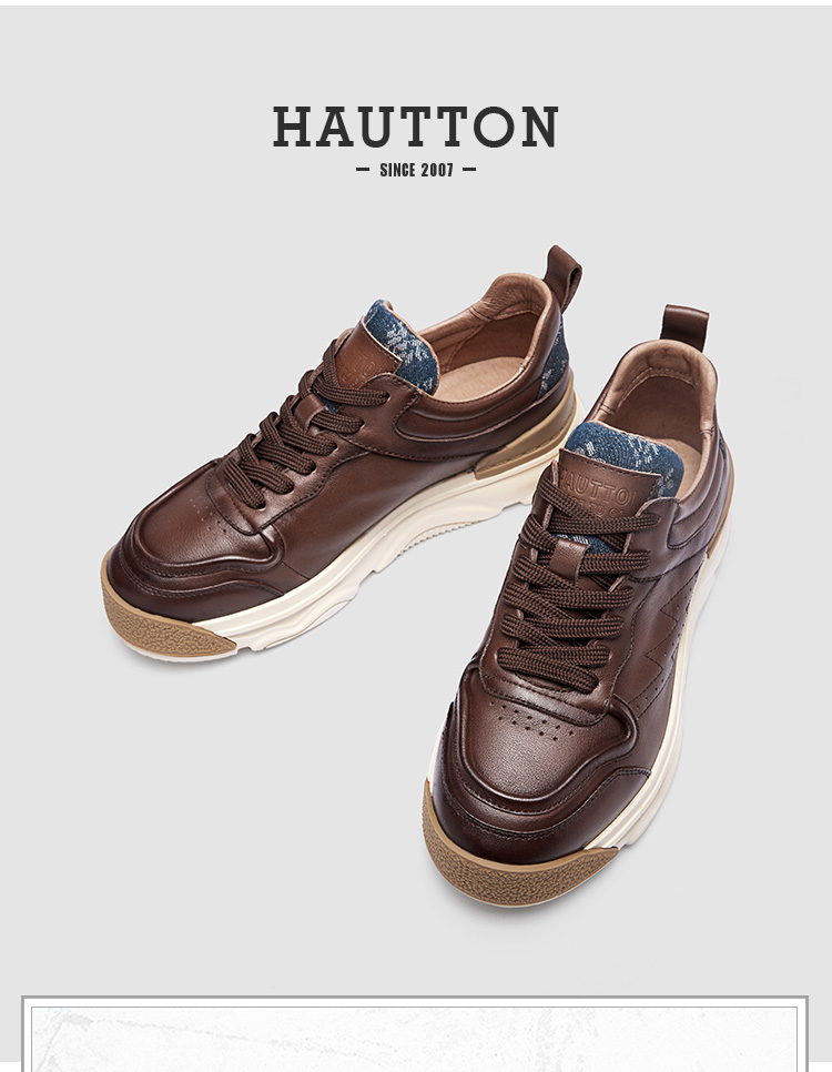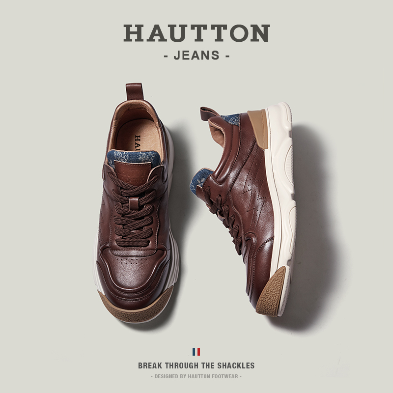 HauttonJeans男鞋夏季新款透氣潮流真皮運動板鞋男士薄款休閒皮鞋