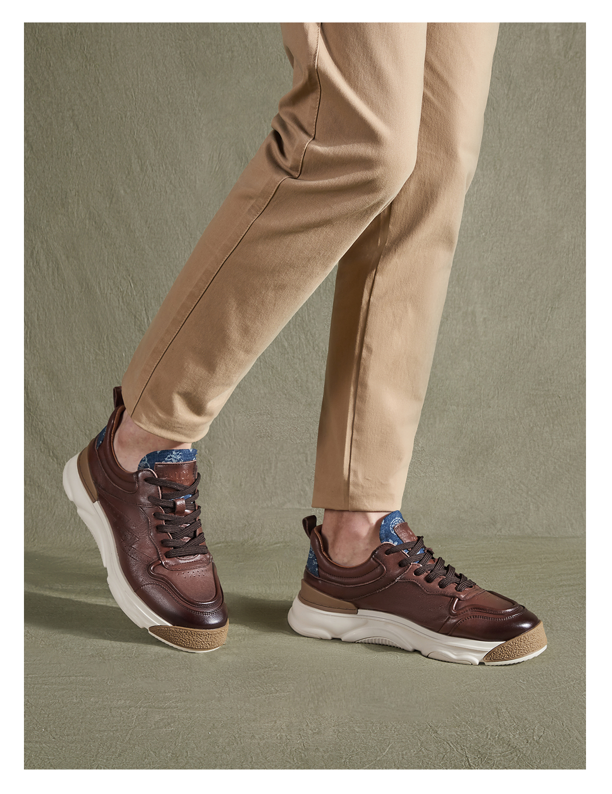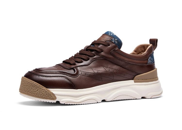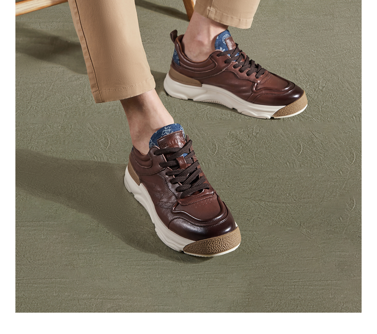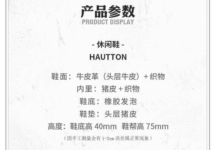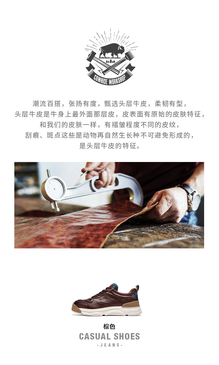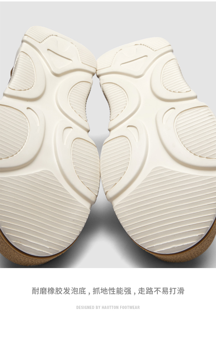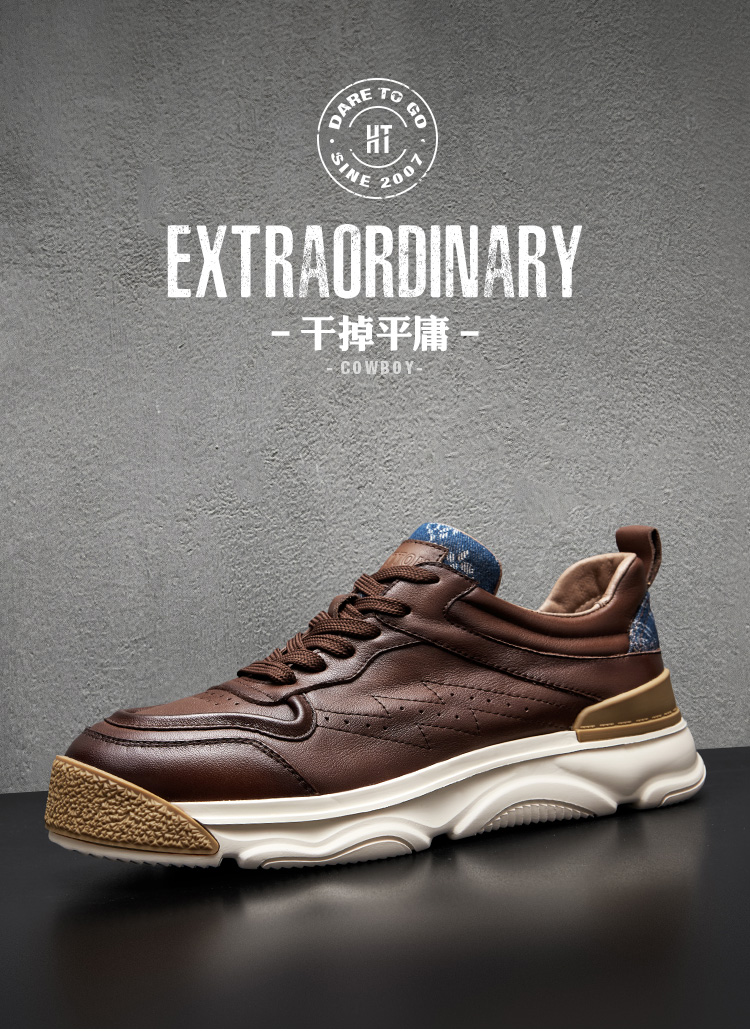 HauttonJeans男鞋夏季新款透氣潮流真皮運動板鞋男士薄款休閒皮鞋