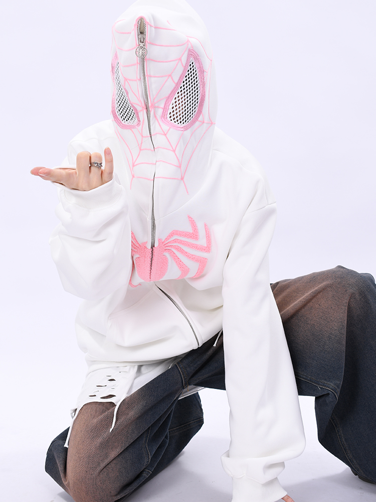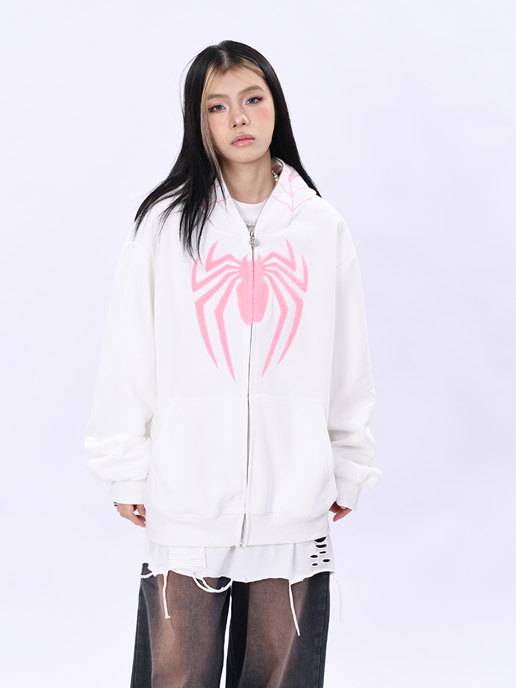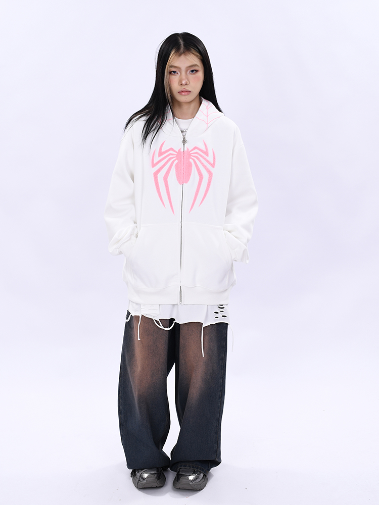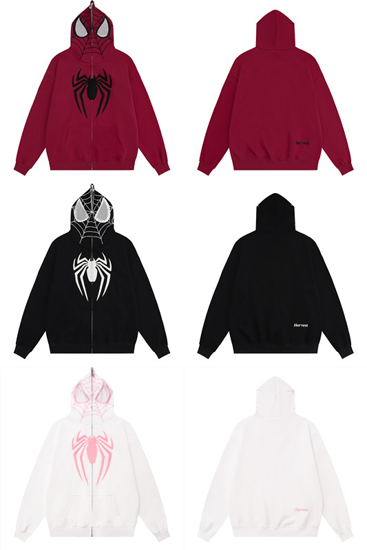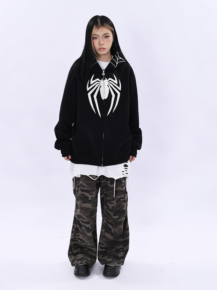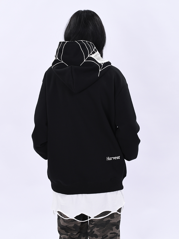 OV原創秋季高街復古蜘蛛人設計感連帽運動衫男女bf小眾寬鬆開衫外套