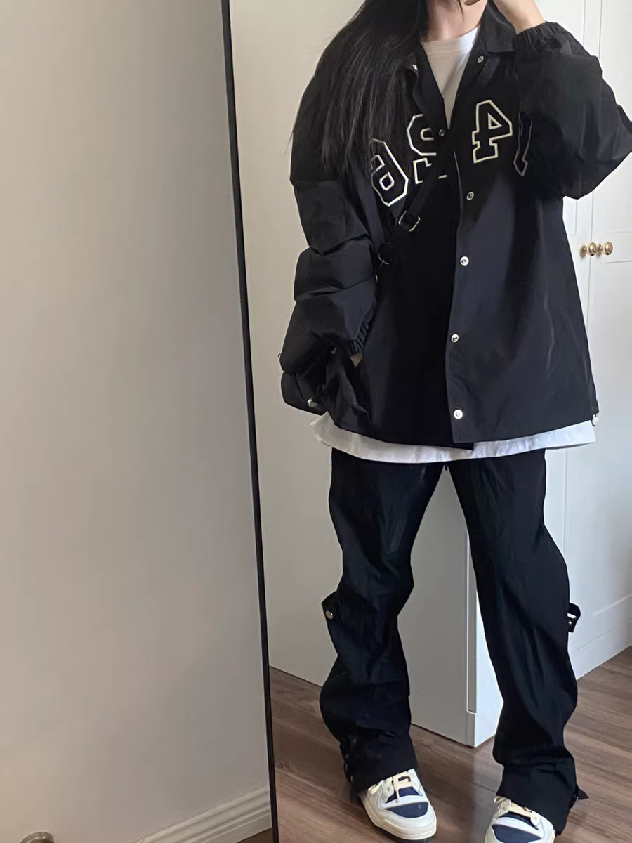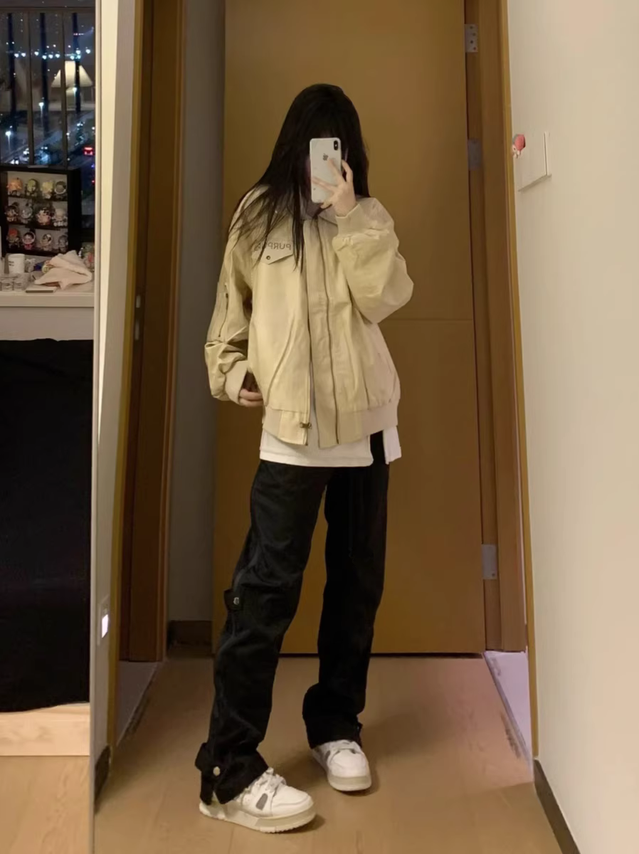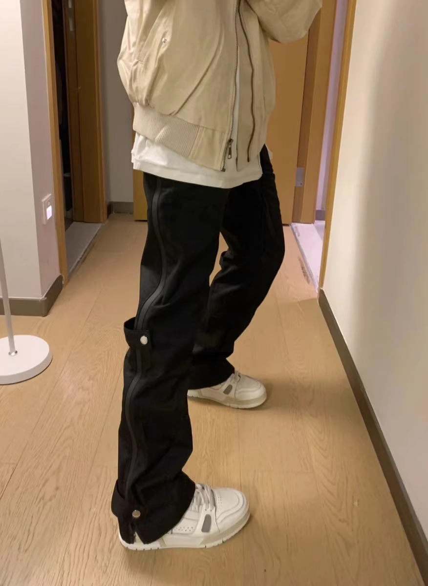 美式復古vibe機能風休閒工作服男女小眾直筒拉鍊衝鋒褲子ins高街潮
