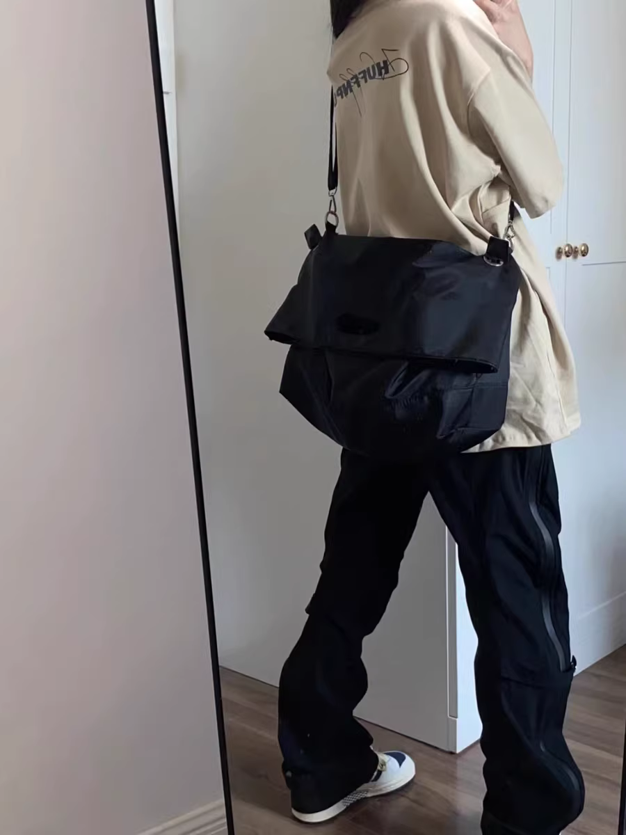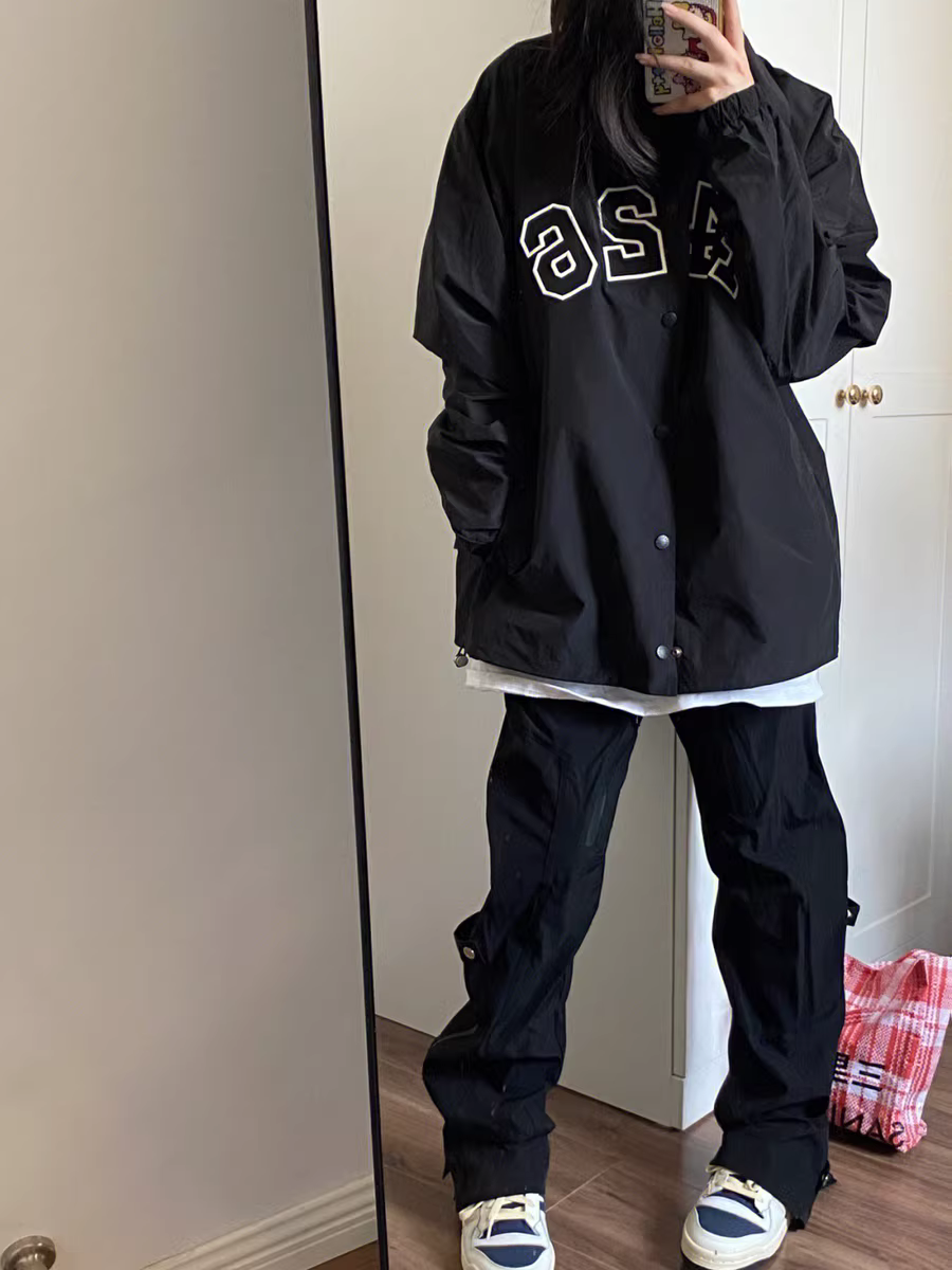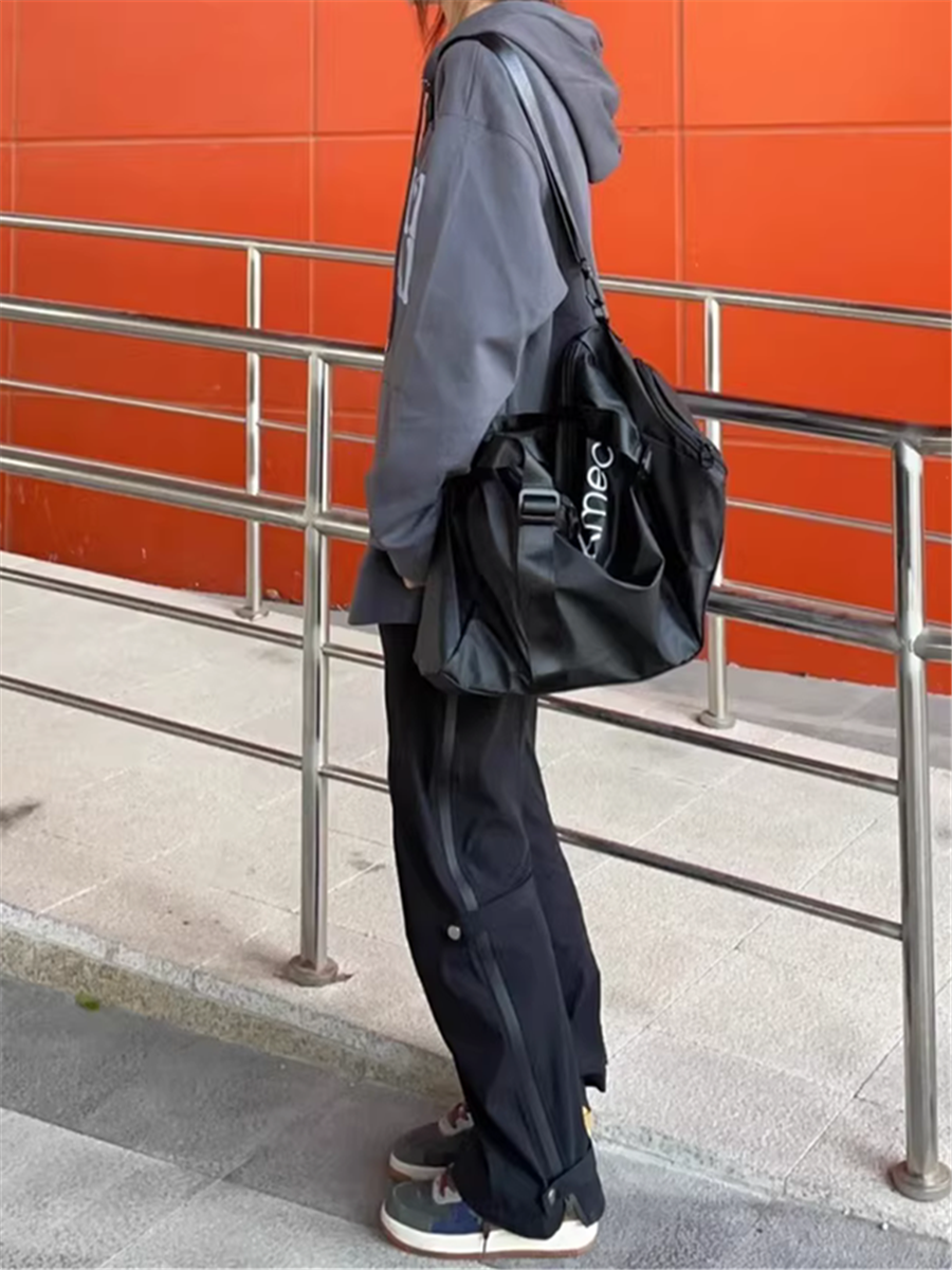 美式復古vibe機能風休閒工作服男女小眾直筒拉鍊衝鋒褲子ins高街潮