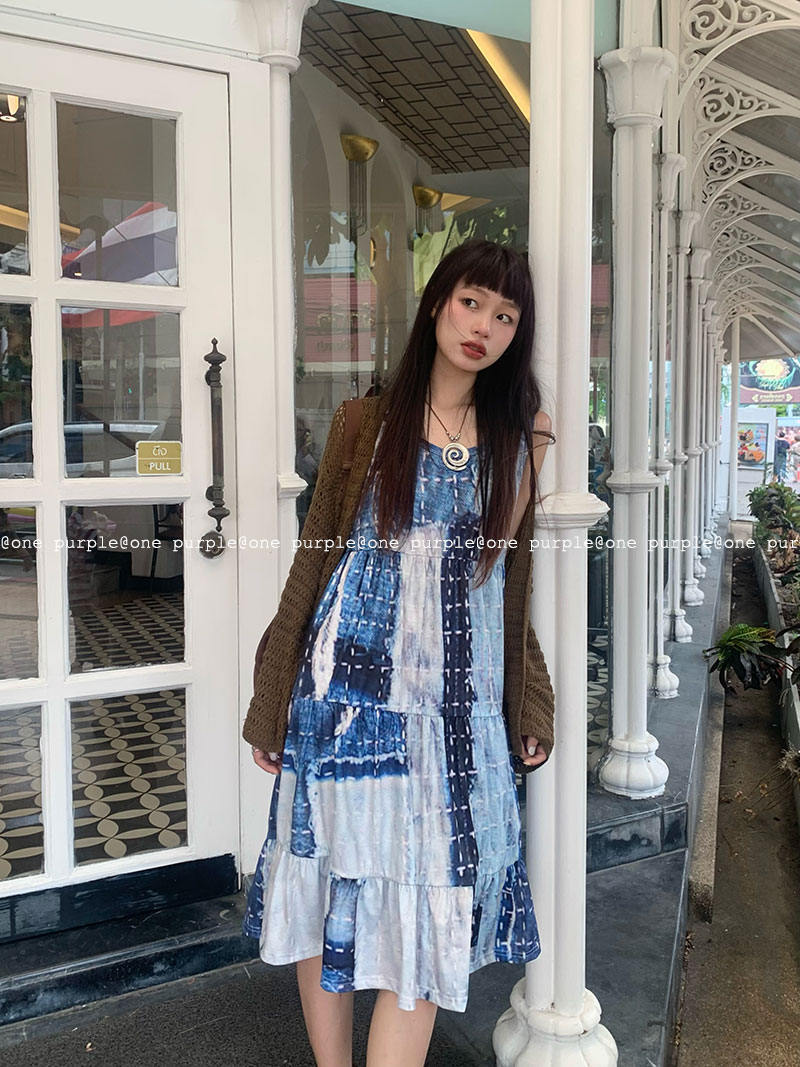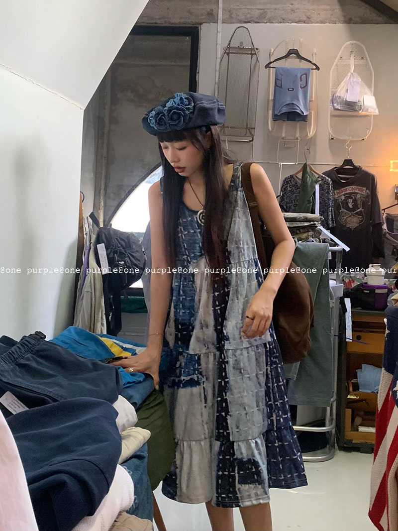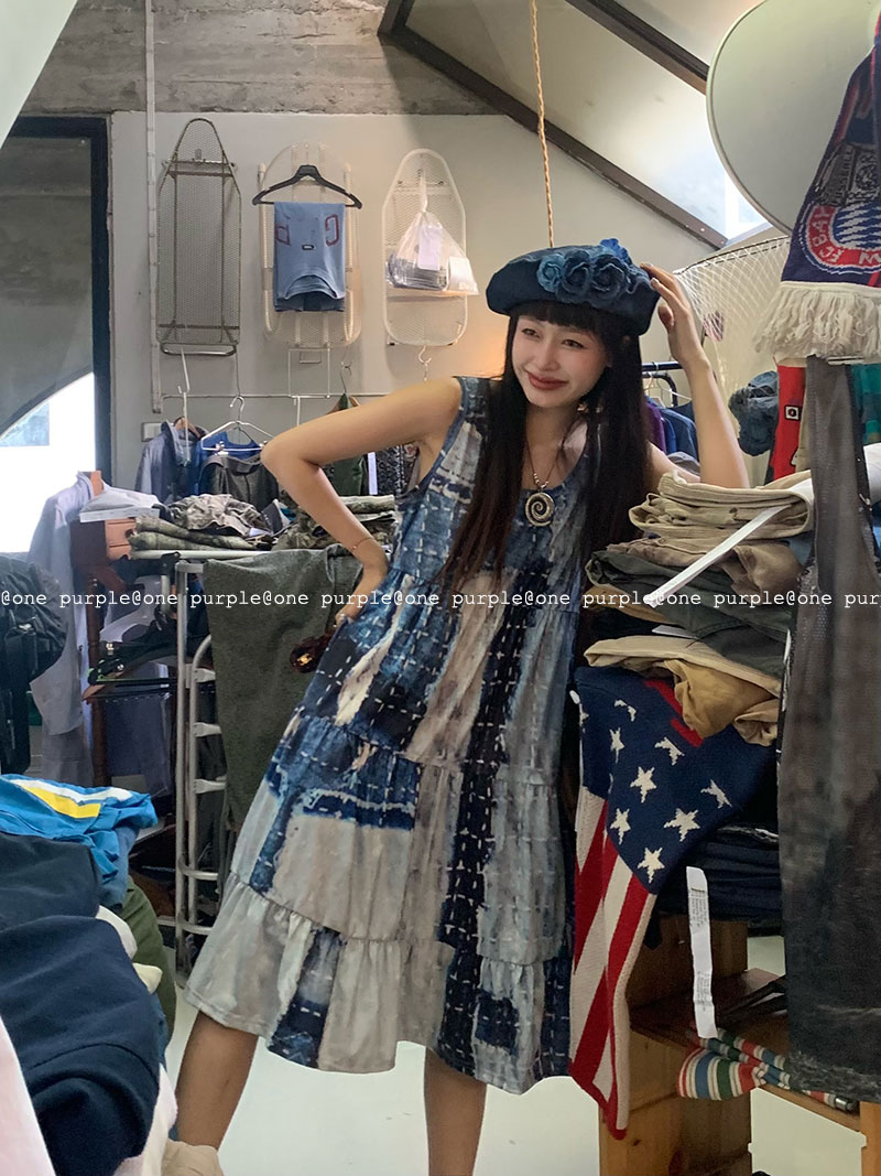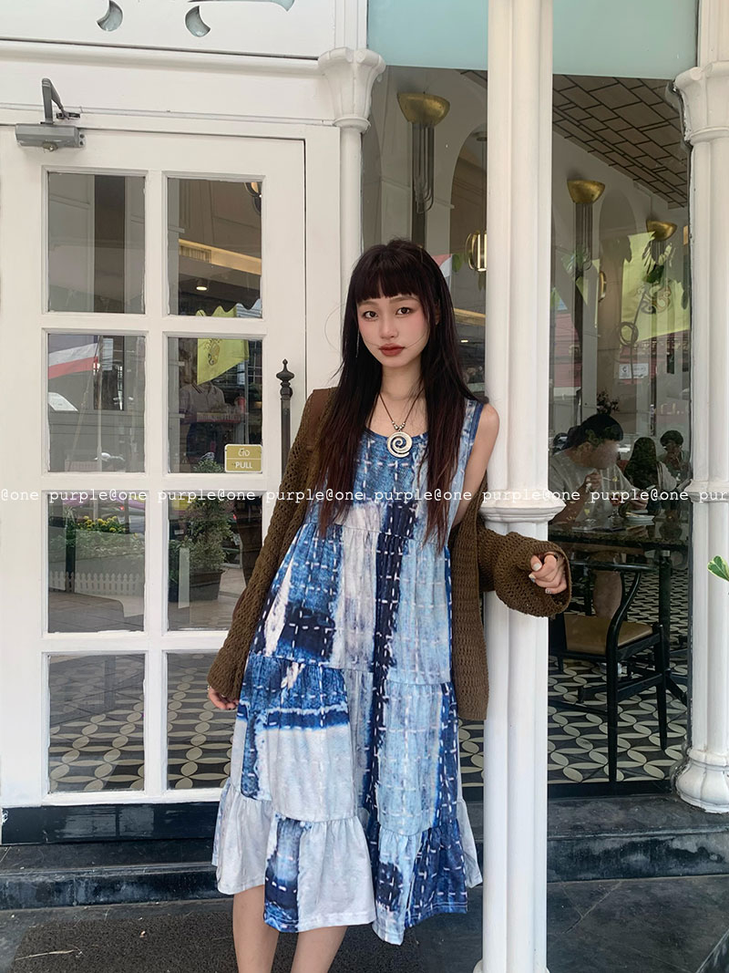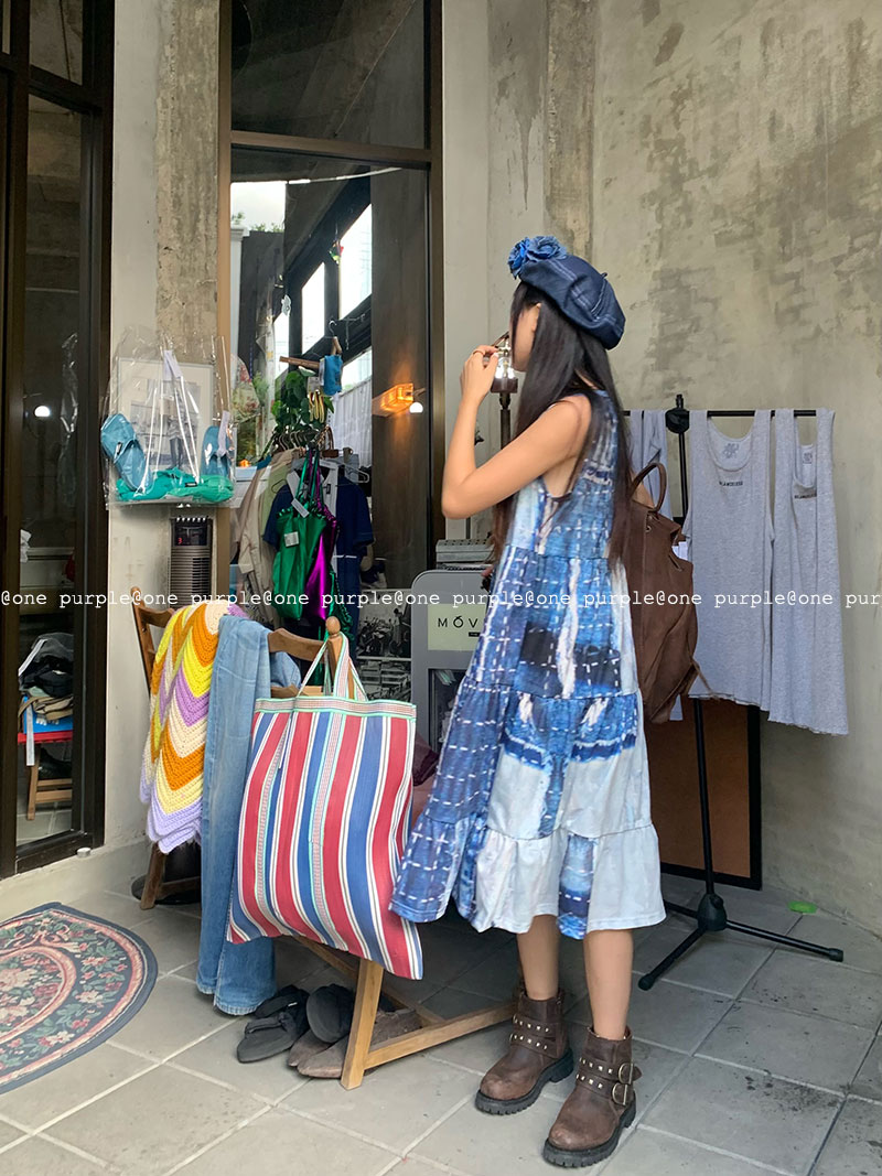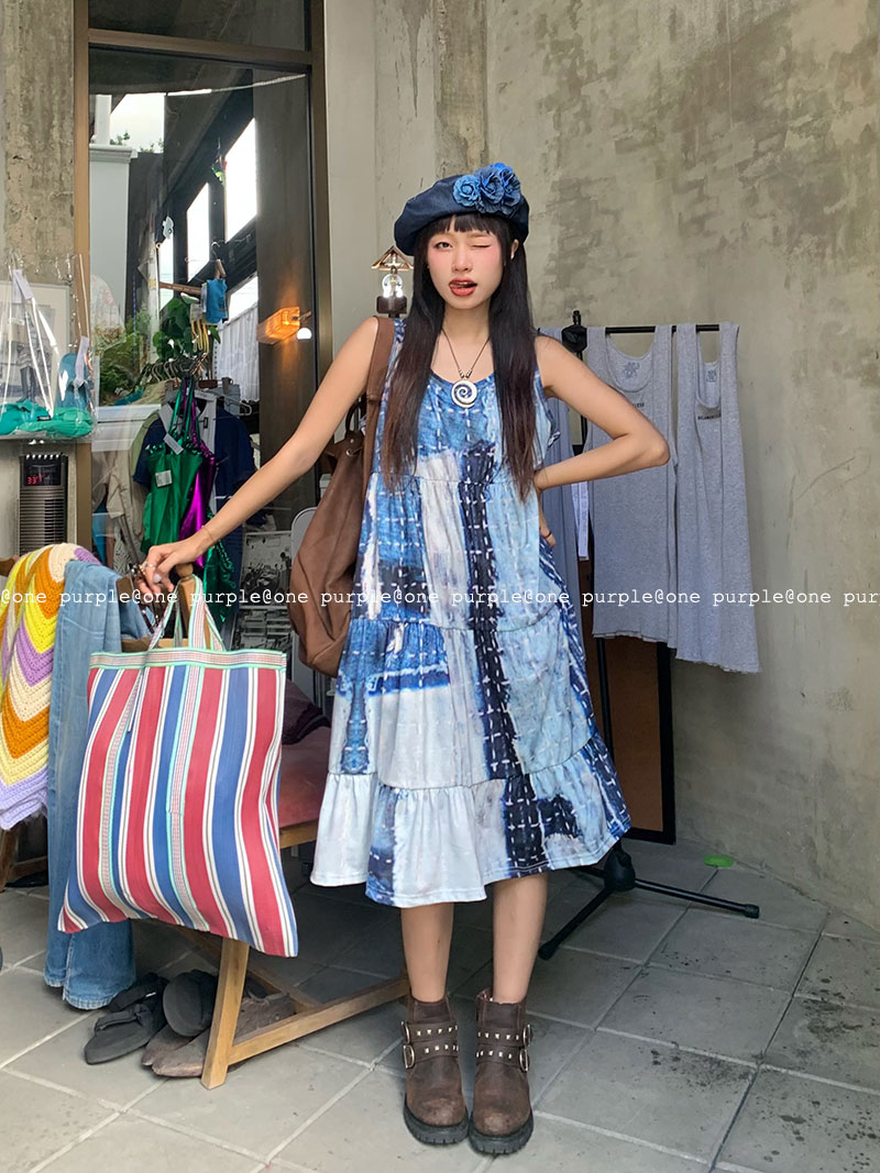 one purple| 小眾設計感印花撞色時髦洋裝韓系寬鬆顯瘦背心裙
