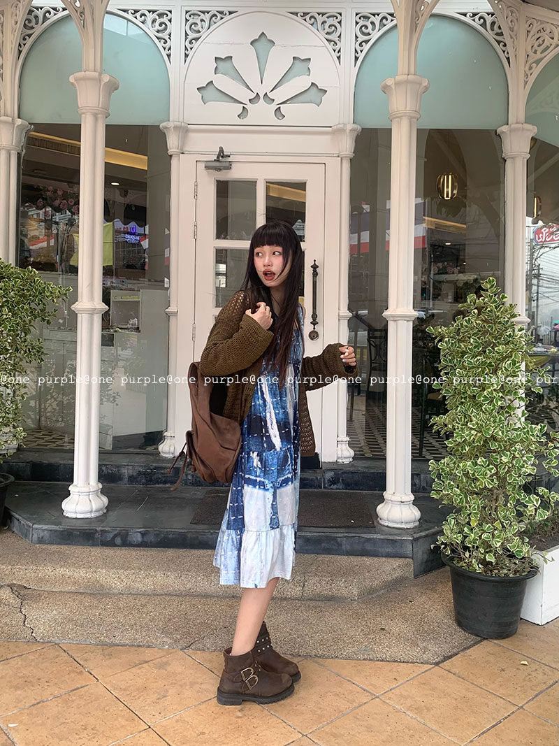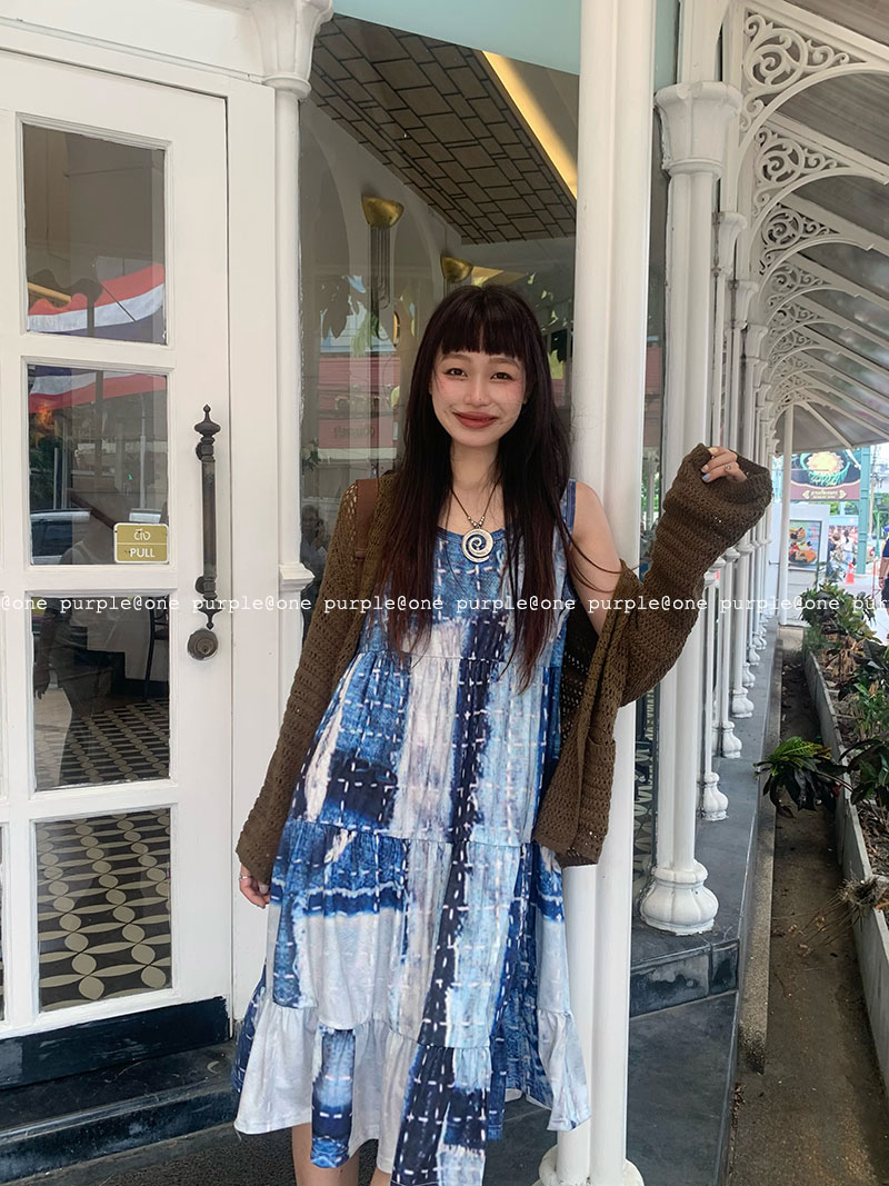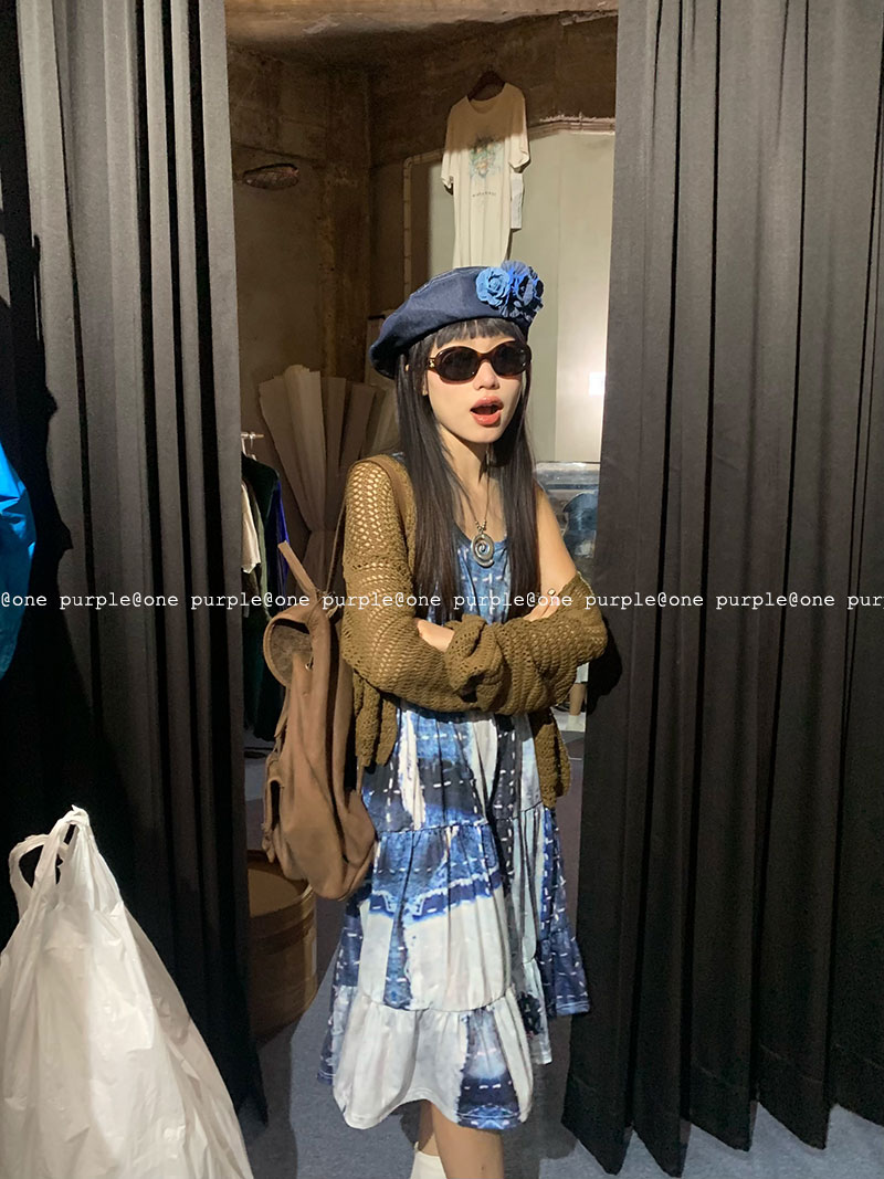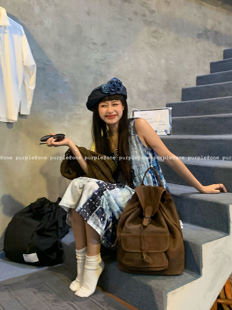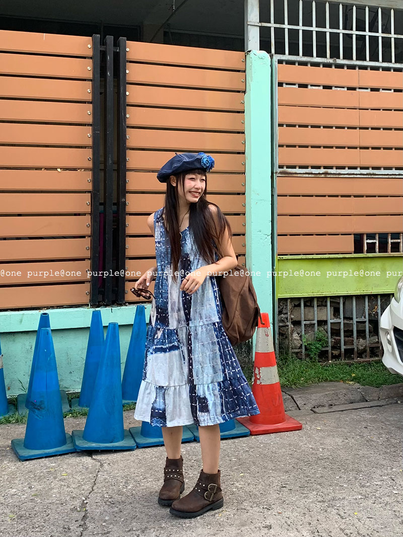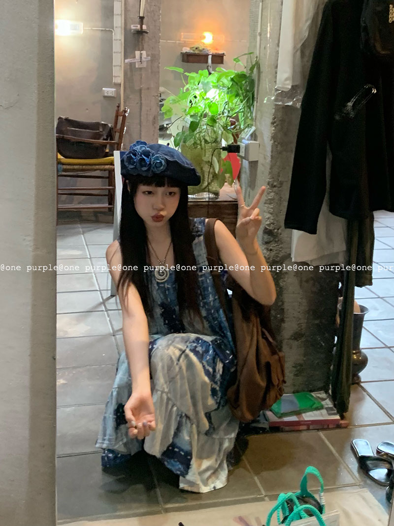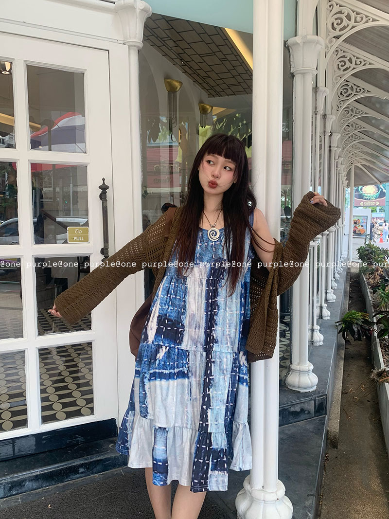 one purple| 小眾設計感印花撞色時髦洋裝韓系寬鬆顯瘦背心裙