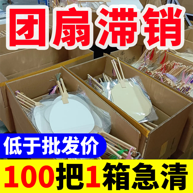 100把团扇空白扇子批发古风国风宣纸绘画扇书法半生熟diy自制纸扇
